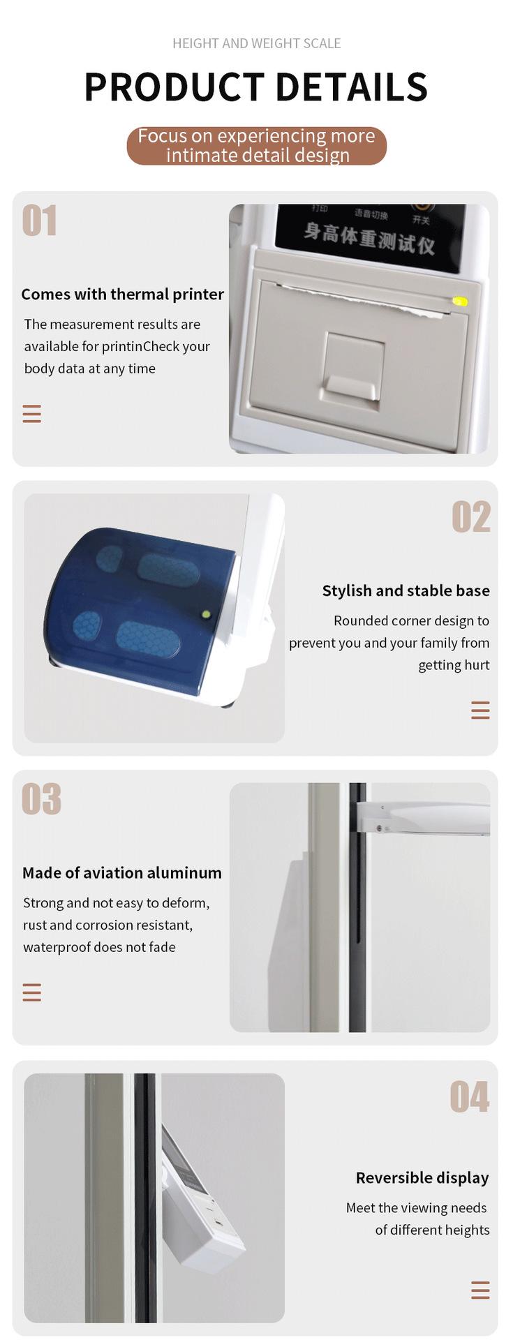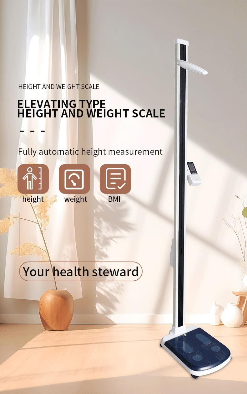 Báscula de pesaje de altura con medidor de elevación automático de suministro transfronterizo para examen físico escolar con función de impresión y medidor de altura