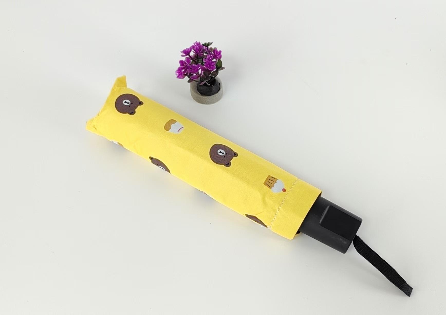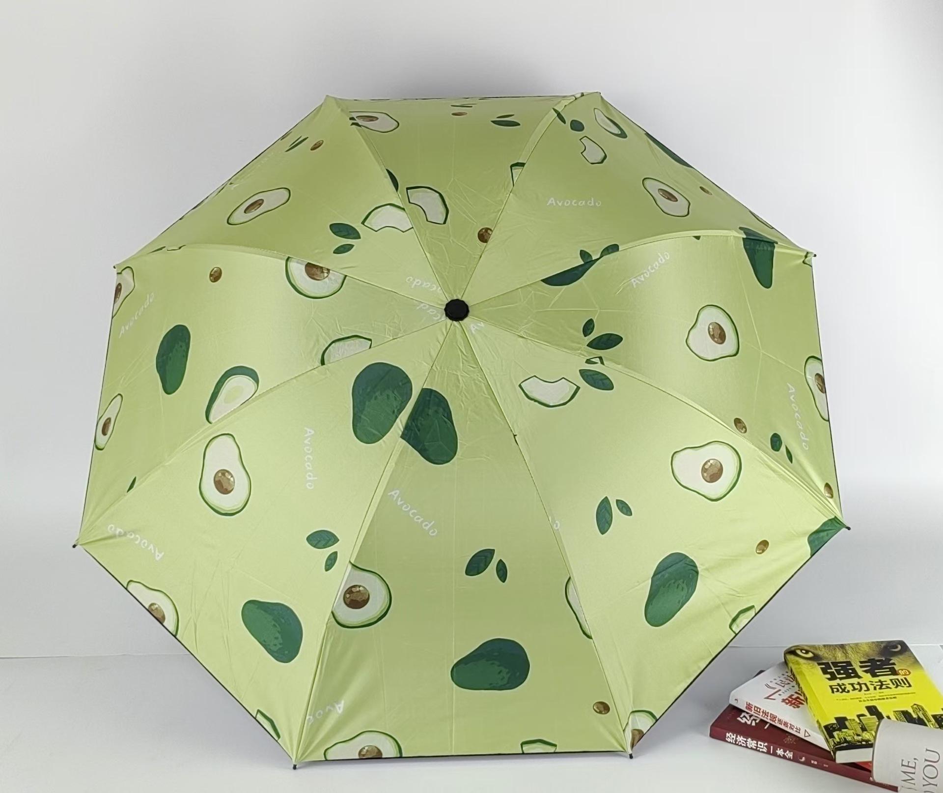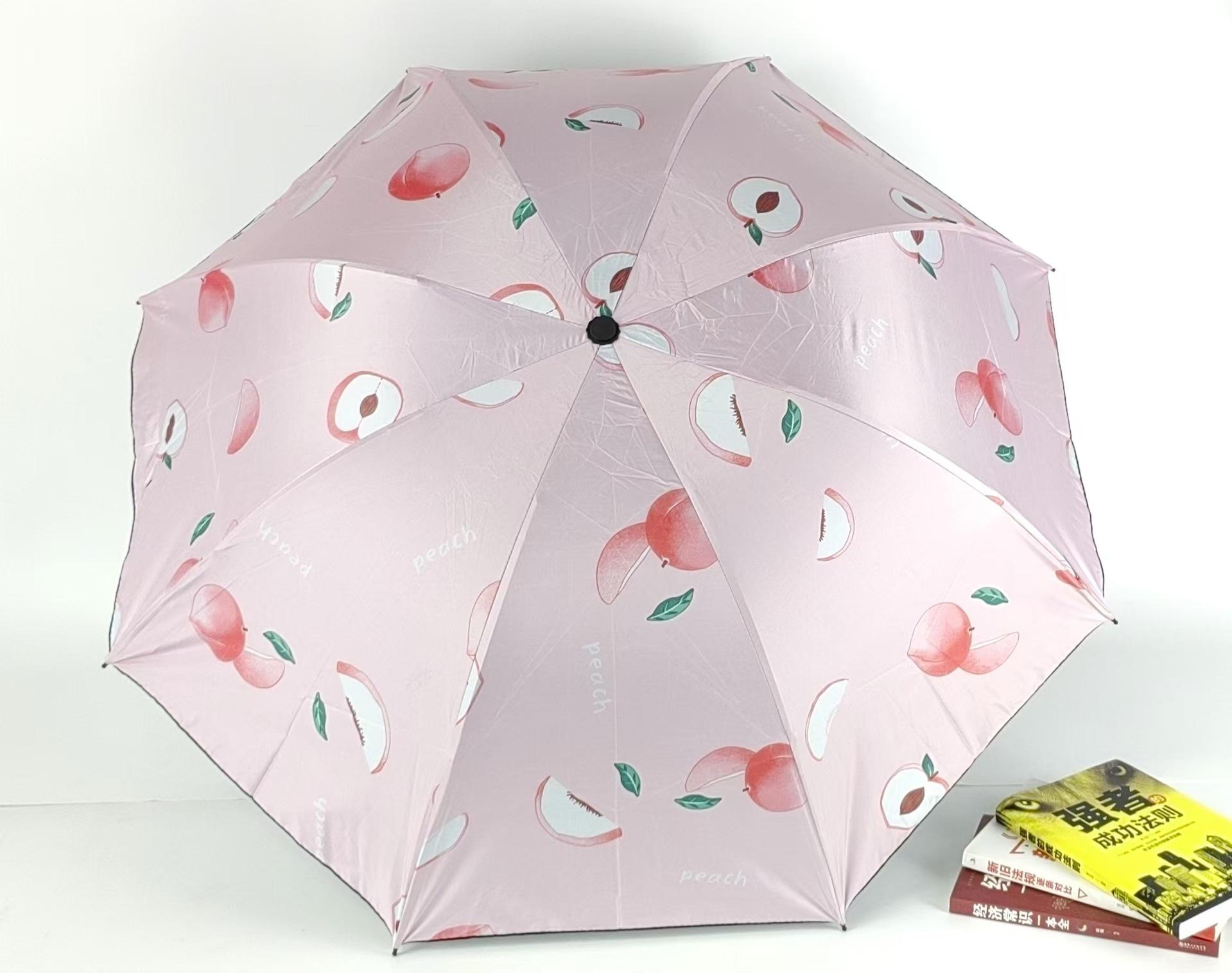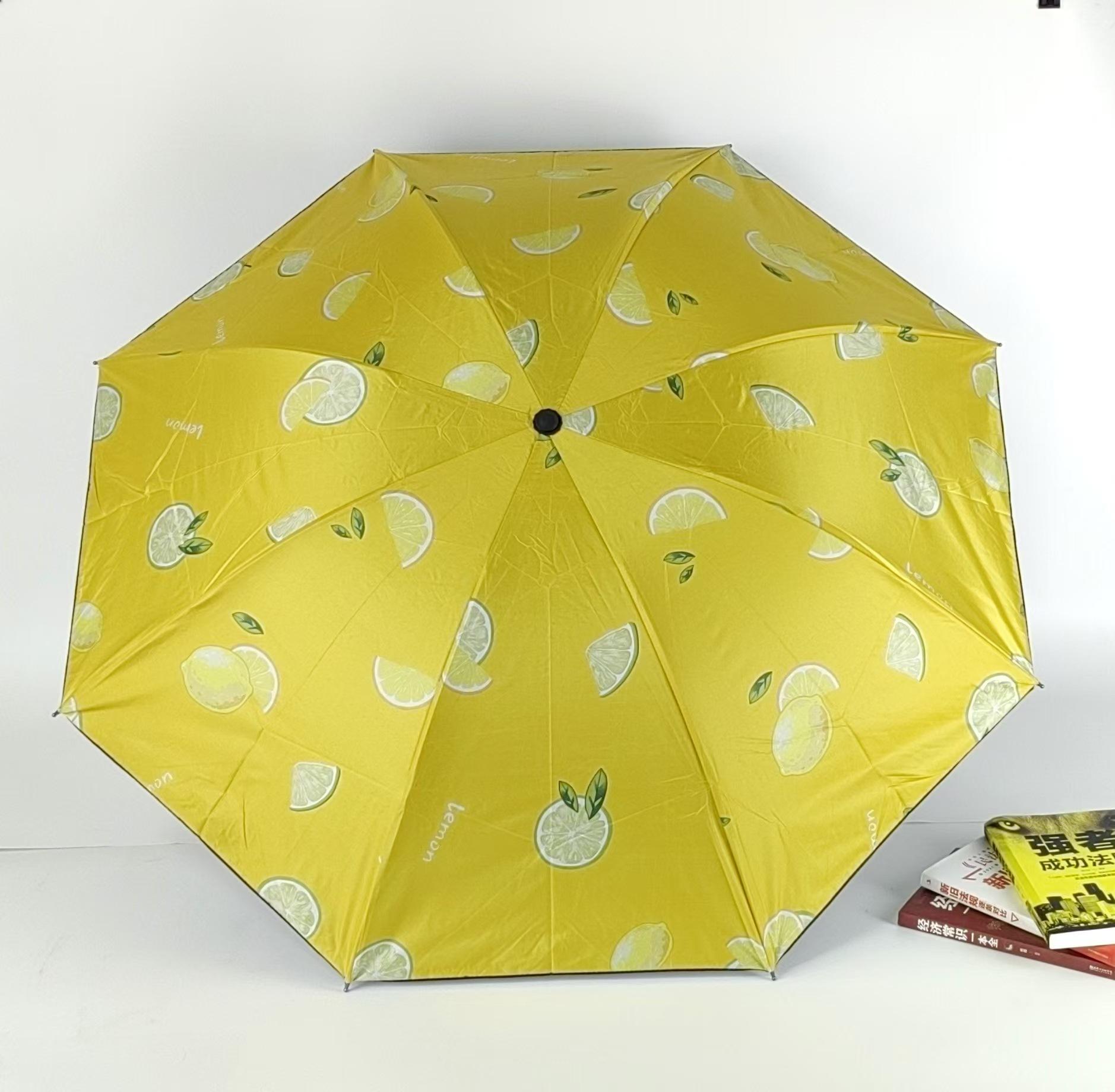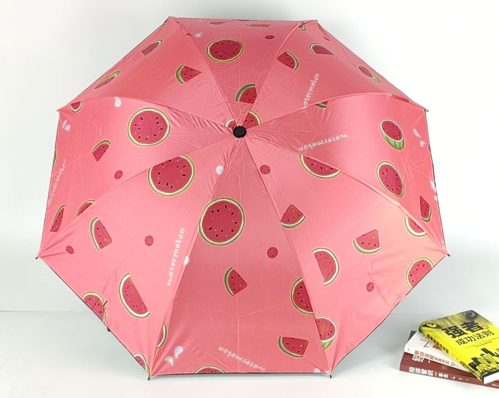 Sombrilla pequeña de fruta fresca, de goma negra, para niños, plegable, de tres pliegues, para publicidad al por mayor.