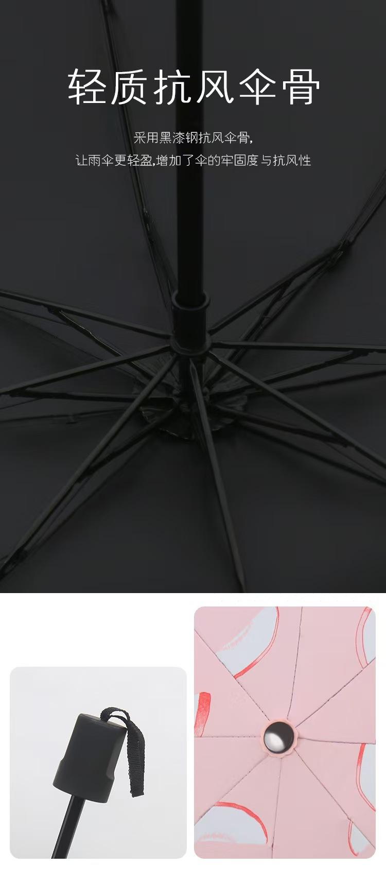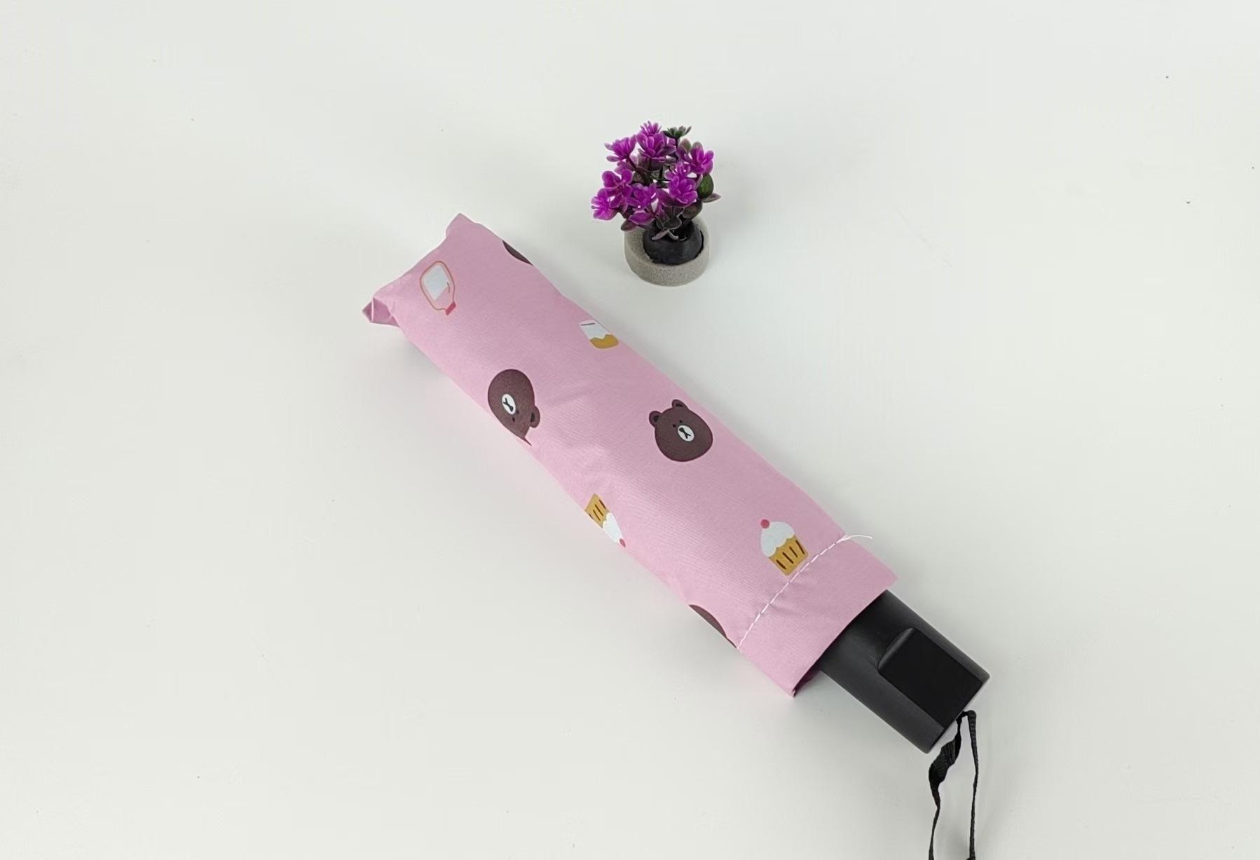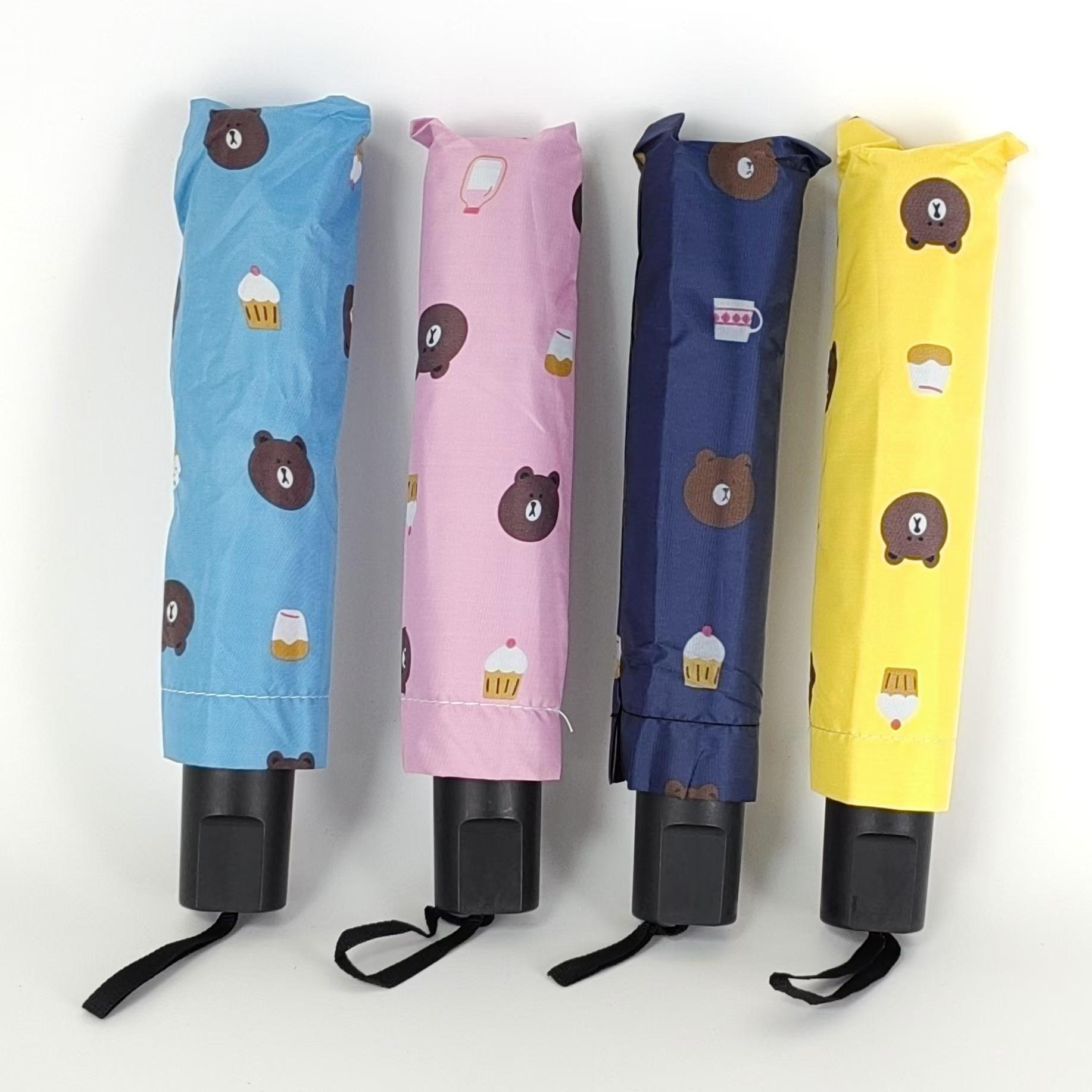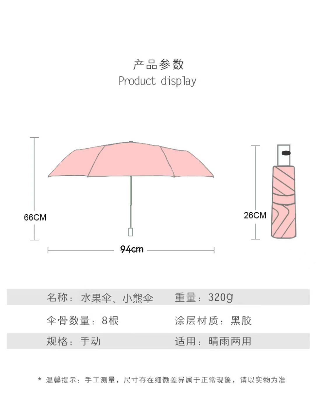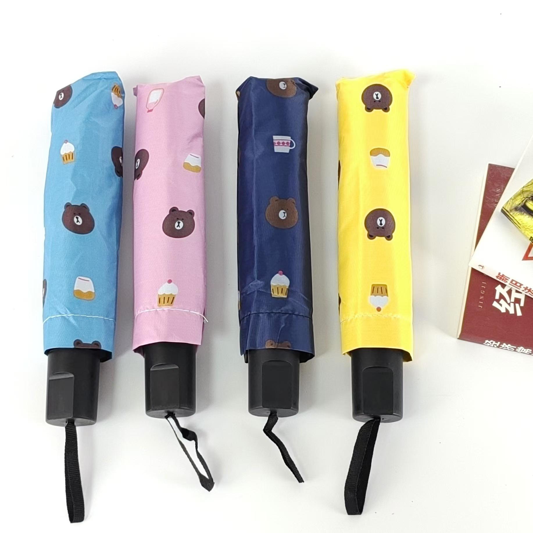 Sombrilla pequeña de fruta fresca, de goma negra, para niños, plegable, de tres pliegues, para publicidad al por mayor.