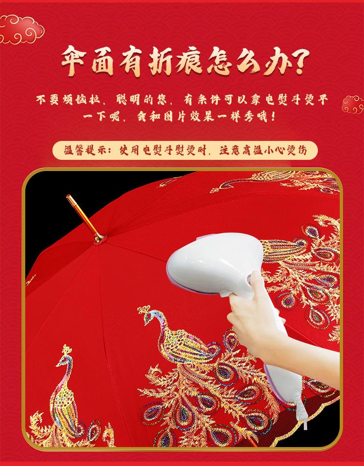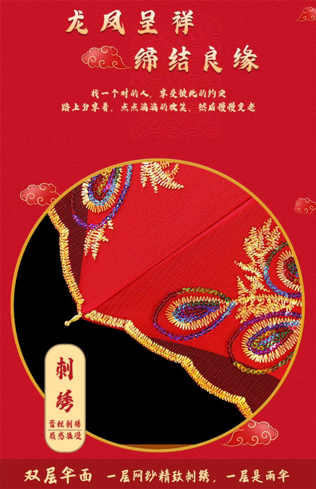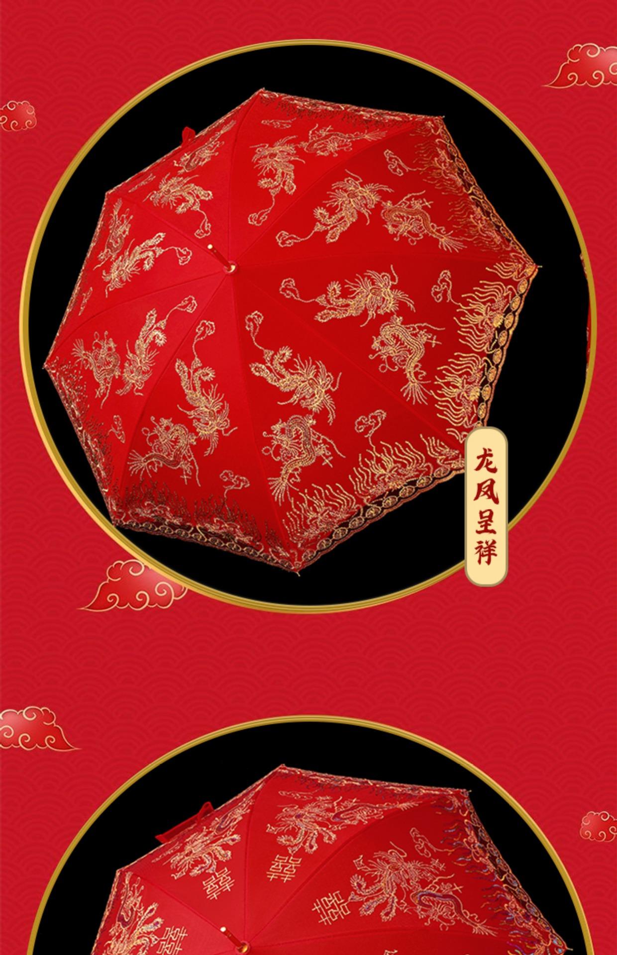 Yingfeng heming [light luxury gold hook] bridal umbrella - double layer embroidery, Dragon and phoenix double ...
