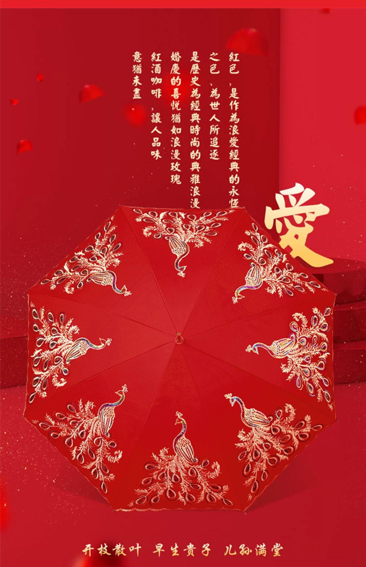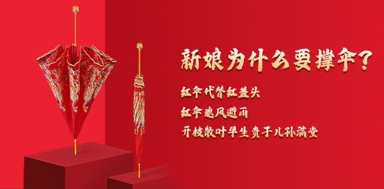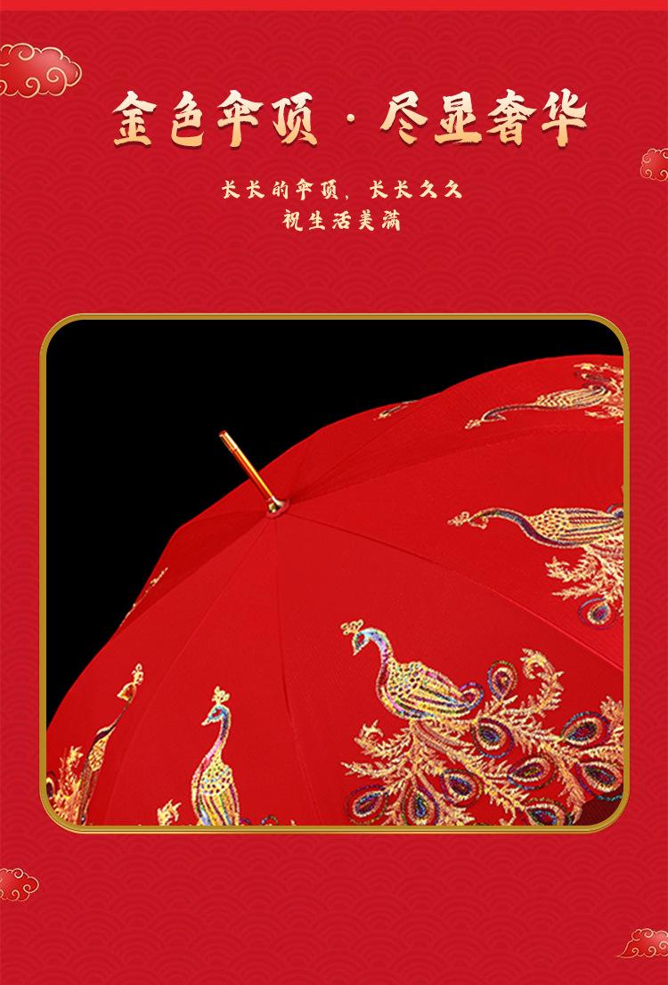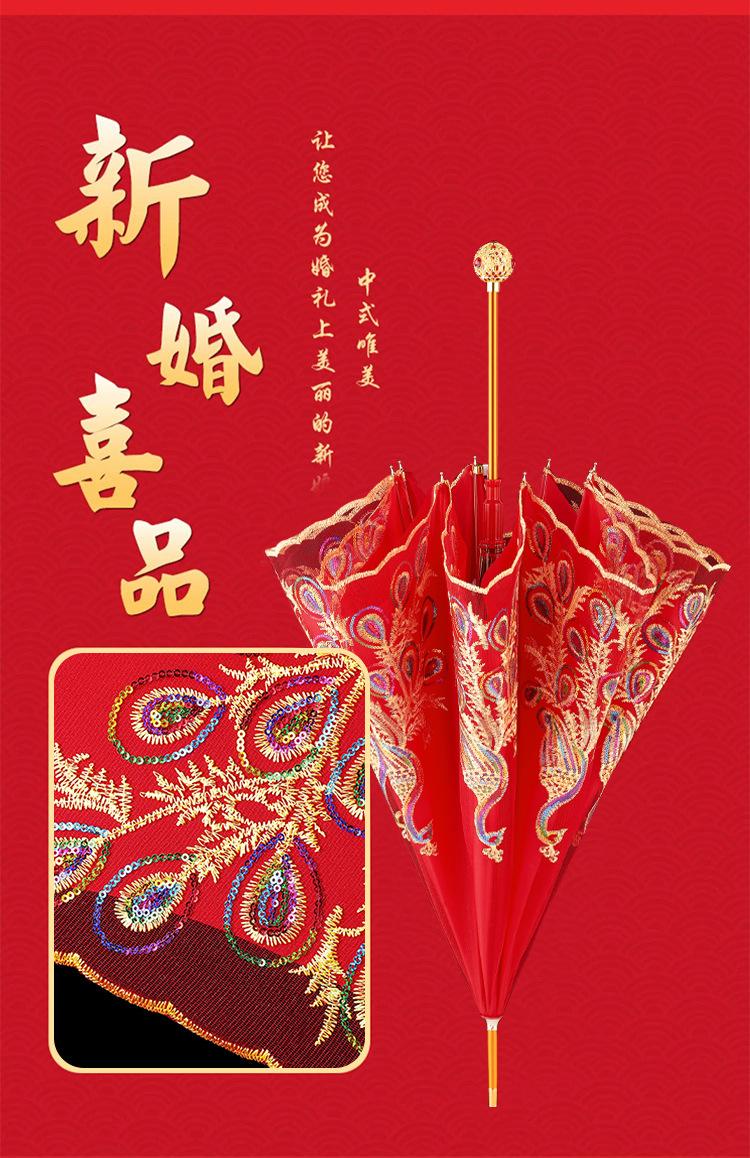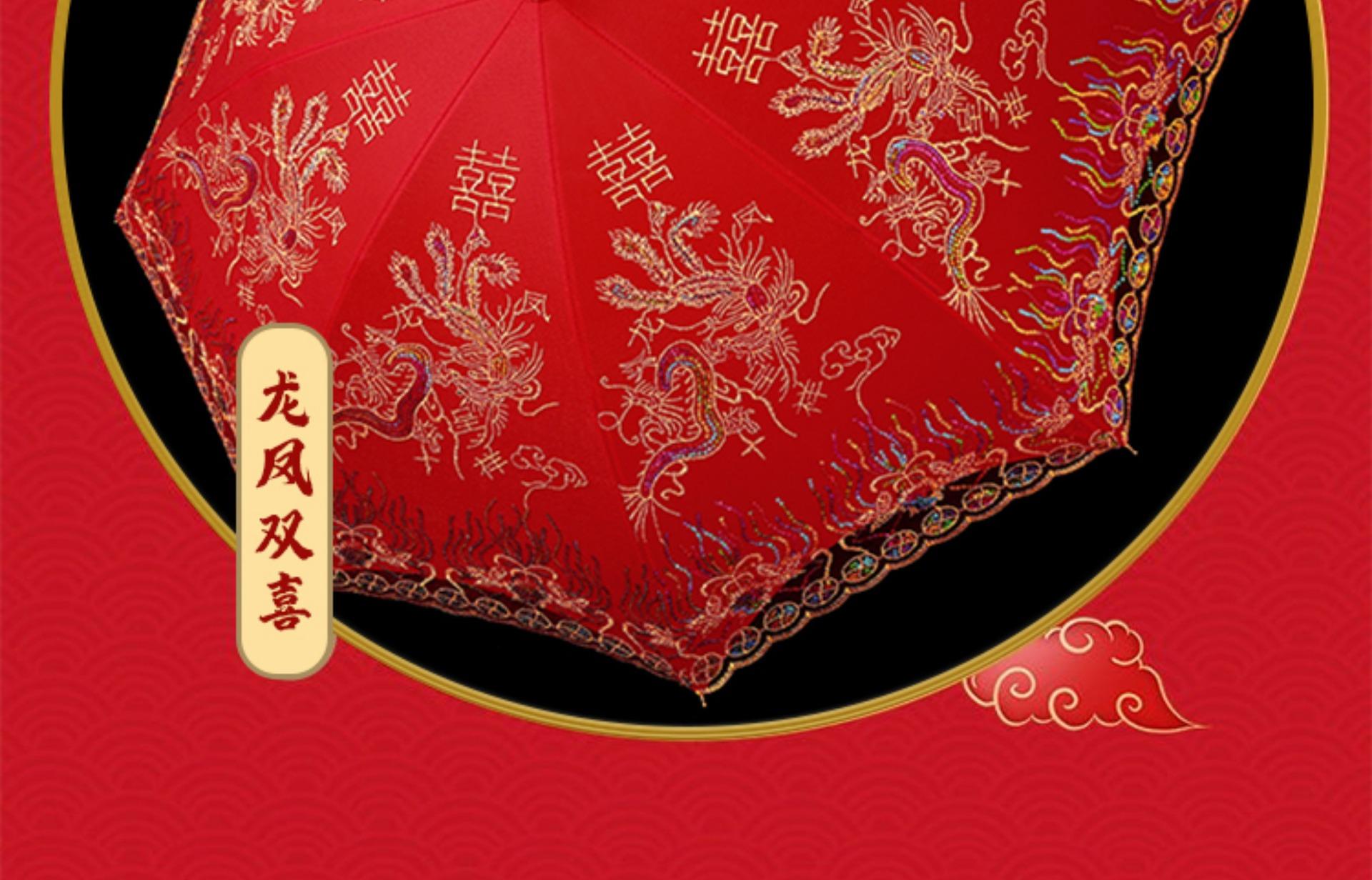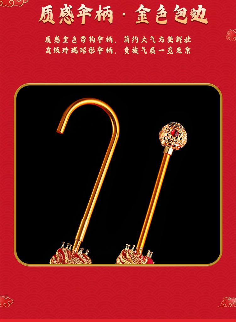Dragon and phoenix double happiness [light luxury gold hook] bridal umbrella - double layer embroidery