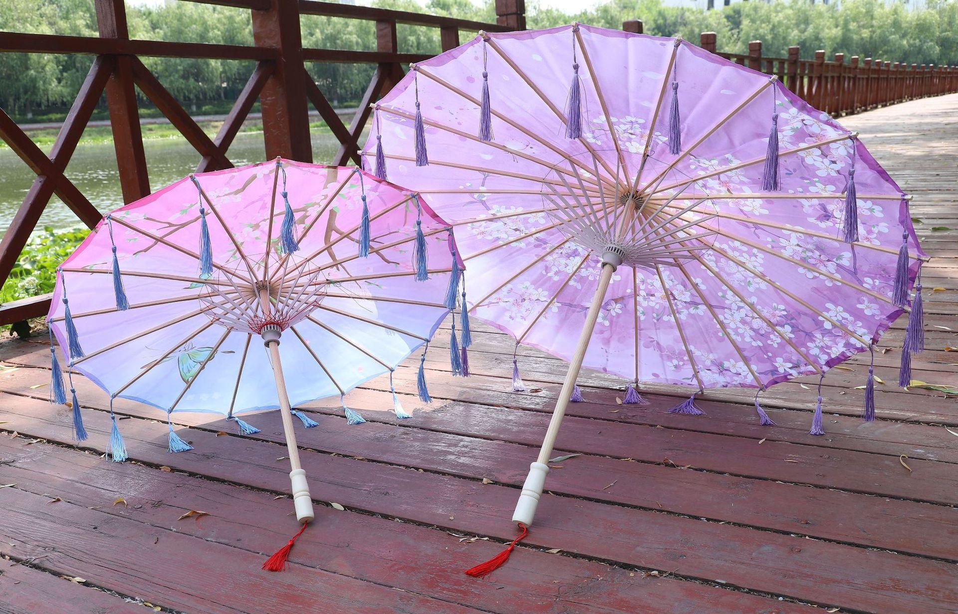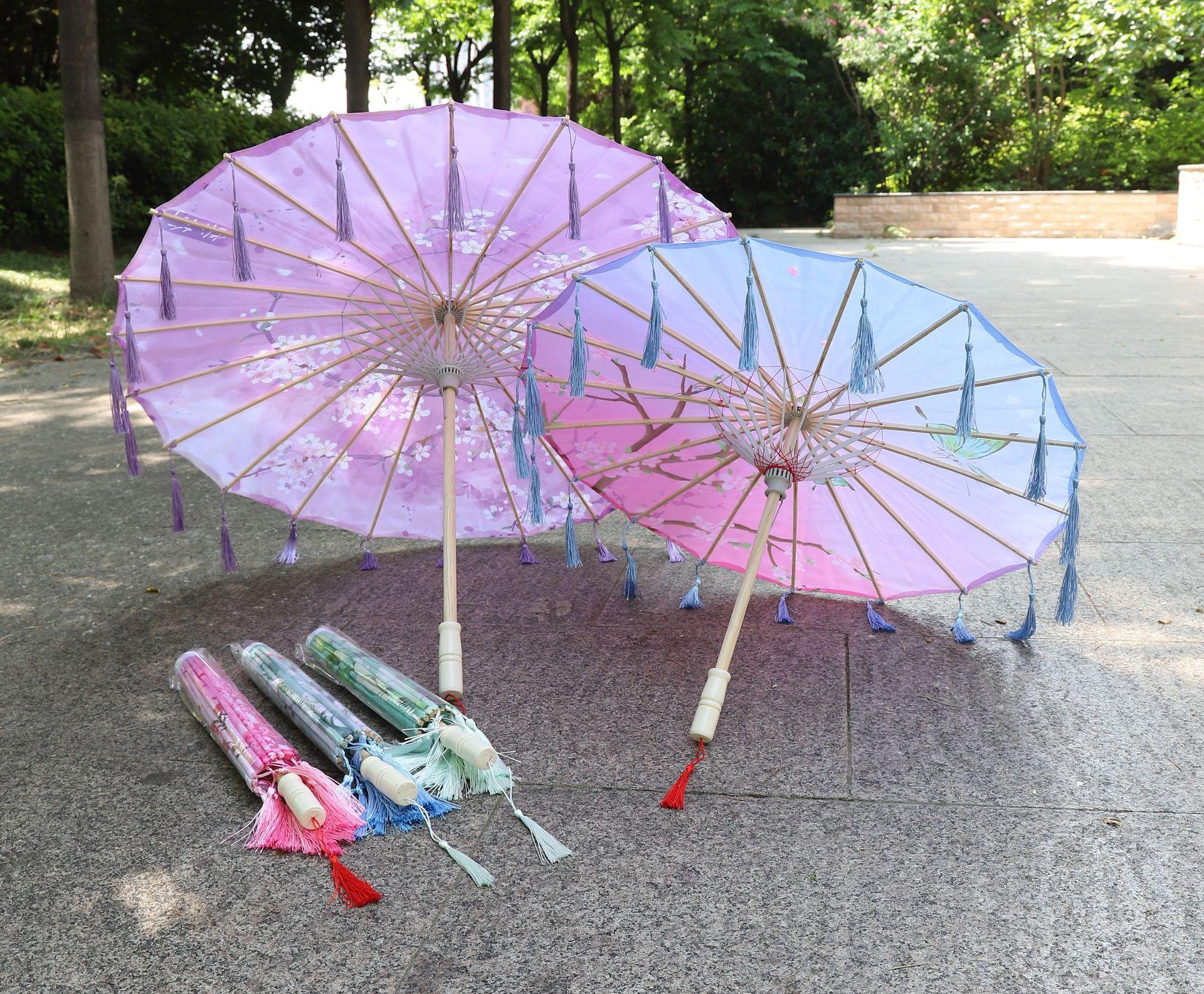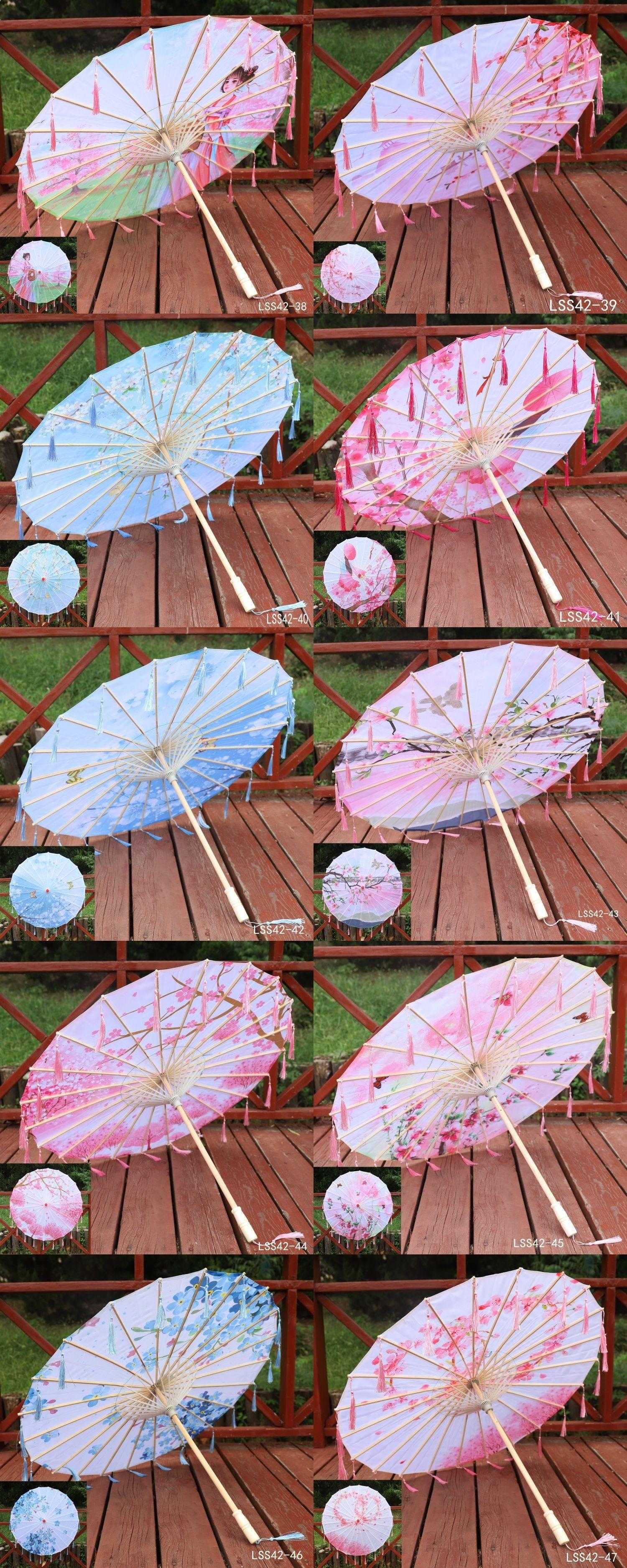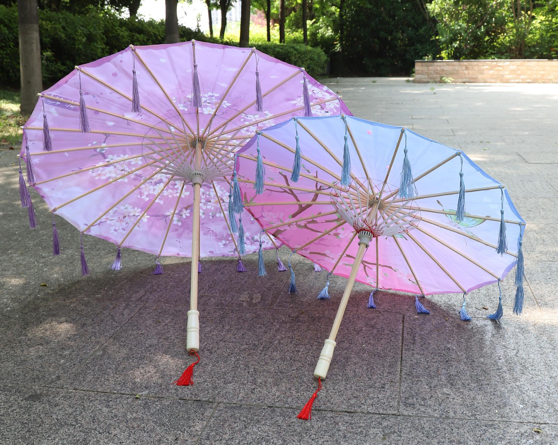 Material del producto: mango (madera maciza) + cubierta de paraguas (tela de seda) + varillas de paraguas (bambú)