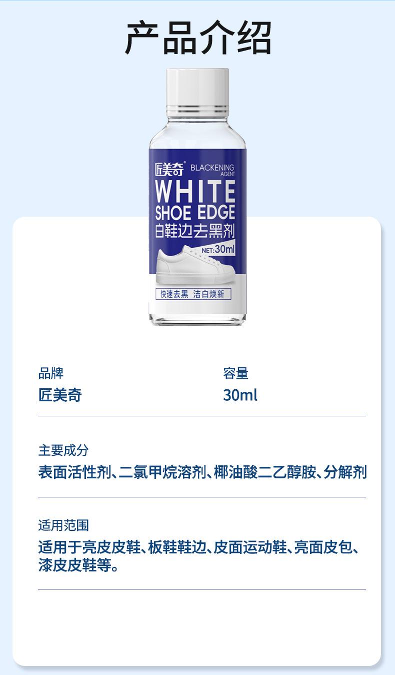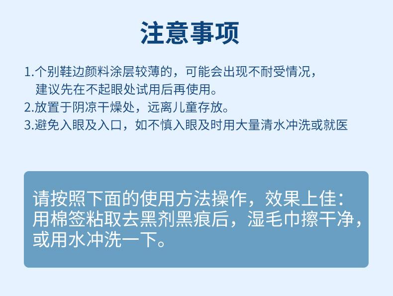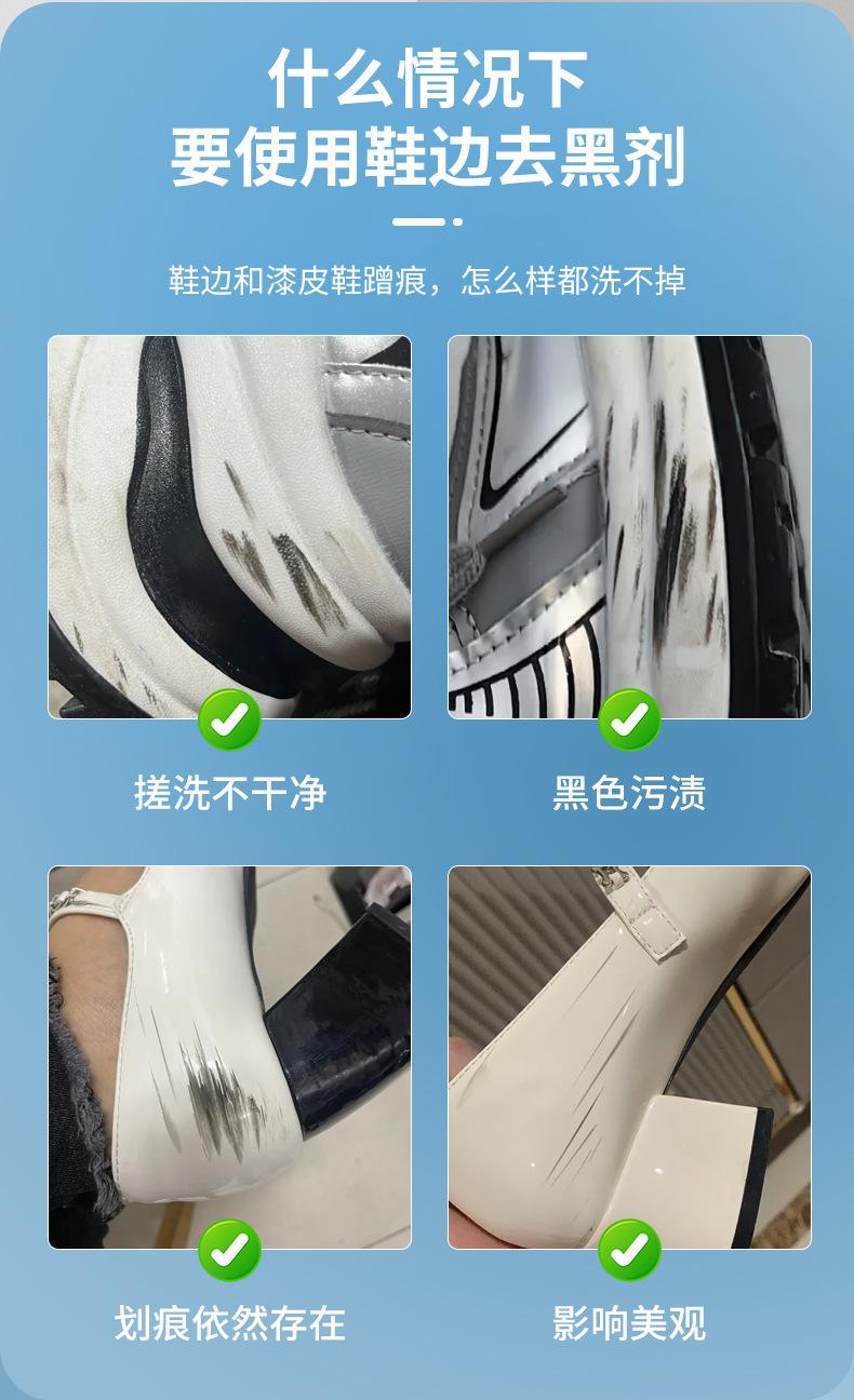 Agente ennegrecedor para bordes de zapatos, agente limpiador de zapatos, descontaminación de zapatos blancos, artefacto reparador de rayones con estampado negro.
