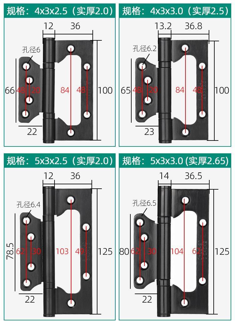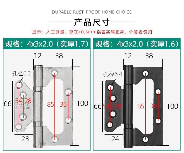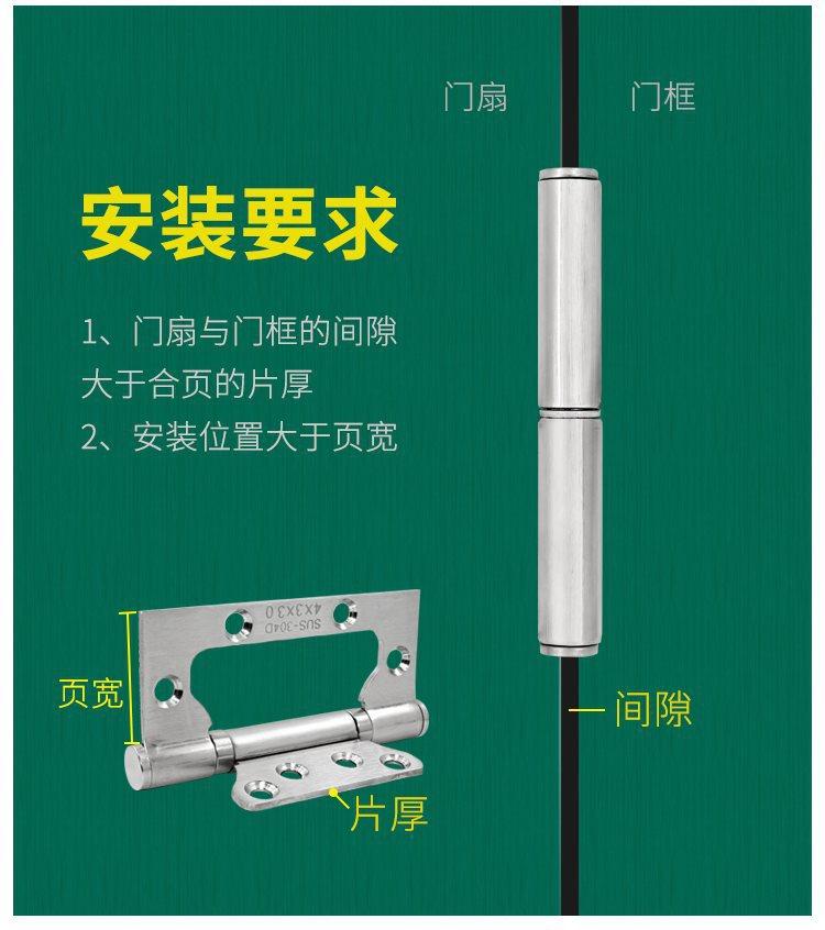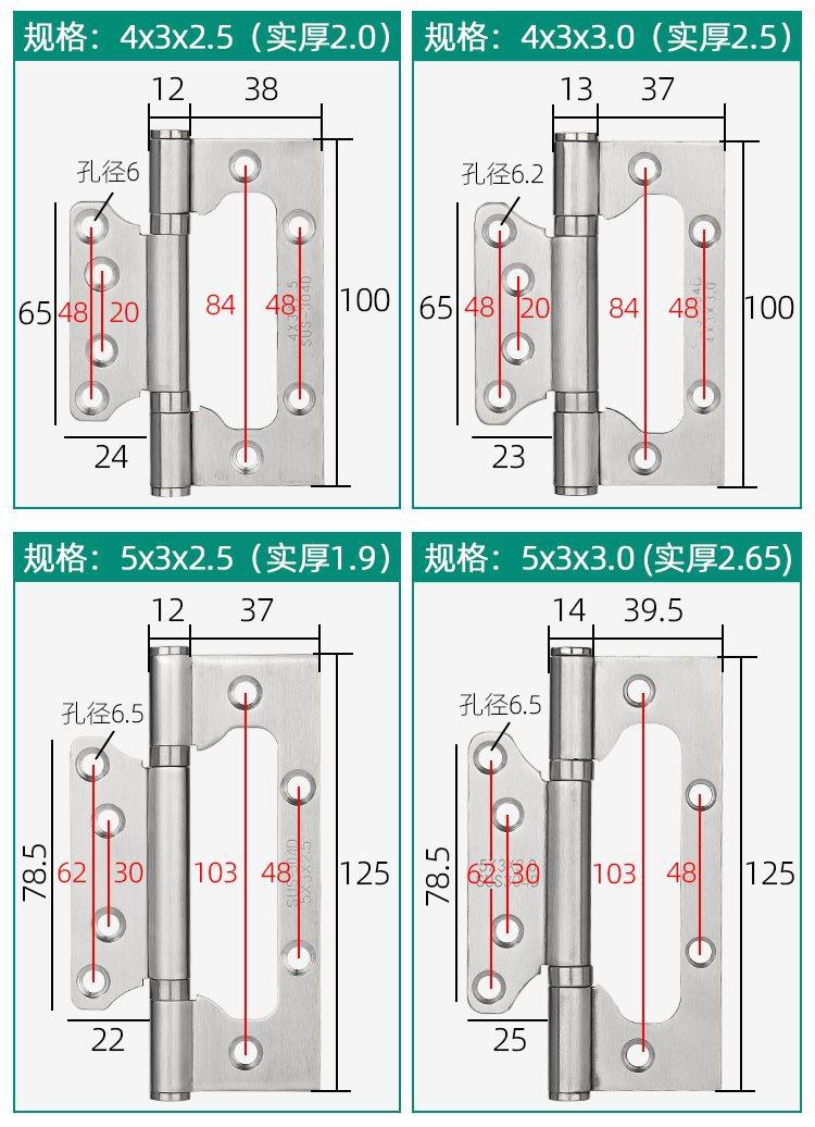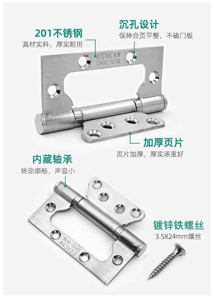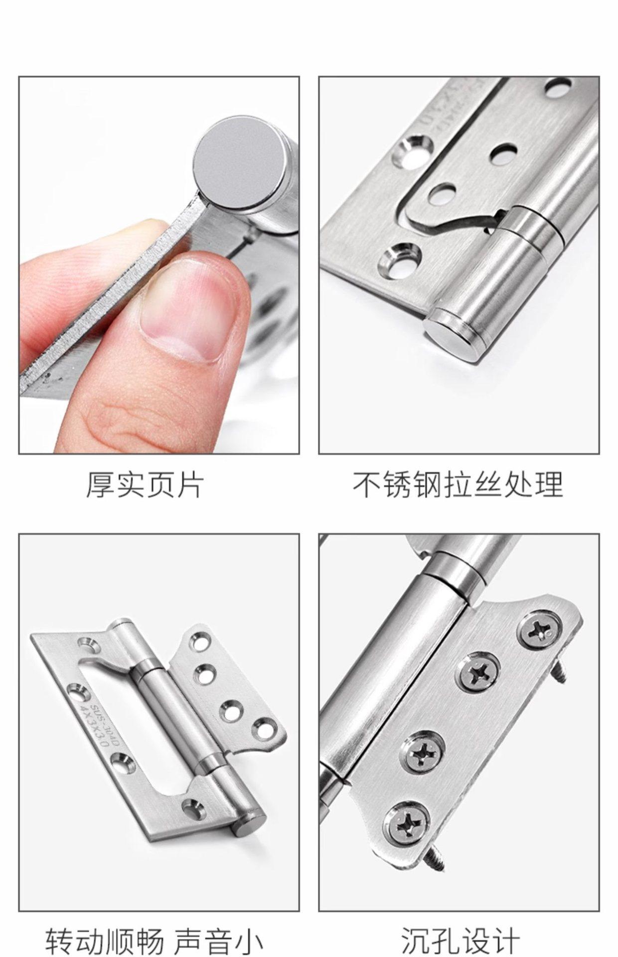 Paquete de 2 bisagras subhembra de acero inoxidable engrosadas de 4 pulgadas, bisagras de puerta sin ranura, bisagras para puertas y ventanas, bisagras para puertas de madera