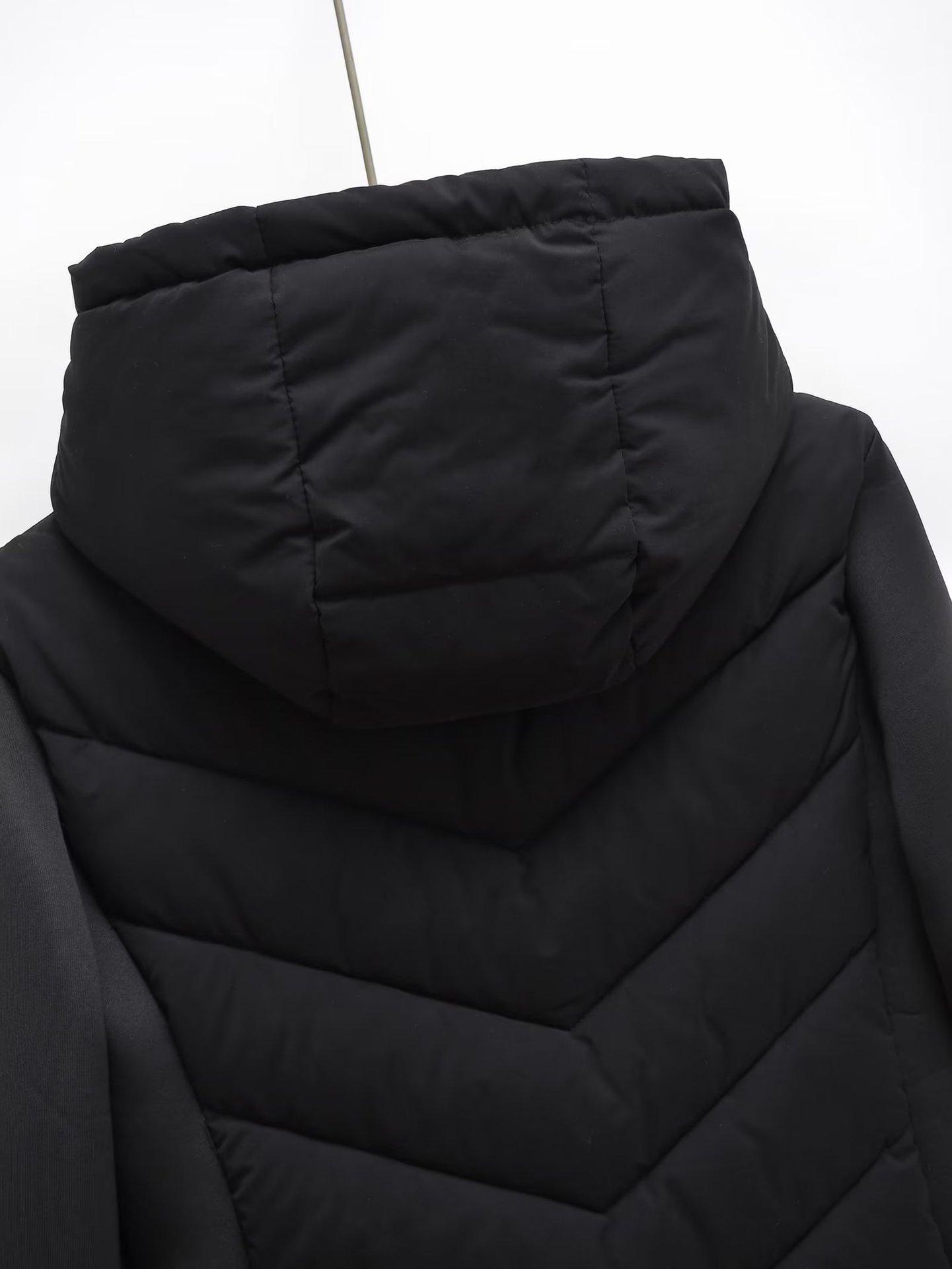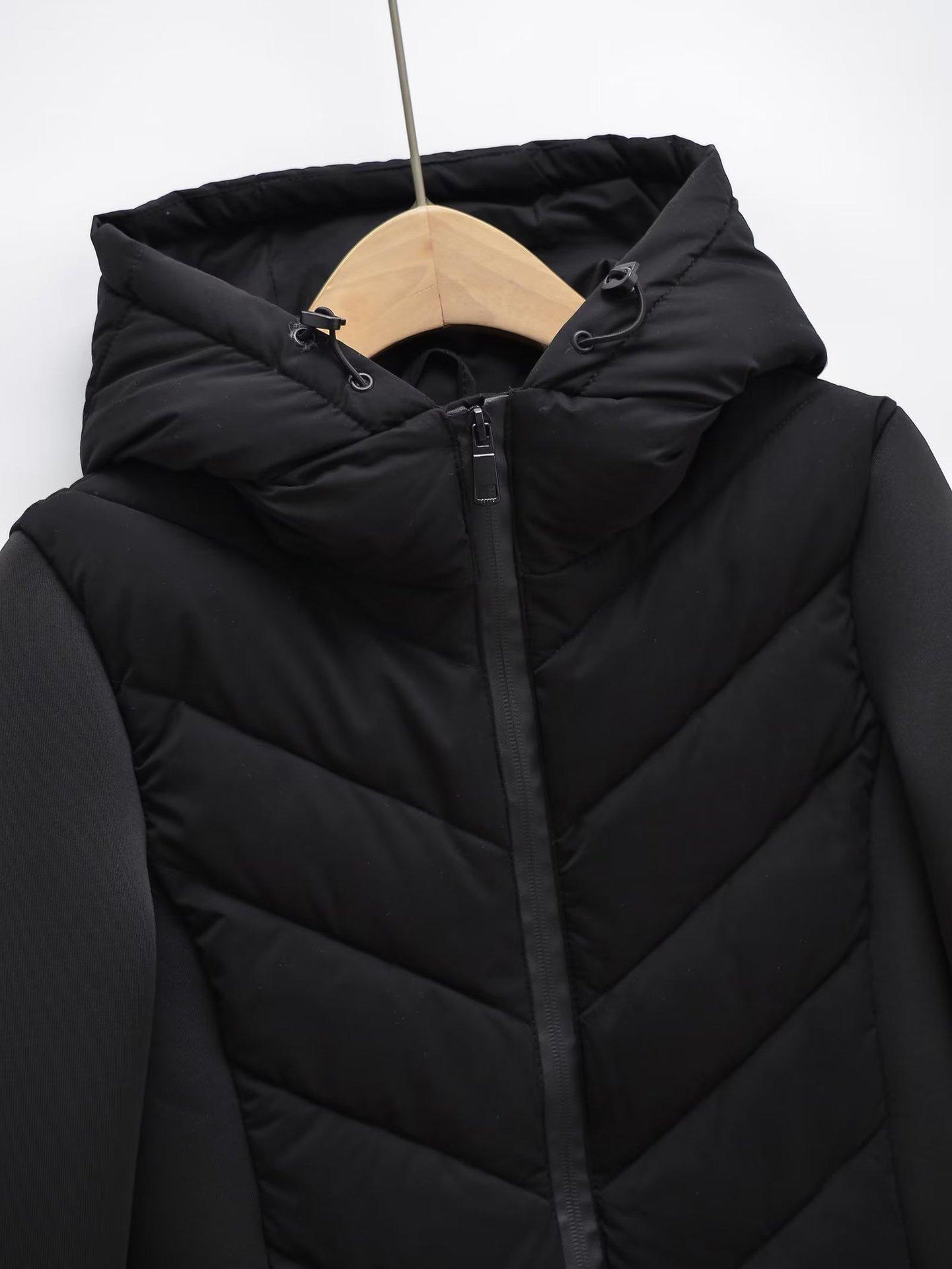 Otoño 2023 nueva ropa de mujer transfronteriza europea y americana moda callejera chaqueta de algodón con capucha y mangas de patchwork w027