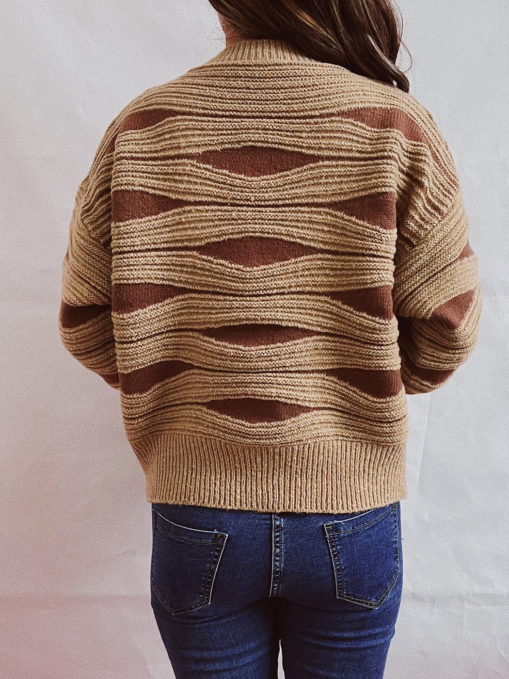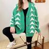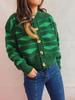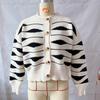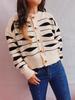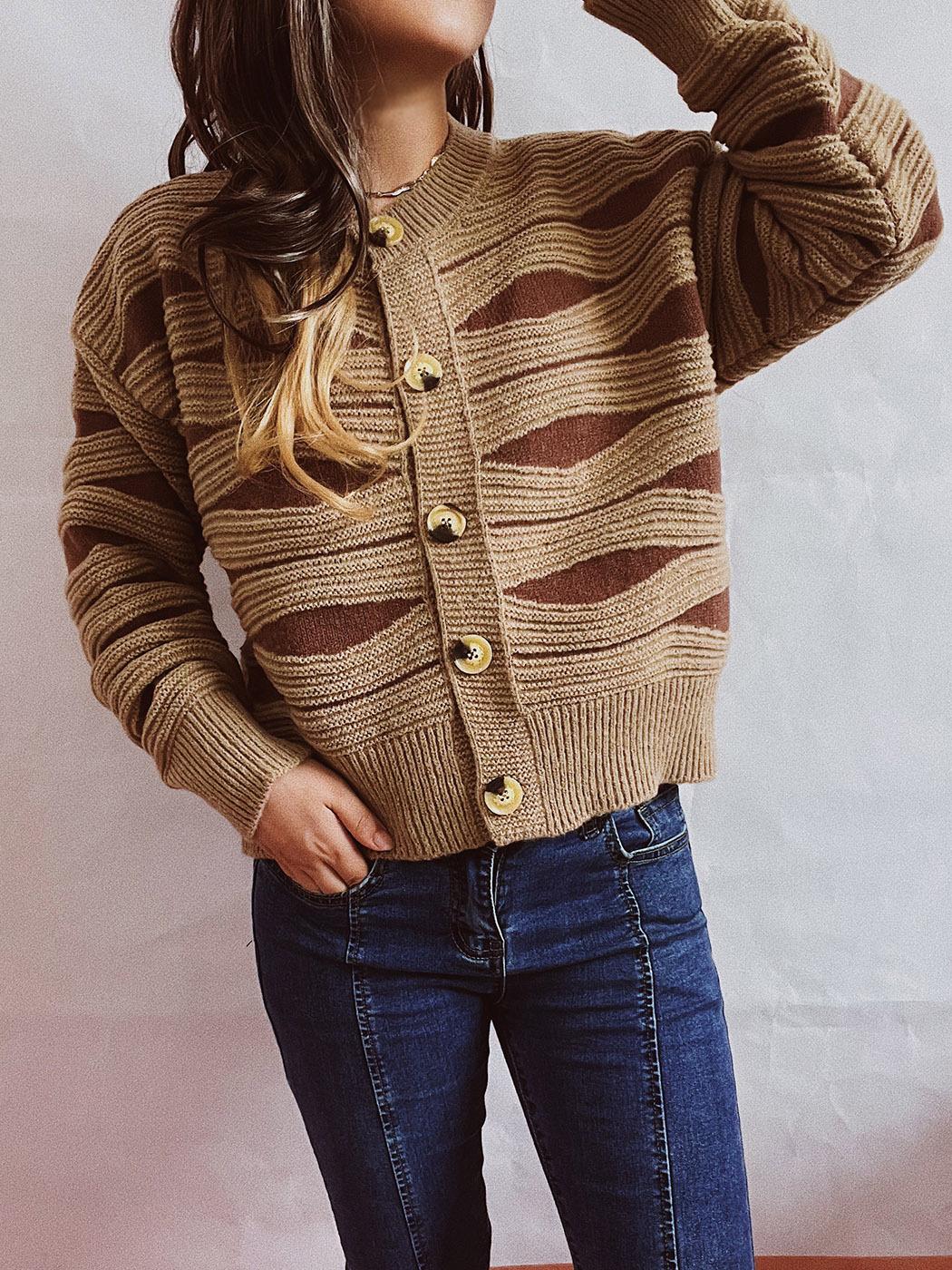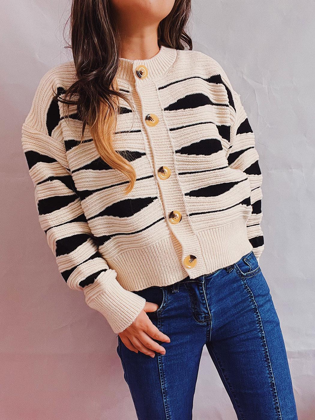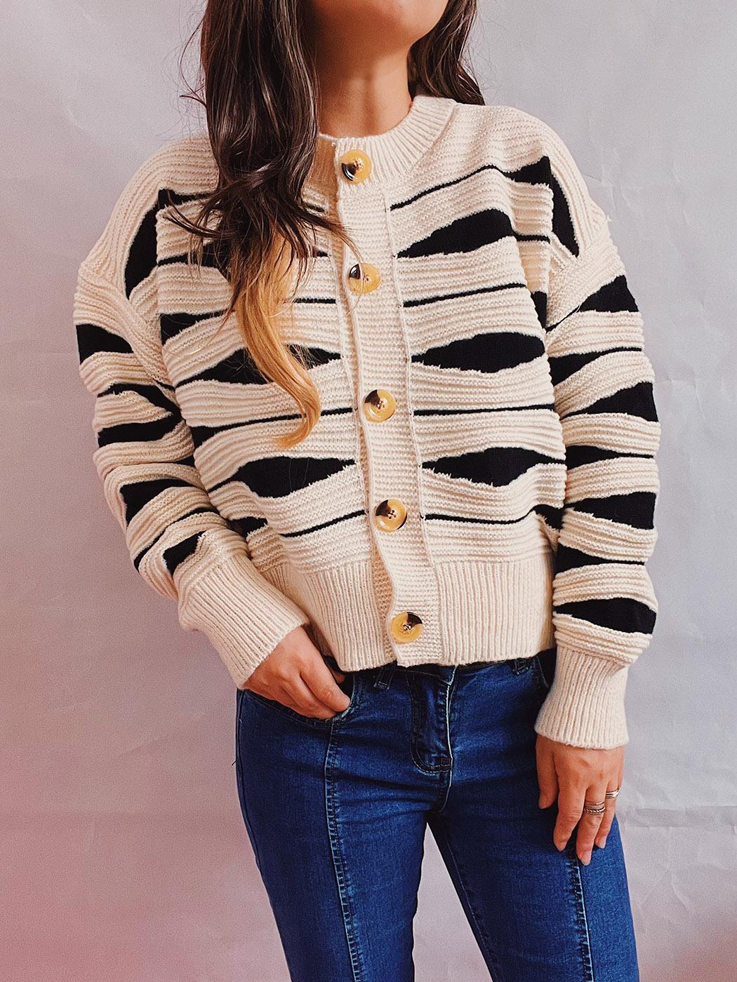 Suéter tipo cárdigan corto con cuello redondo y botonadura sencilla con rayas irregulares en contraste de color para otoño e invierno transfronterizo europeo y americano para mujer