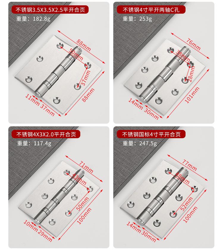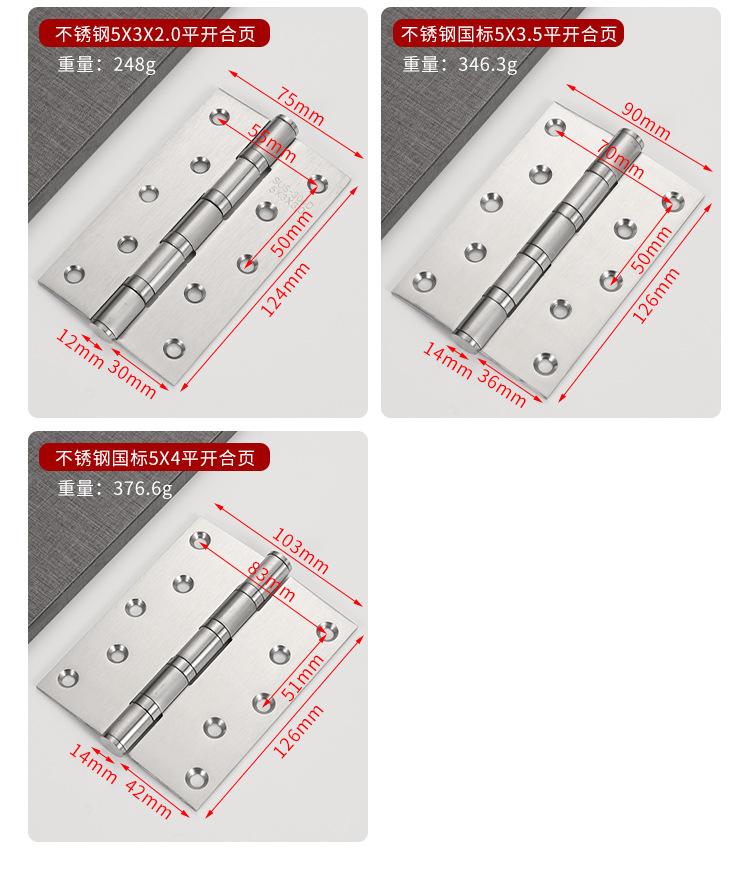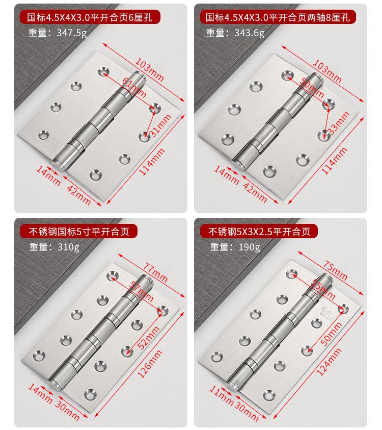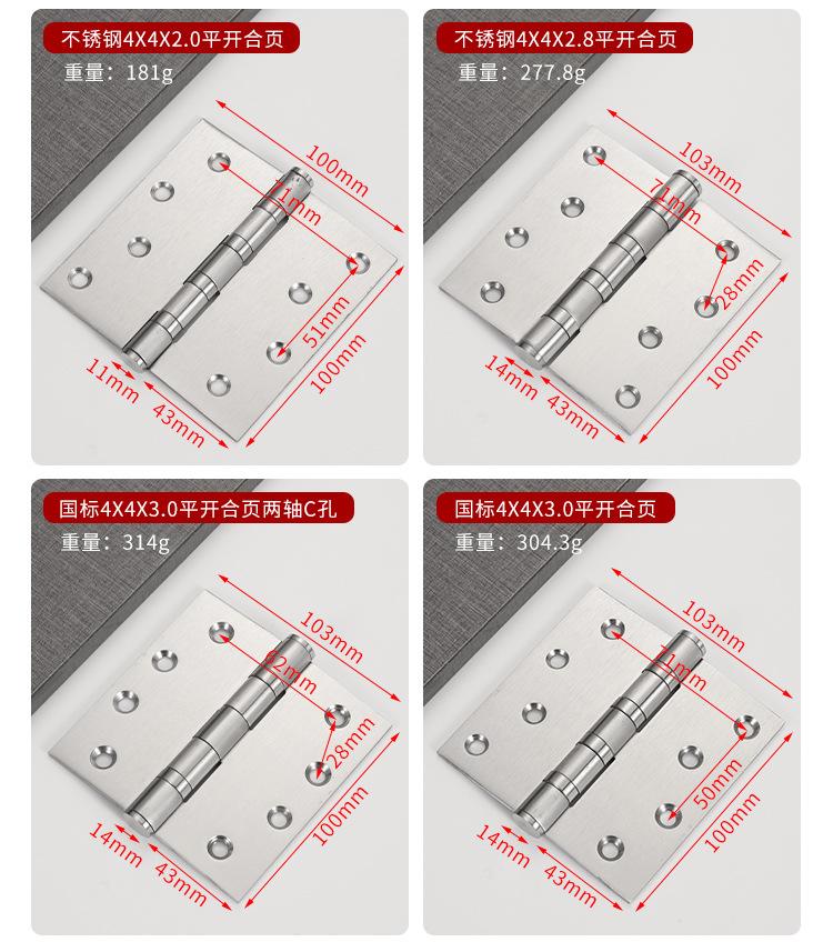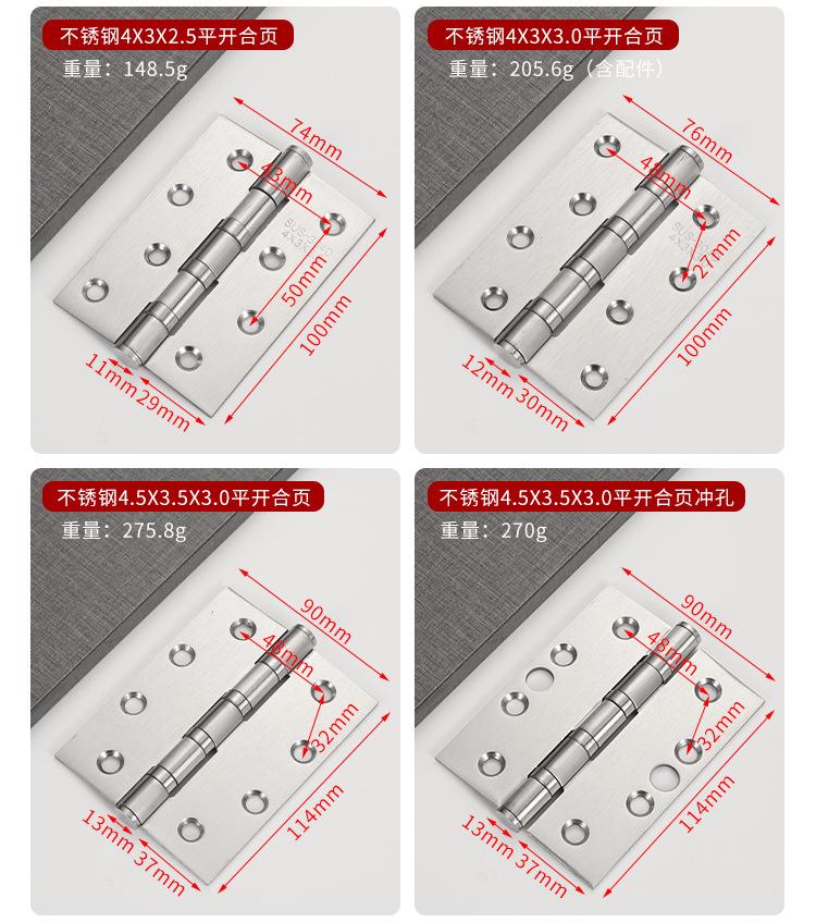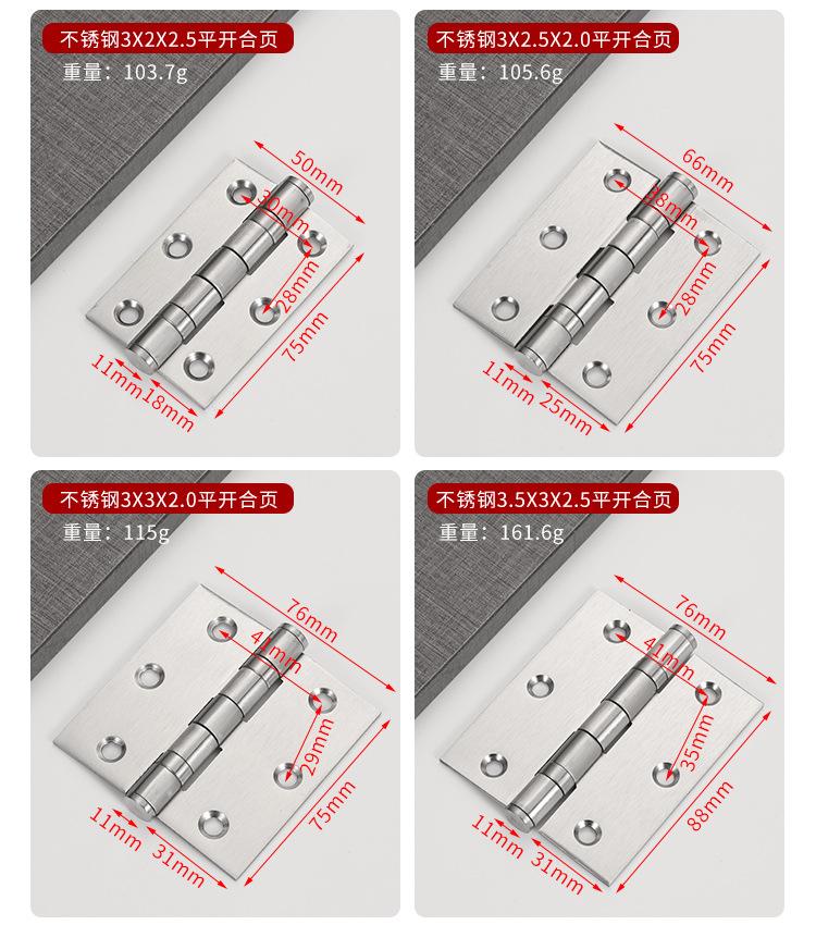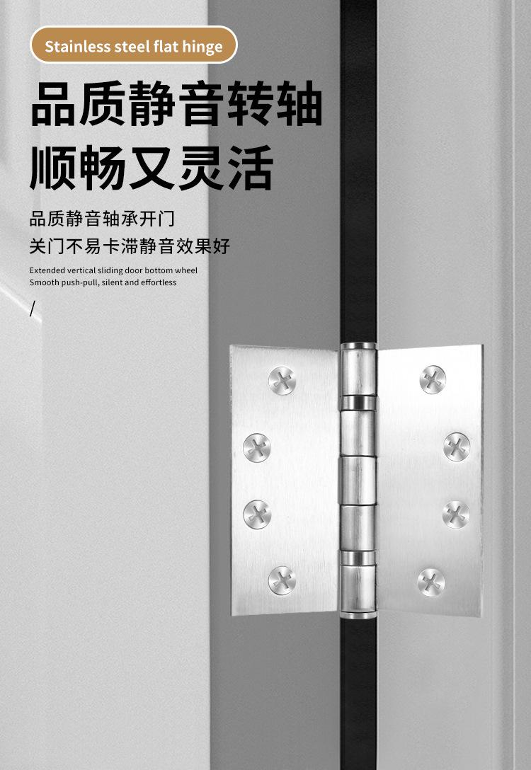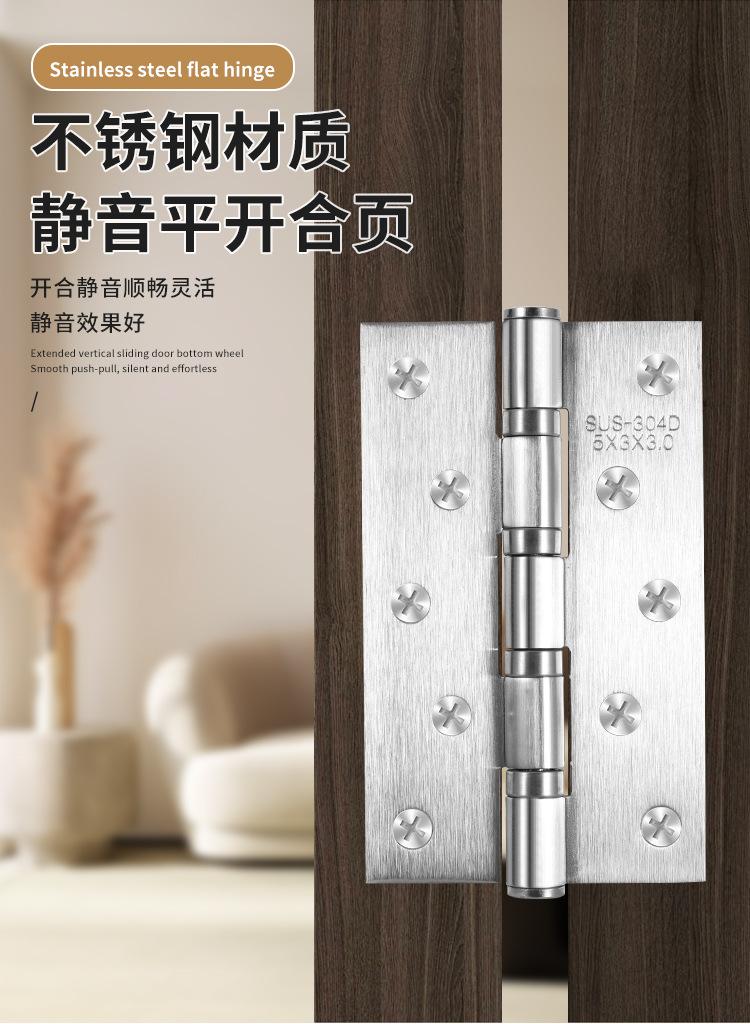 Bisagra plana de acero inoxidable 304 de 3, 4 y 5 pulgadas para puerta de dormitorio, bisagra de rodamiento, bisagra de puerta de madera engrosada y silenciosa