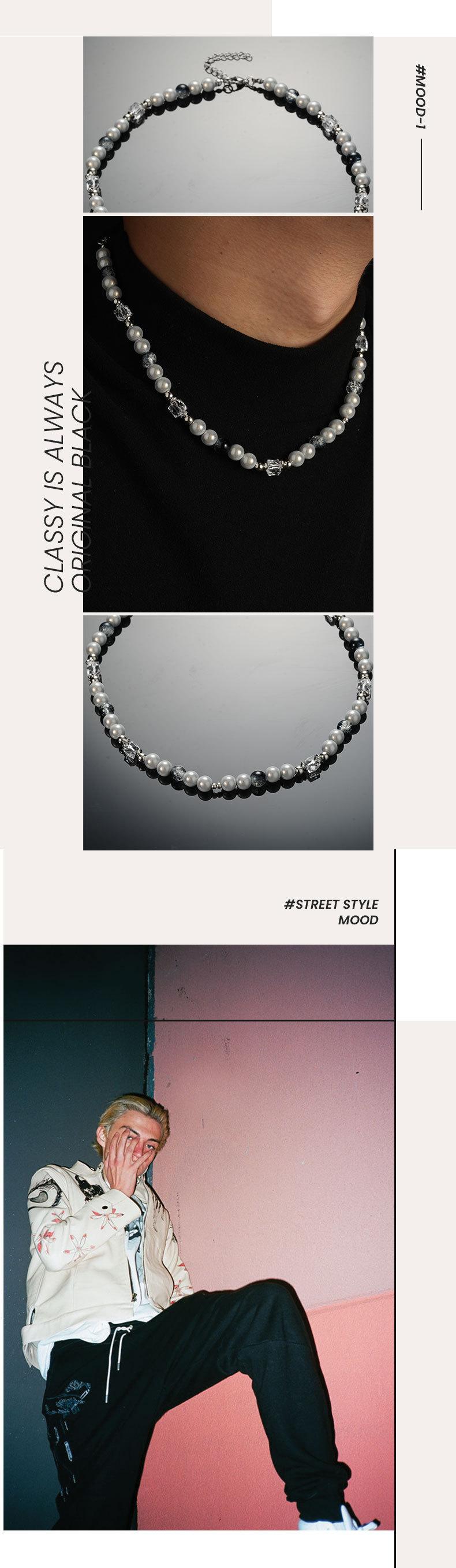 Collar de Perlas Empalmadas Acero de Titanio para Hombre 2025 Nueva Joyería Transfronteriza Europea y Americana Ins Trendy Hip-Hop Cadena de Suéter Versátil para Mujer
