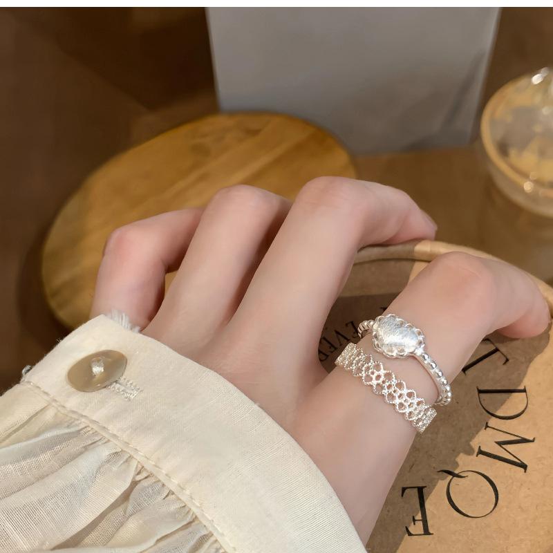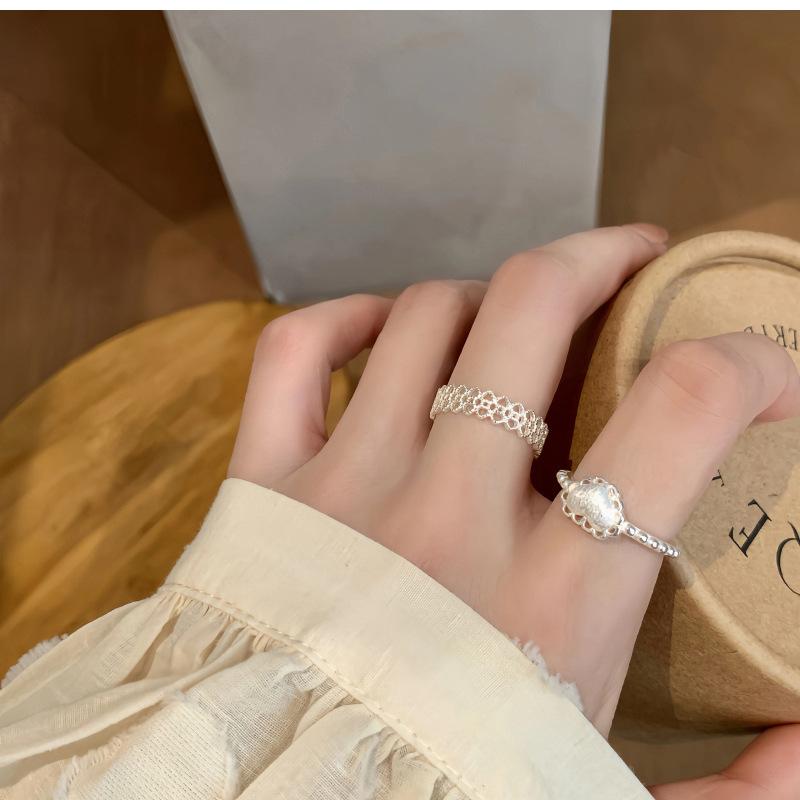 Anillo de encaje de estilo coreano para mujer, anillo de dedo de alta gama de nicho de moda, elegante anillo ajustable con apertura que combina con todo.