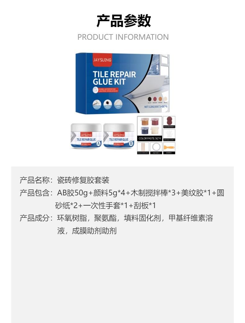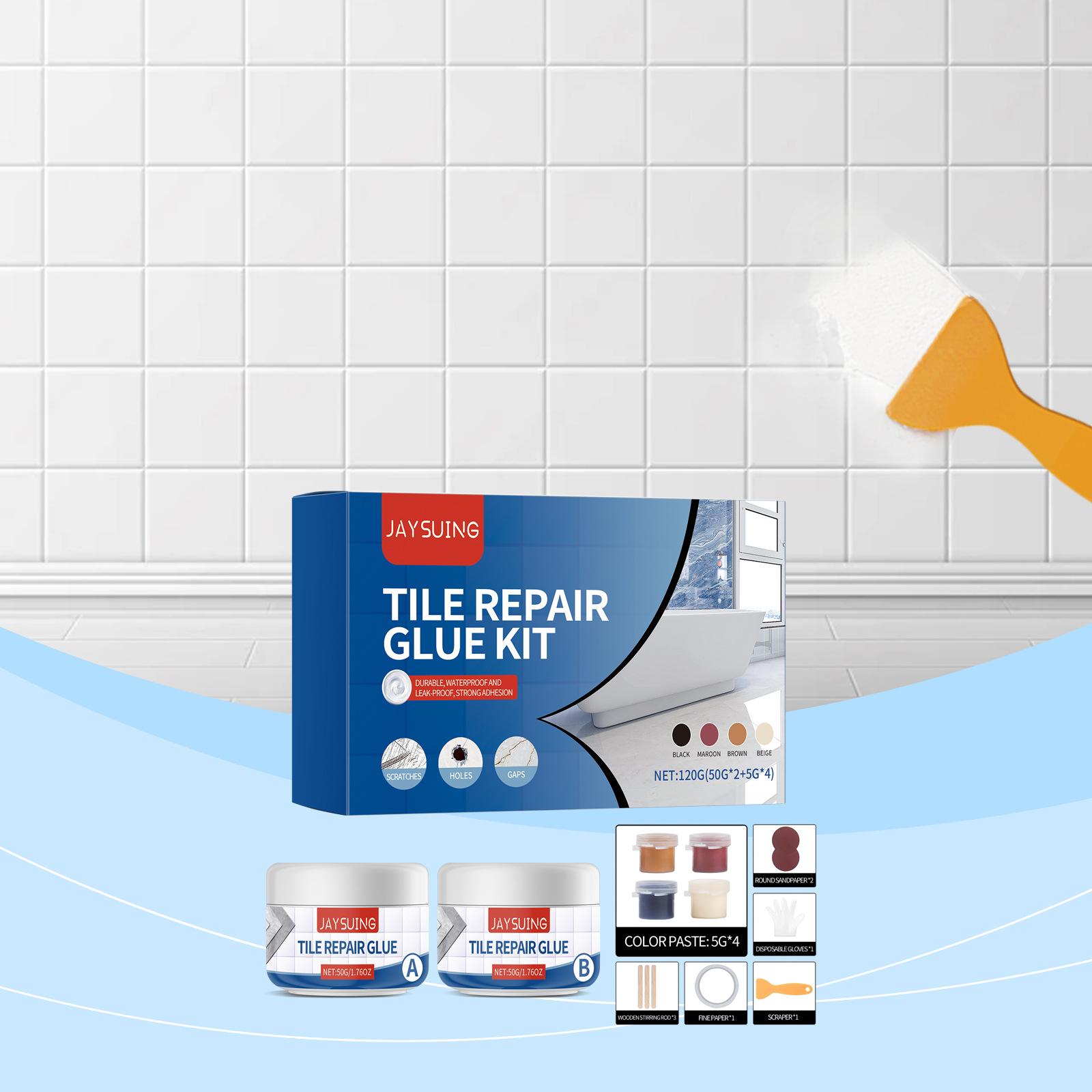 Jaysuing Set de Pegamento para Reparación de Azulejos Reparación de Azulejos Bañera Ducha Reparación de Arañazos Grietas Impermeable y a Prueba de Fugas