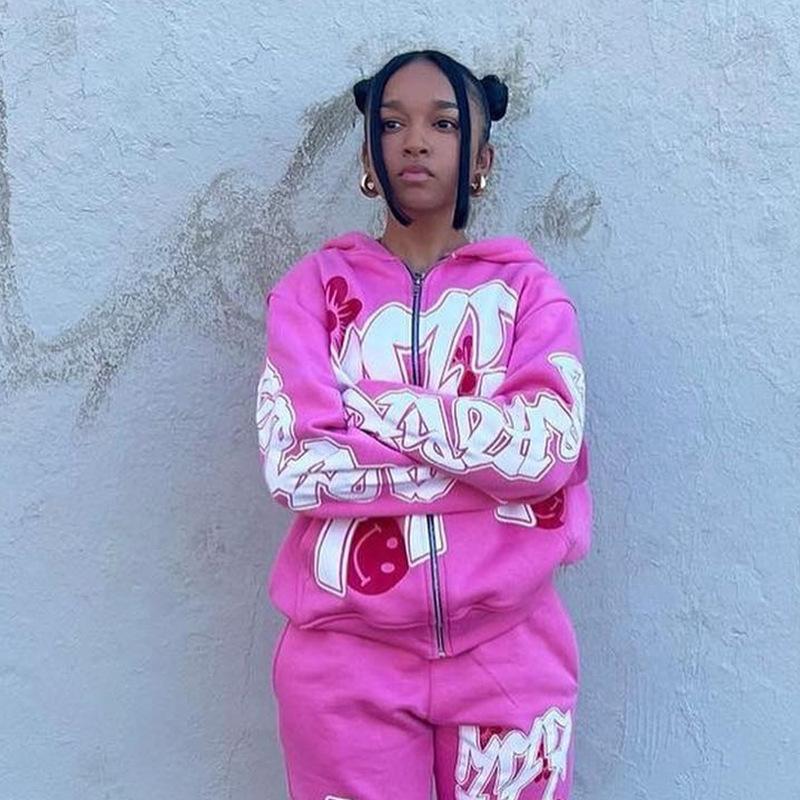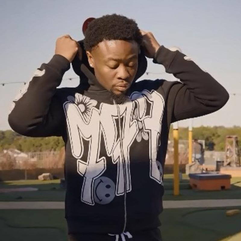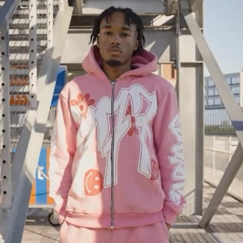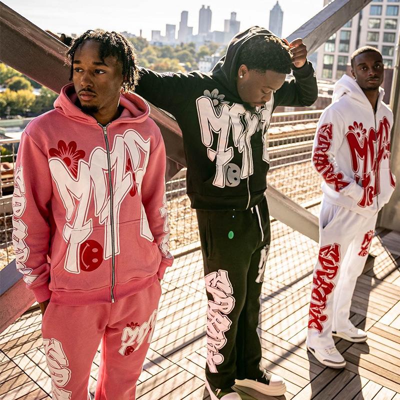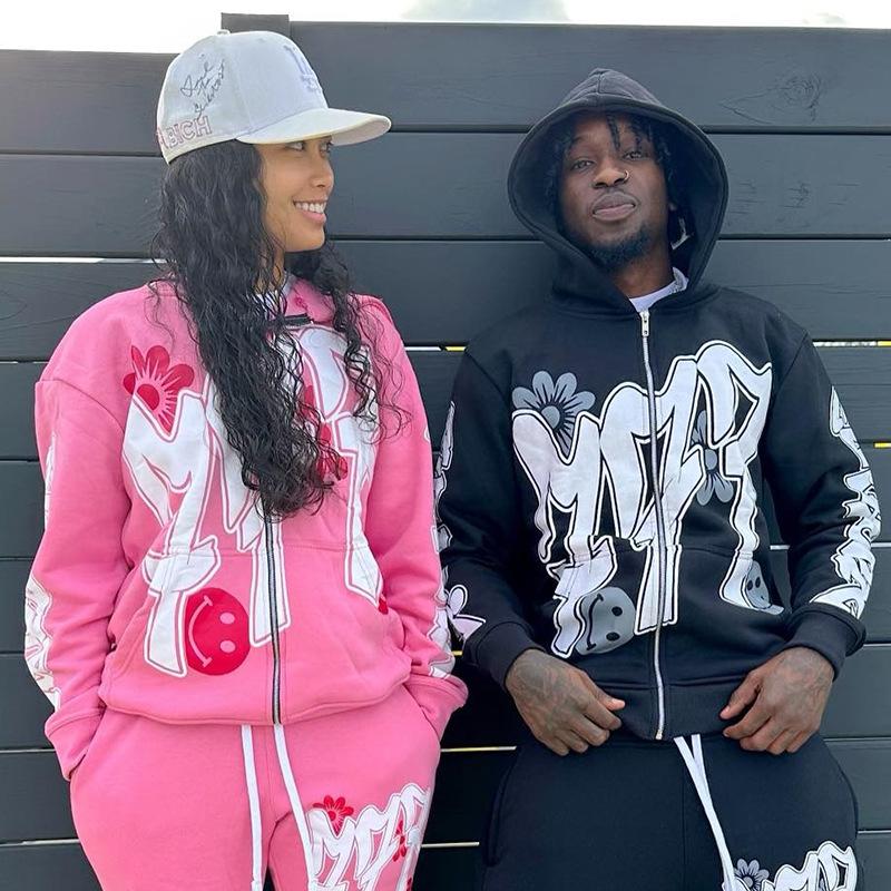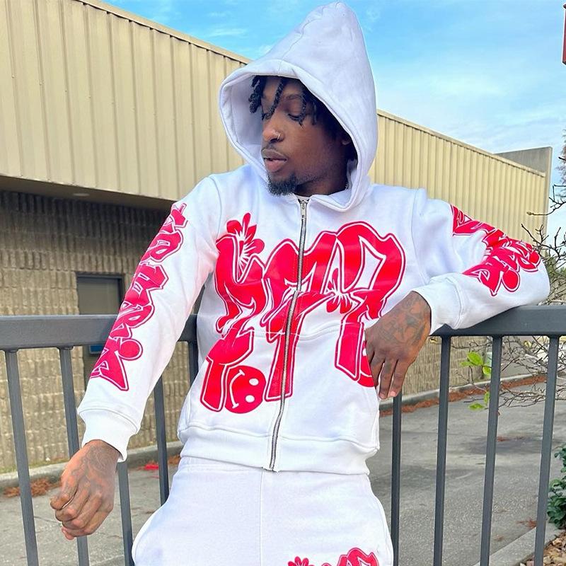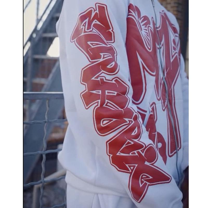 Nuevo cárdigan holgado con capucha y cremallera estilo hip hop callejero con estampado de letras estilo europeo y americano de otoño e invierno transfronterizo
