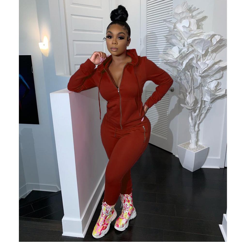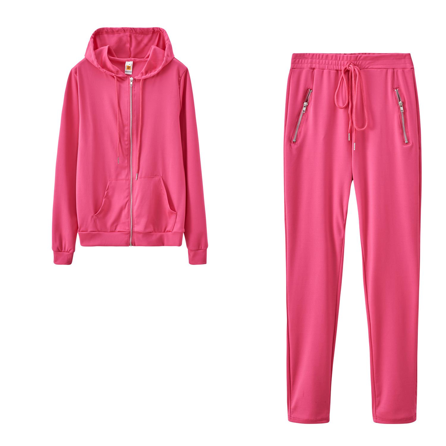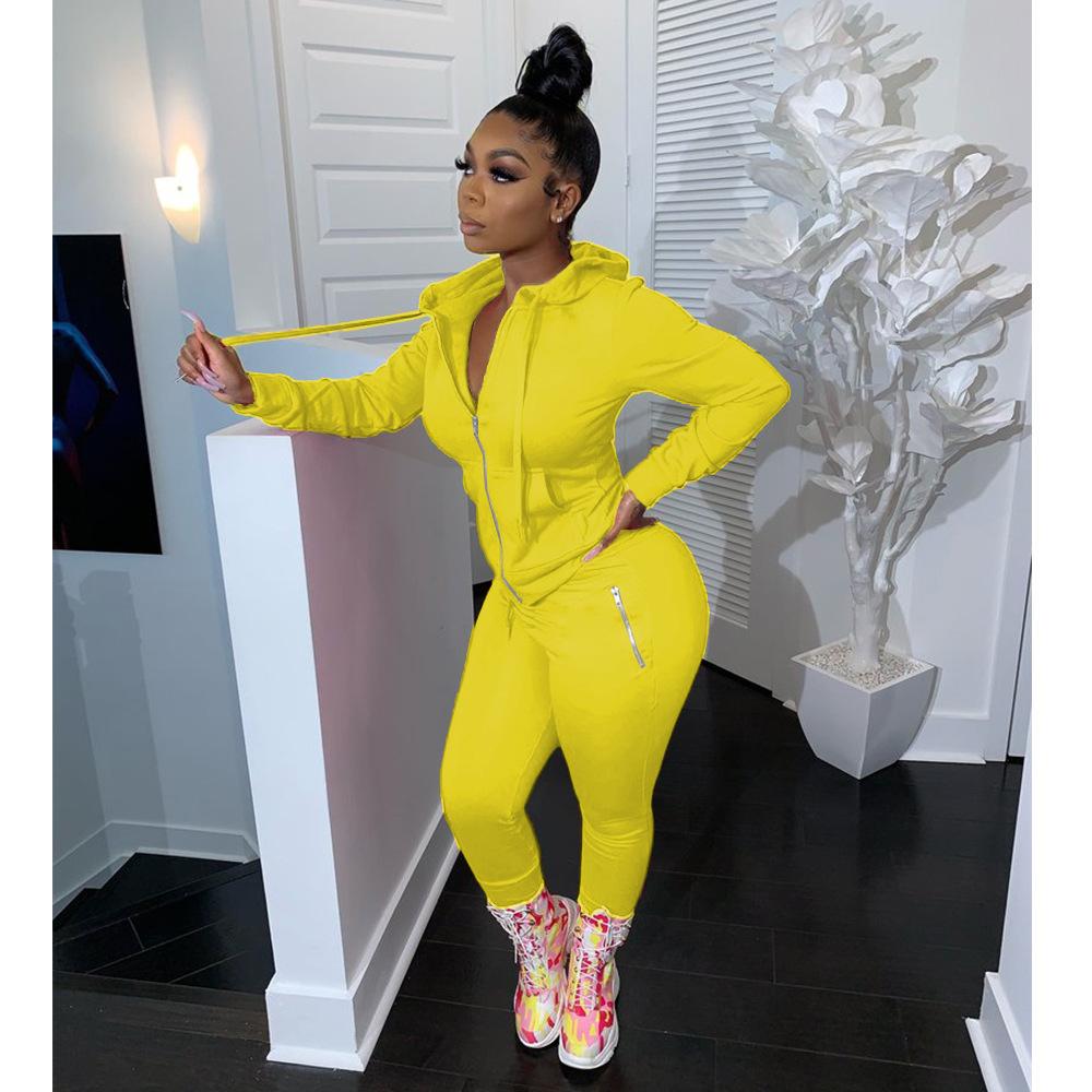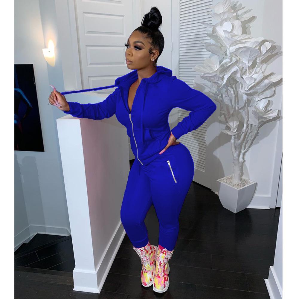 9649# otoño moda europea y americana para mujer deportivo casual traje color sólido personalizado bolsillo con cremallera conjunto de dos piezas