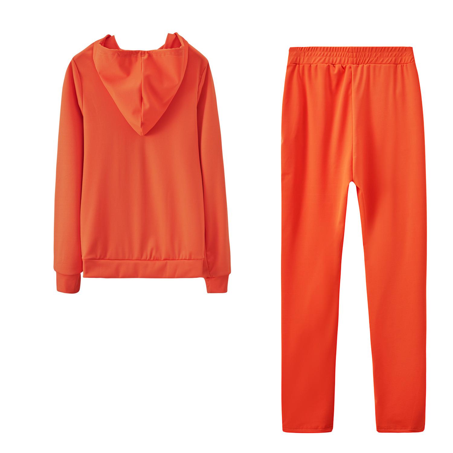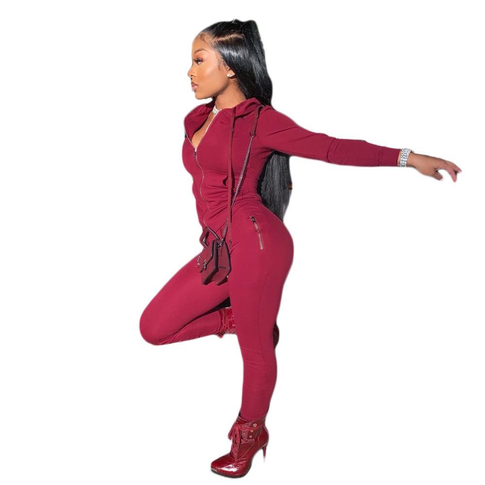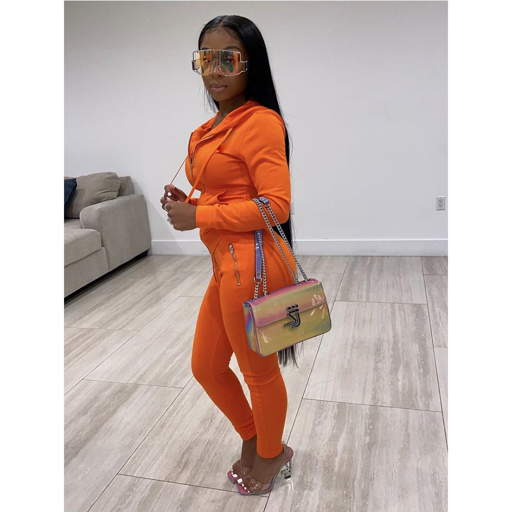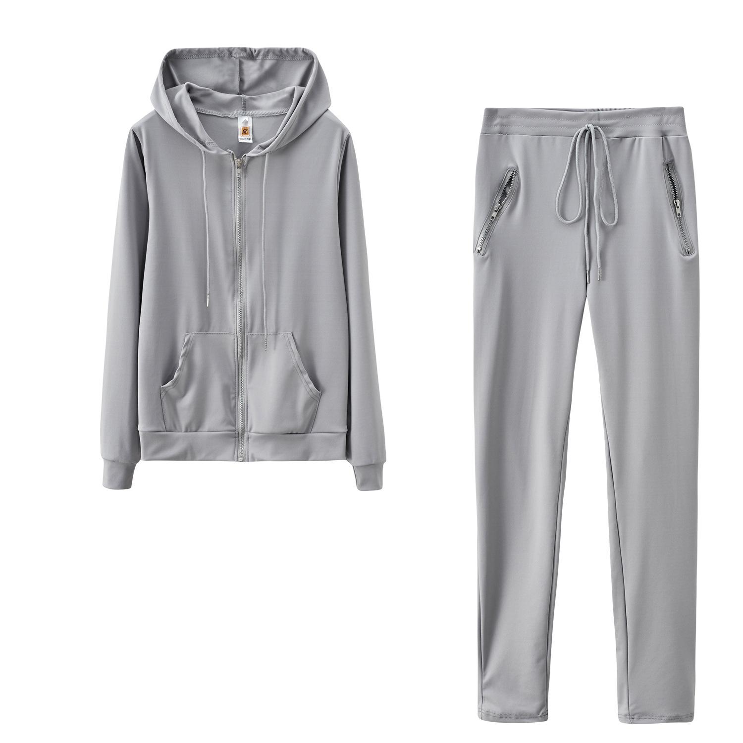 9649# otoño moda europea y americana para mujer deportivo casual traje color sólido personalizado bolsillo con cremallera conjunto de dos piezas