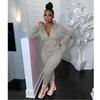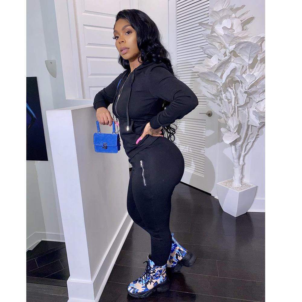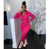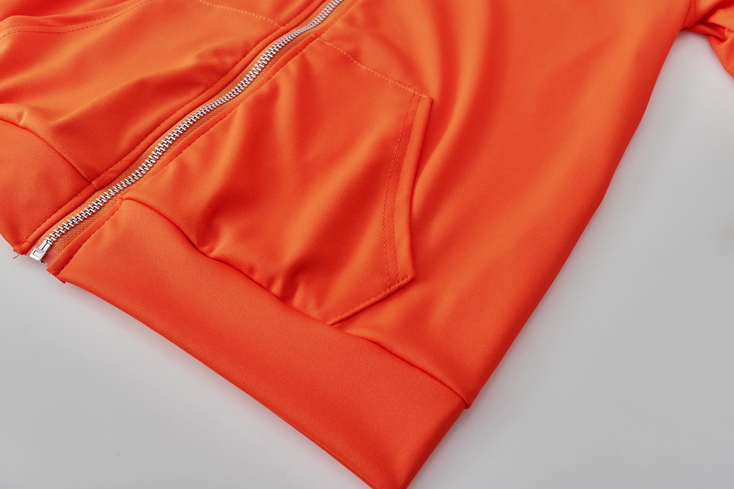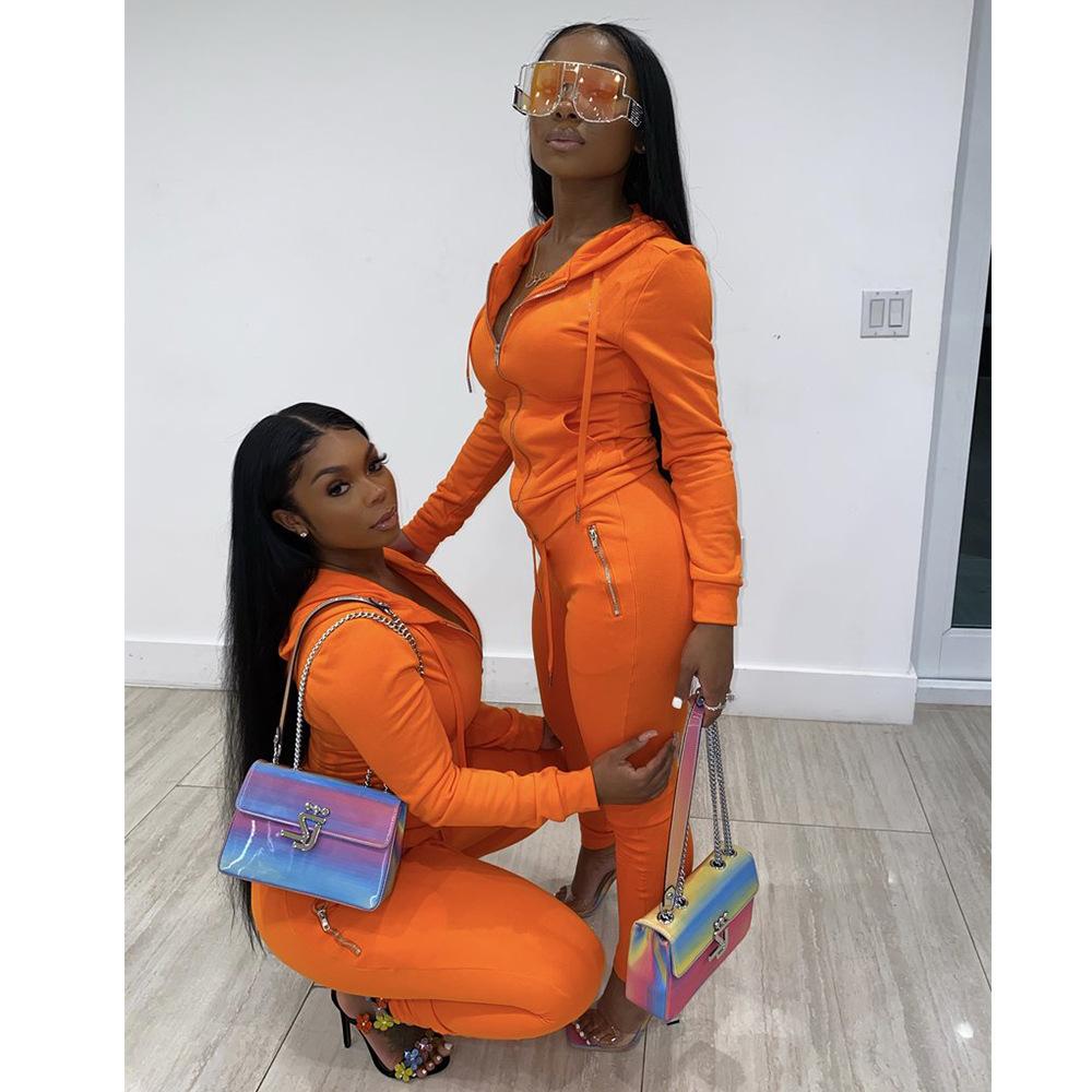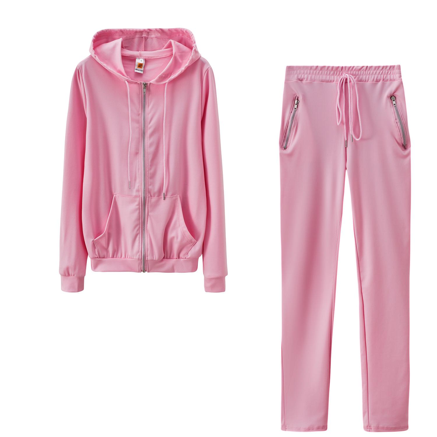 9649# otoño moda europea y americana para mujer deportivo casual traje color sólido personalizado bolsillo con cremallera conjunto de dos piezas