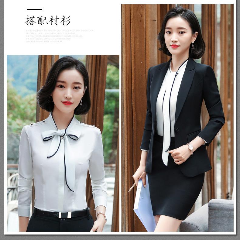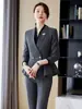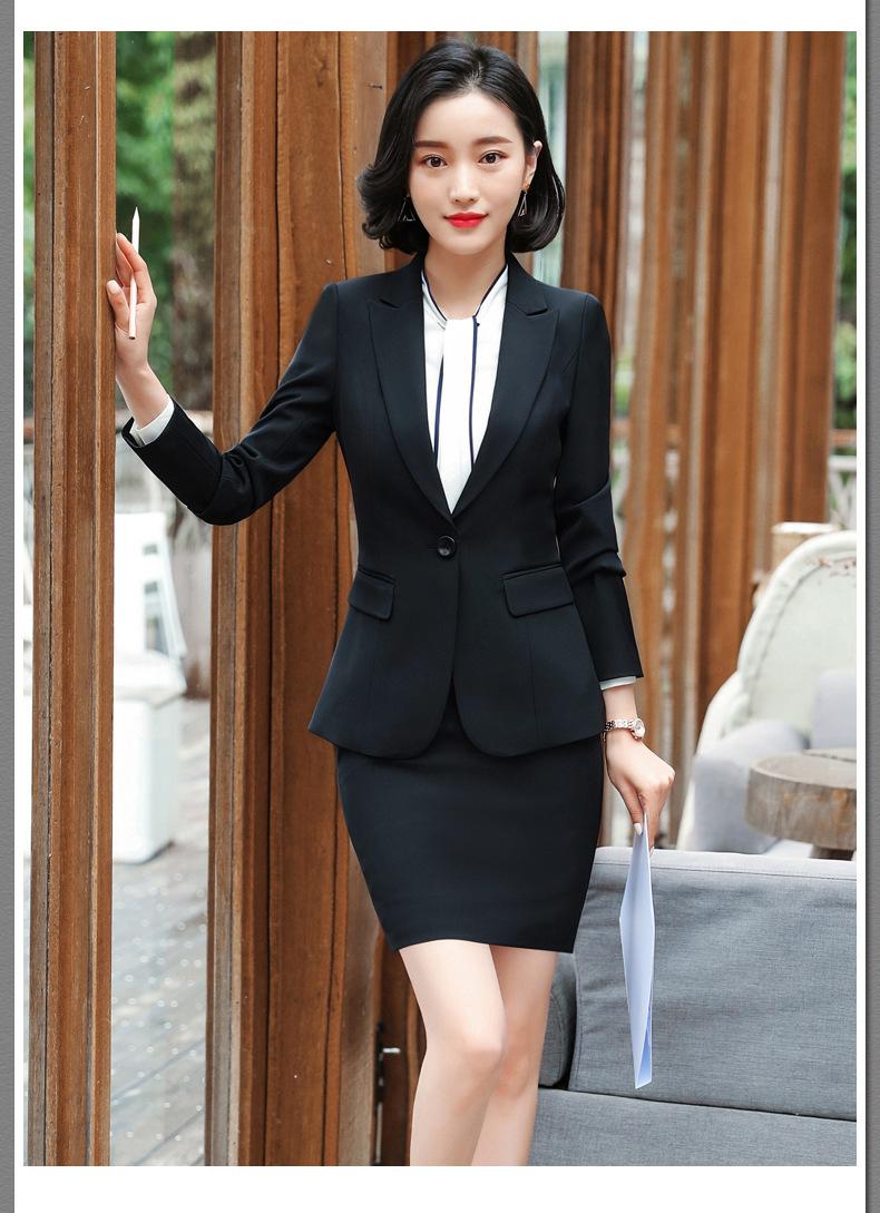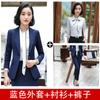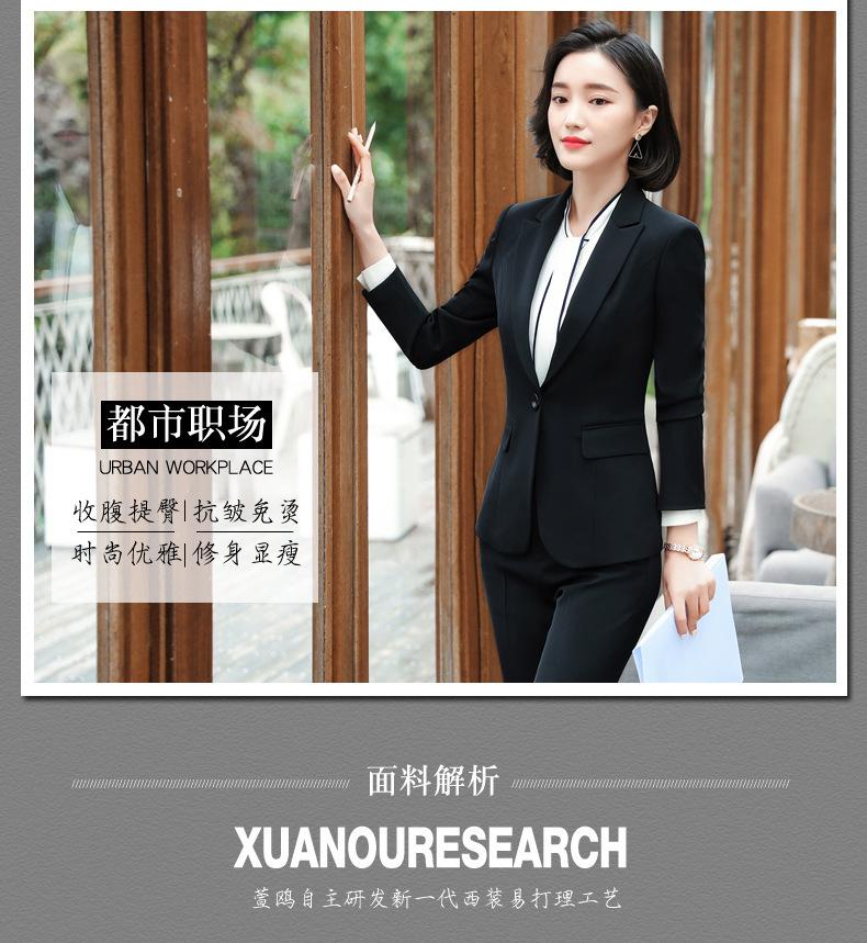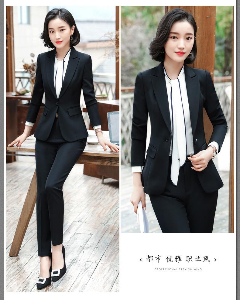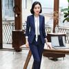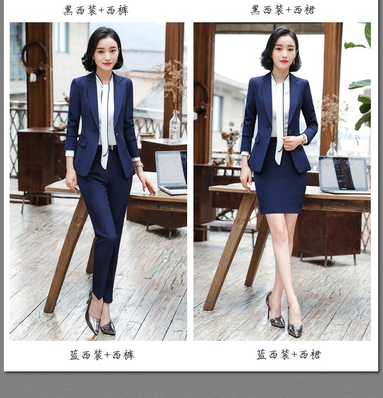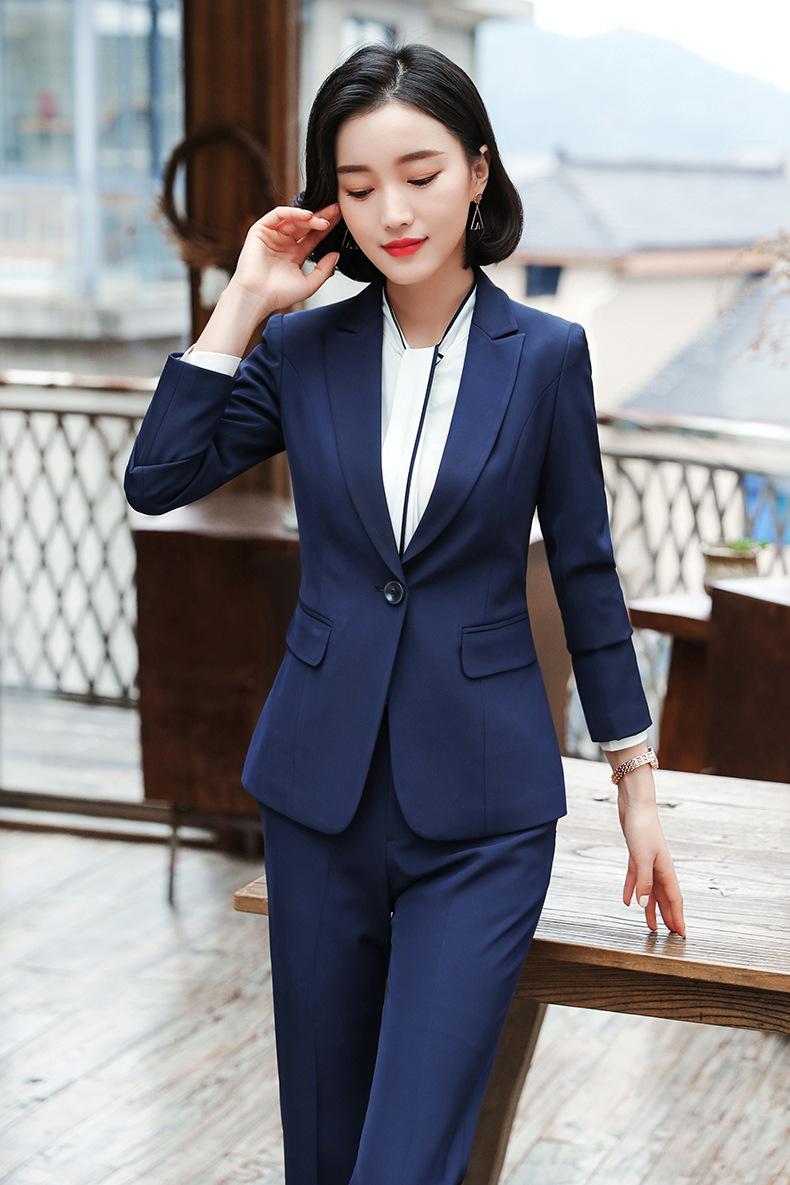 Traje de mujer de negocios transfronterizo, traje de dos piezas para mujer con temperamento de moda otoño e invierno, entrevista, azul marino, manga larga