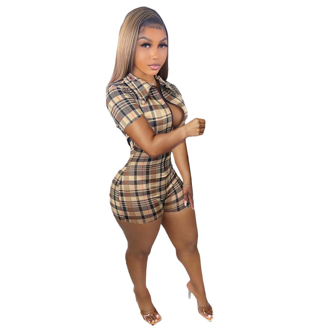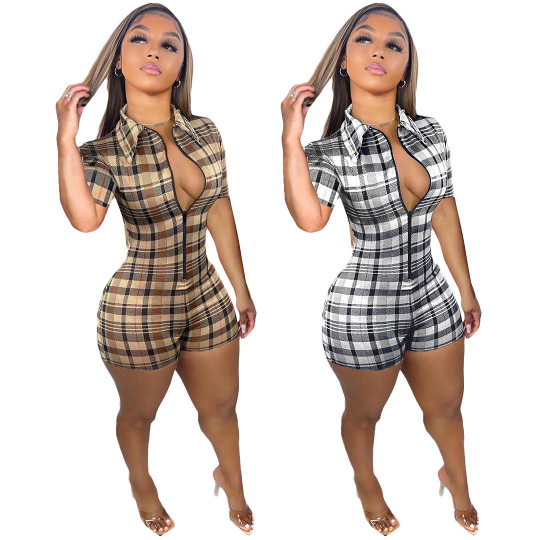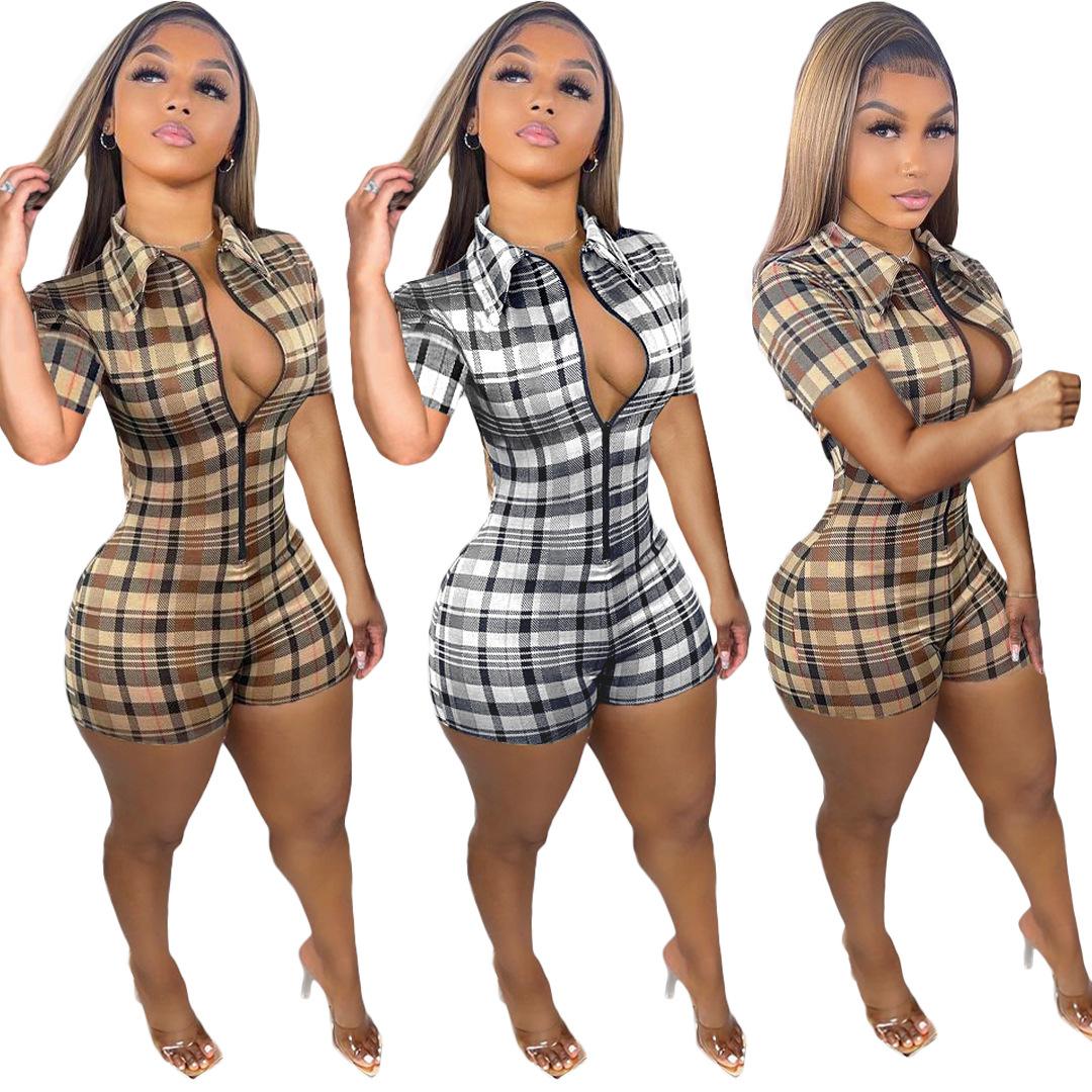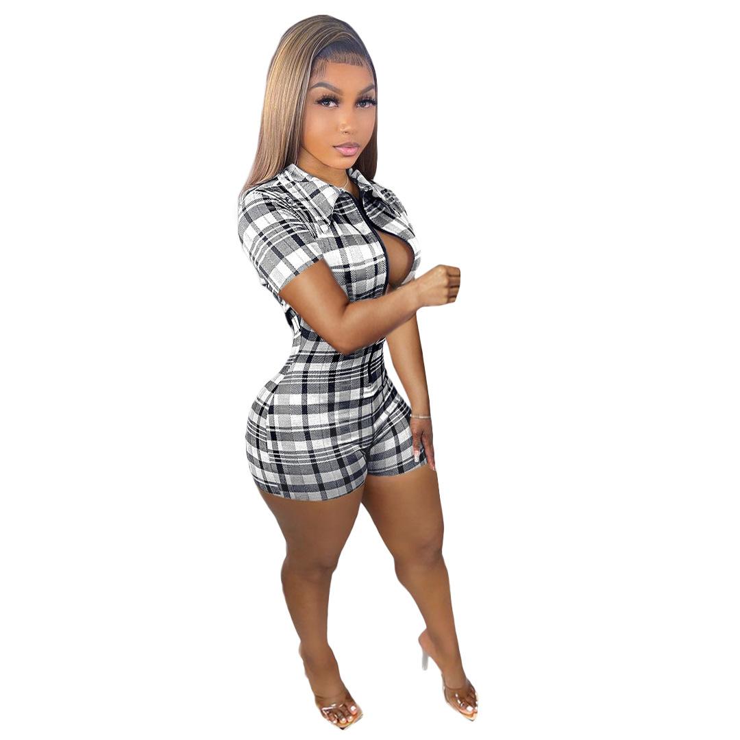 Mono de manga corta de primavera y otoño de 2022 para mujer, de comercio exterior europeo y americano, nuevo pantalón corto ajustado con cremallera y solapa sexy para mujer
