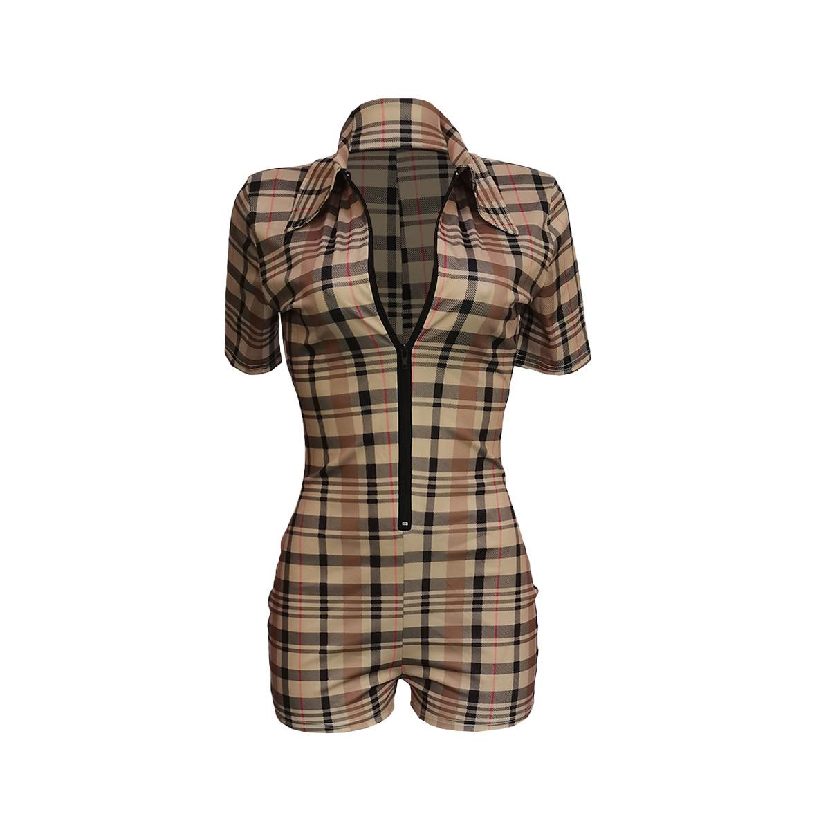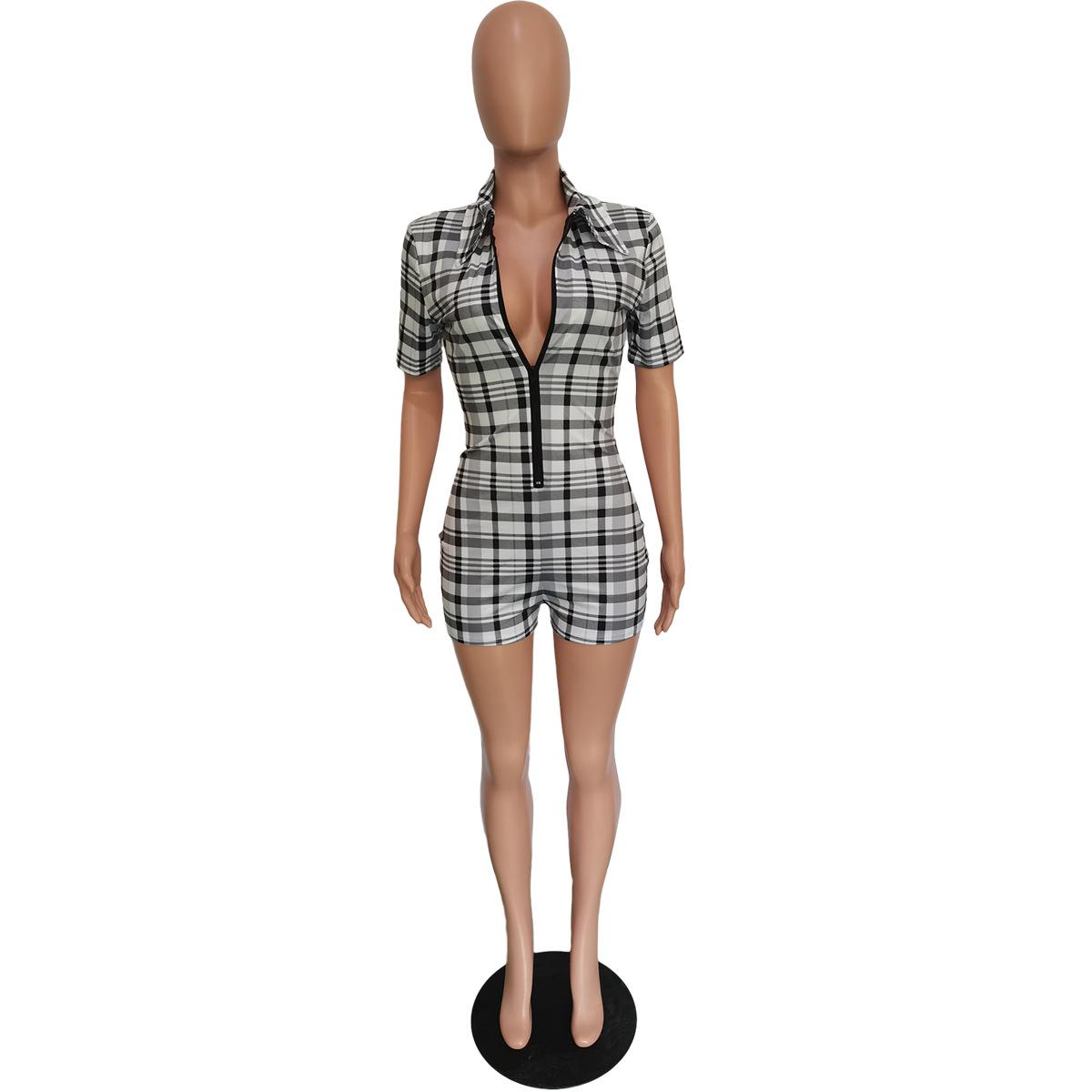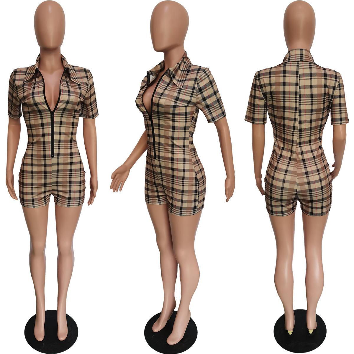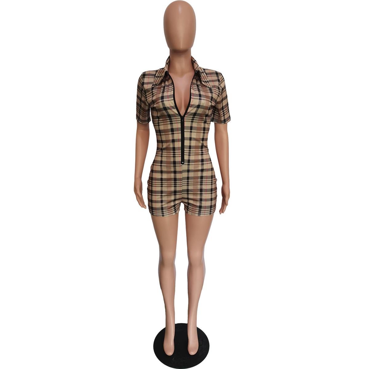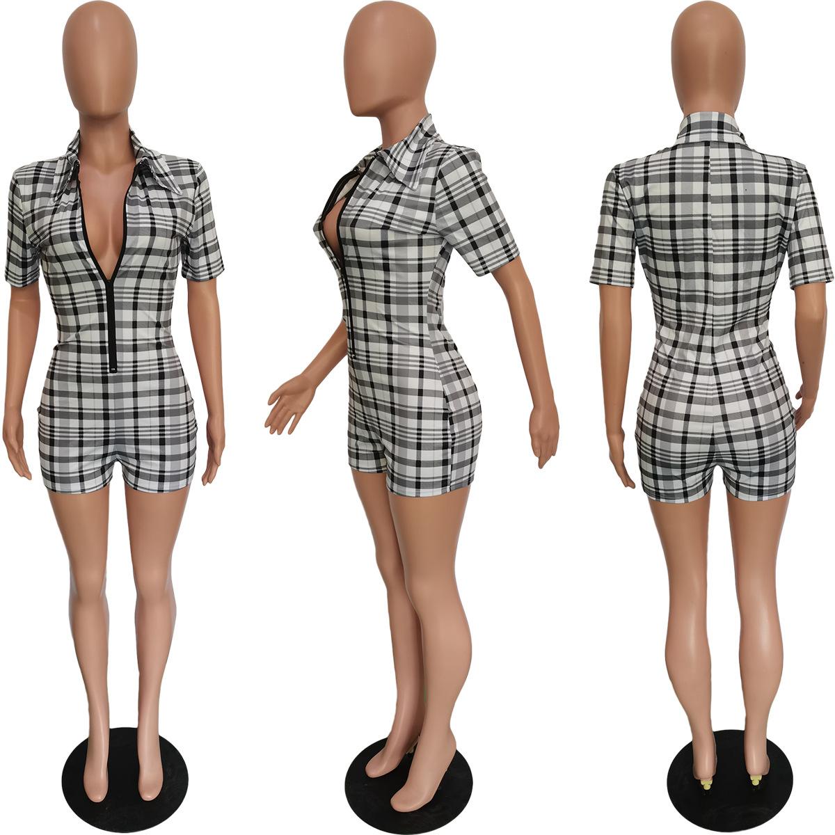 Mono de manga corta de primavera y otoño de 2022 para mujer, de comercio exterior europeo y americano, nuevo pantalón corto ajustado con cremallera y solapa sexy para mujer