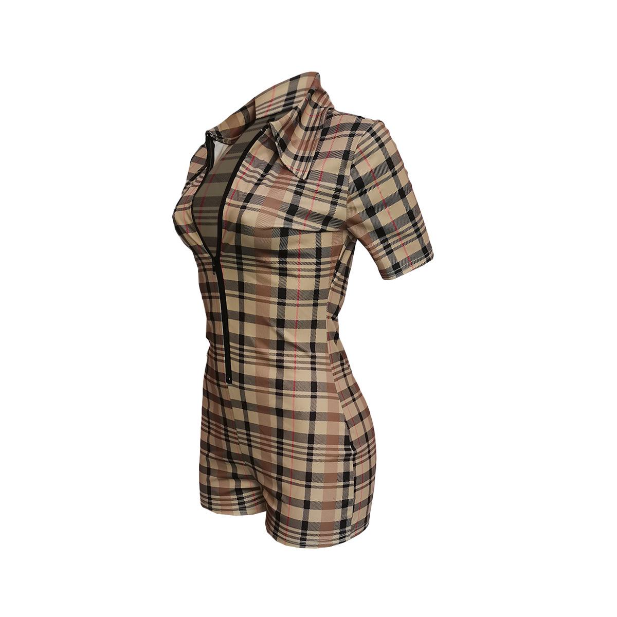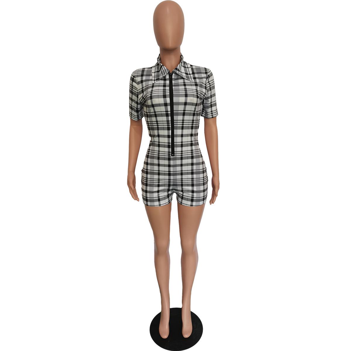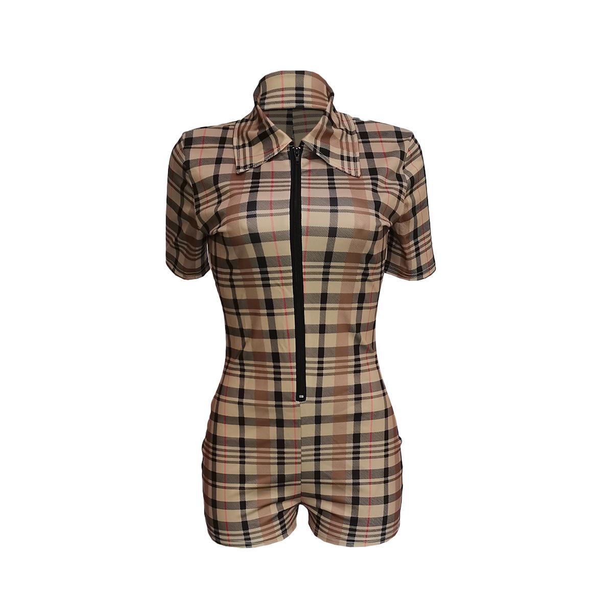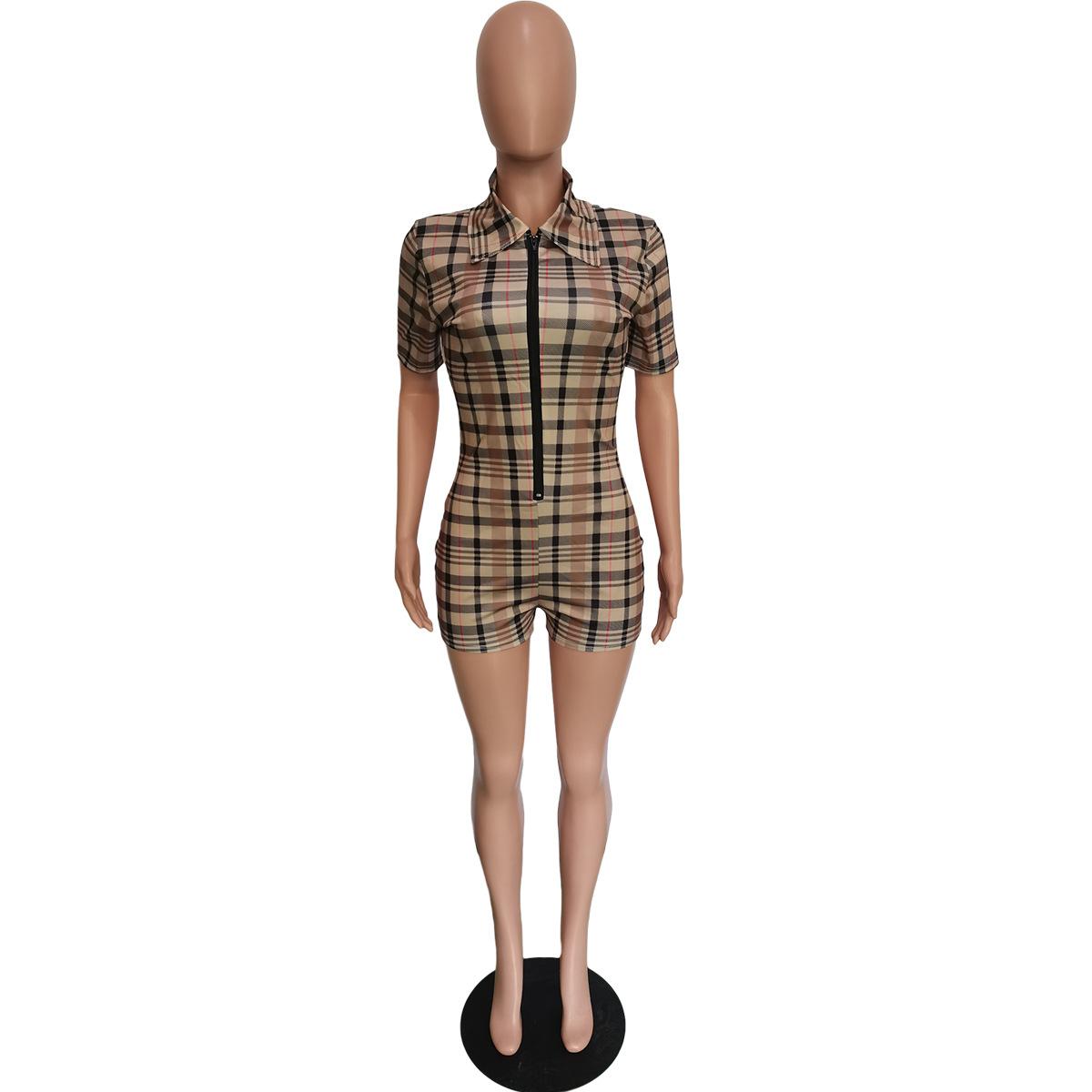 Mono de manga corta de primavera y otoño de 2022 para mujer, de comercio exterior europeo y americano, nuevo pantalón corto ajustado con cremallera y solapa sexy para mujer