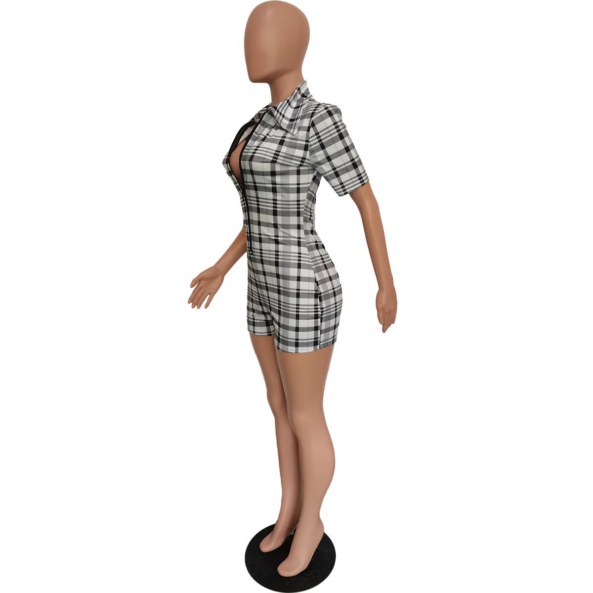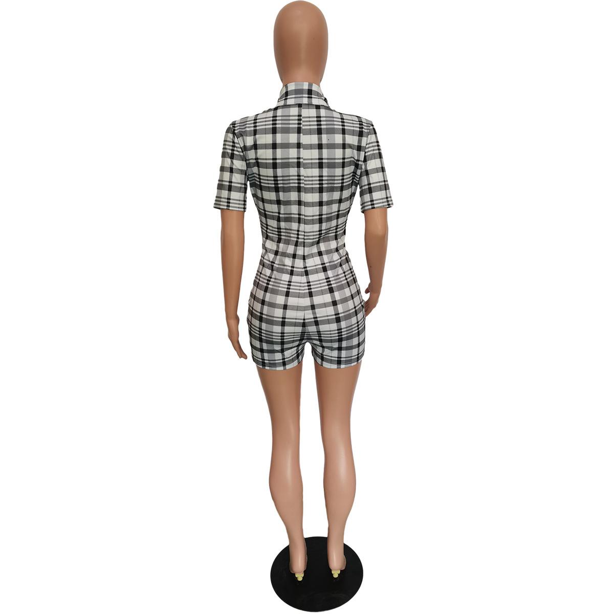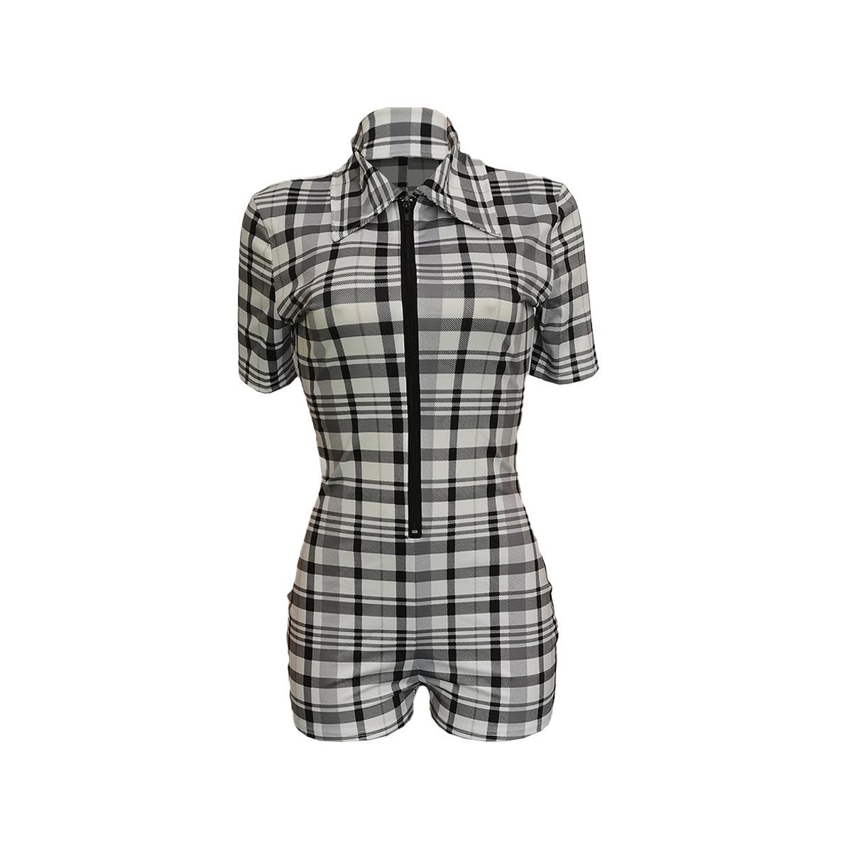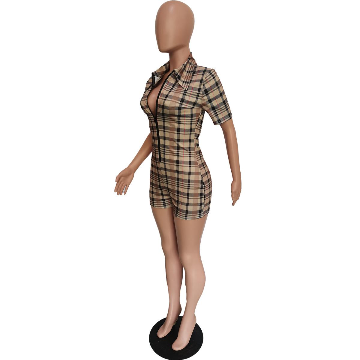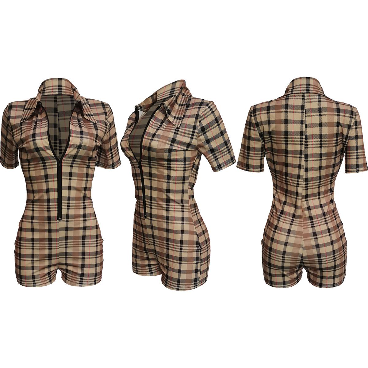 Mono de manga corta de primavera y otoño de 2022 para mujer, de comercio exterior europeo y americano, nuevo pantalón corto ajustado con cremallera y solapa sexy para mujer