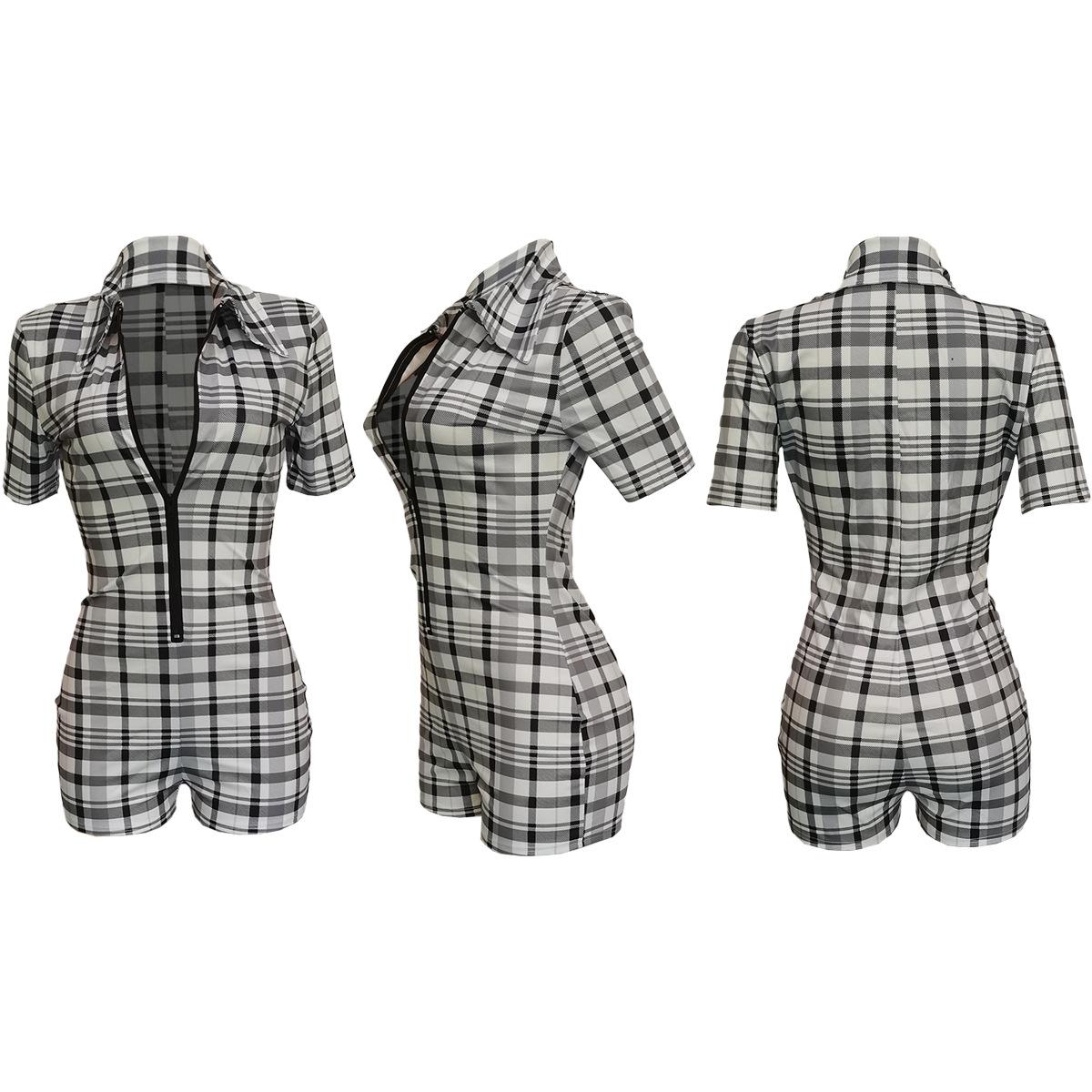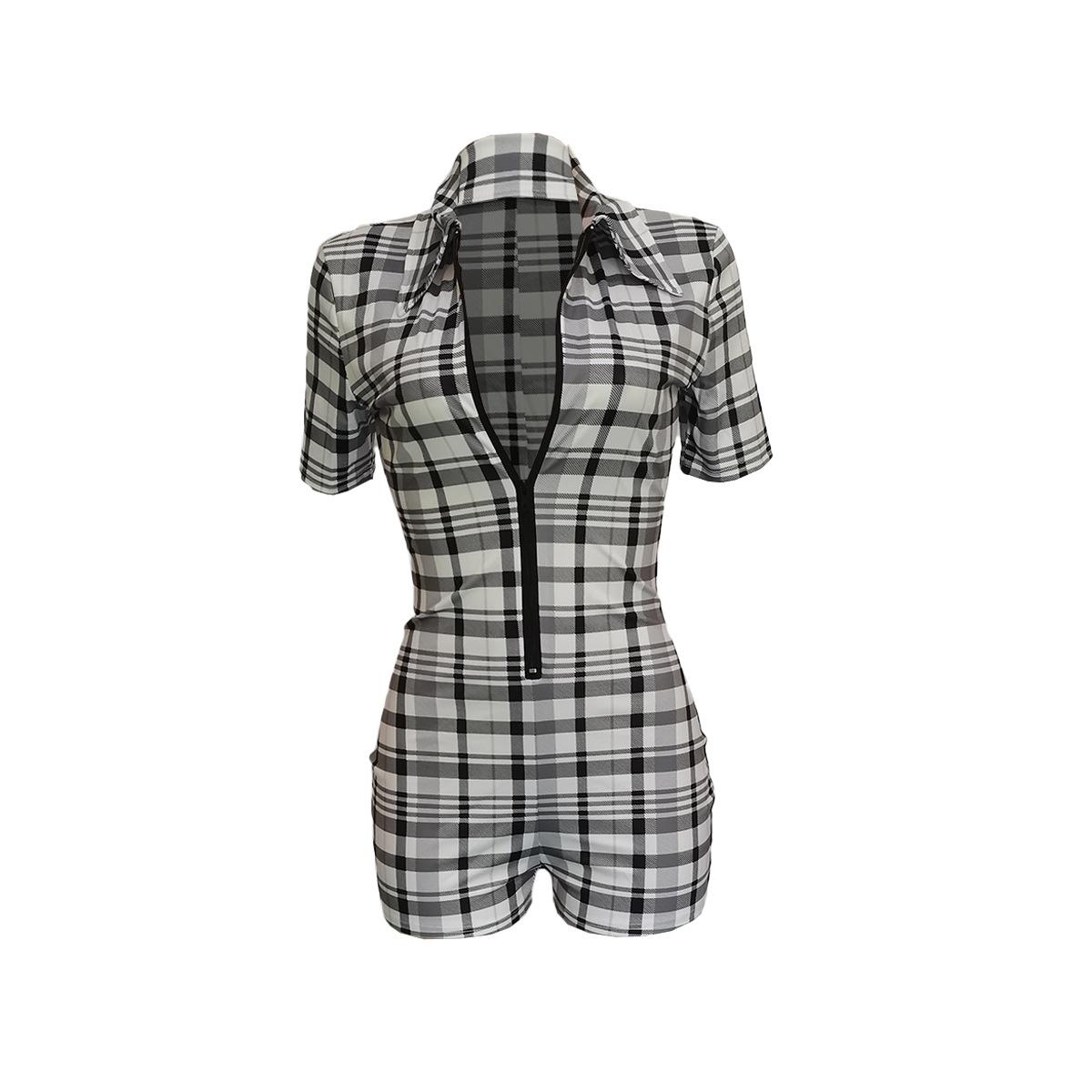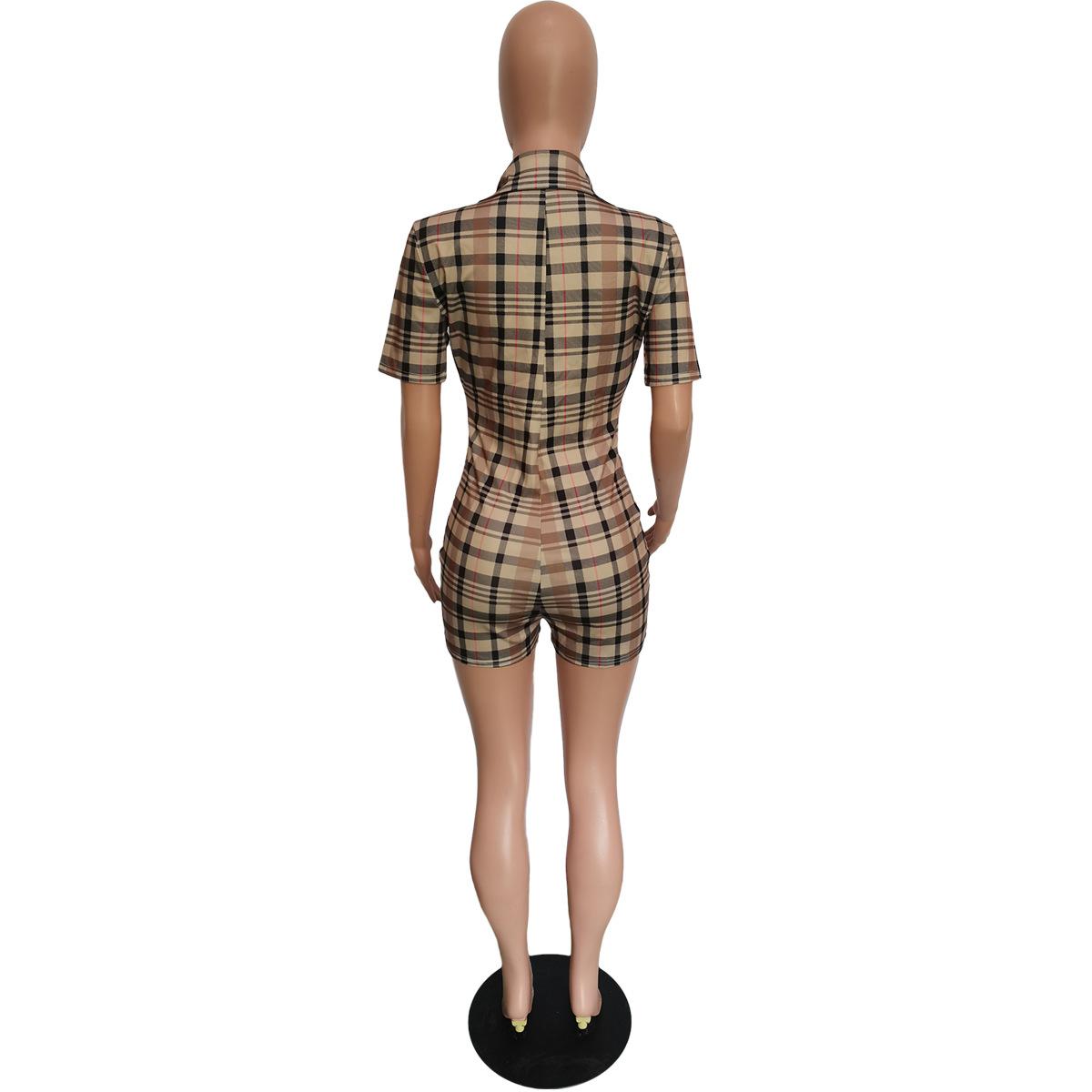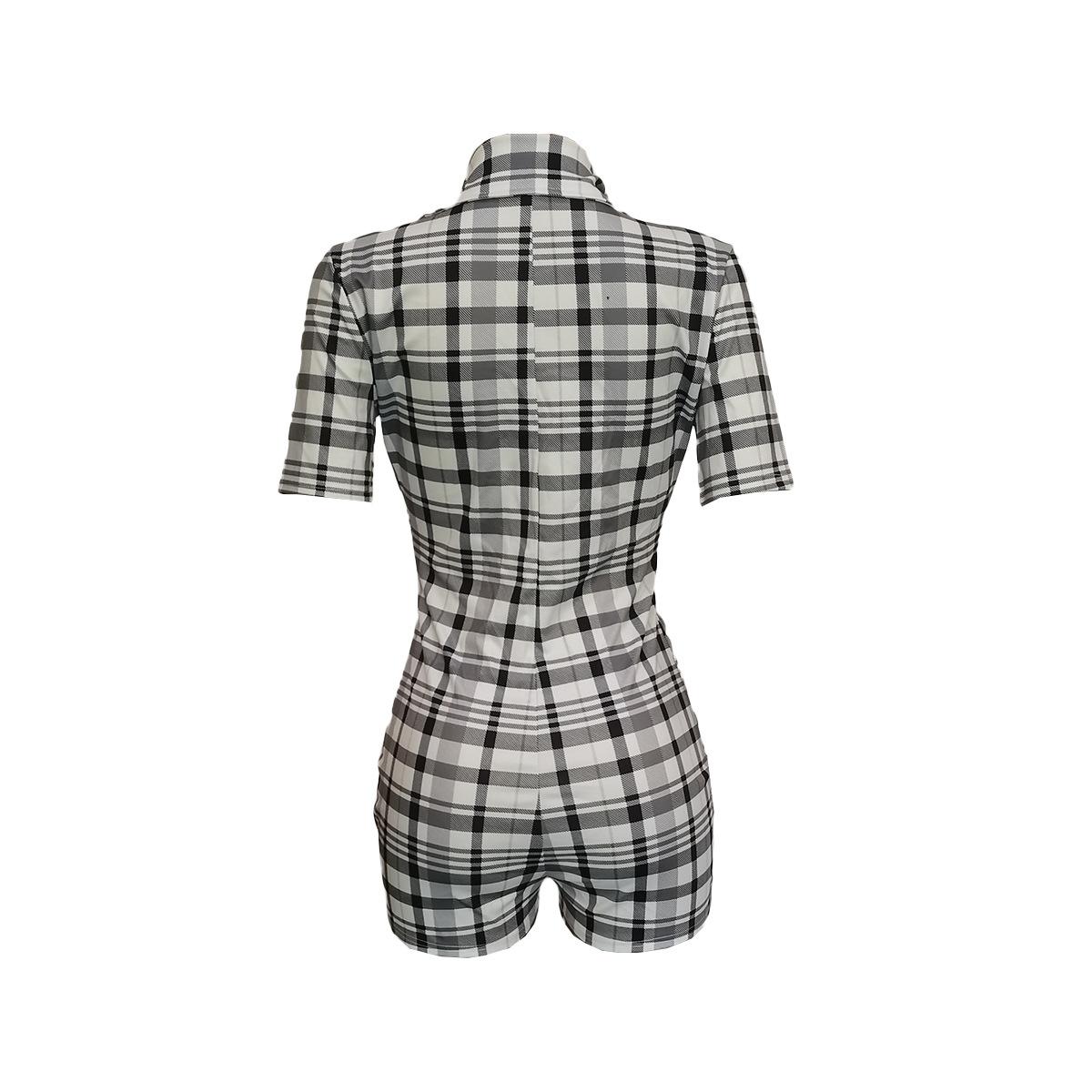 Mono de manga corta de primavera y otoño de 2022 para mujer, de comercio exterior europeo y americano, nuevo pantalón corto ajustado con cremallera y solapa sexy para mujer