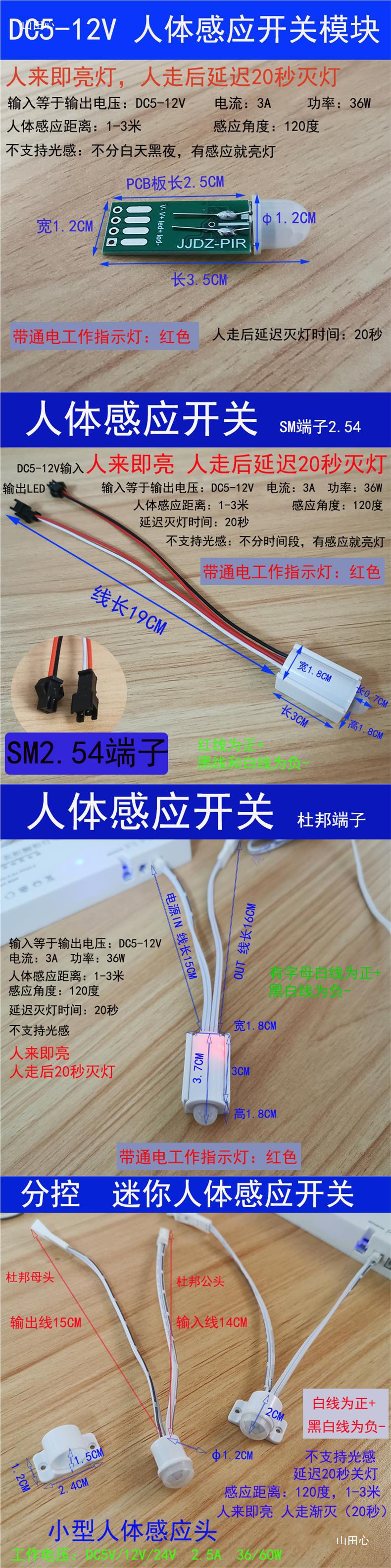 DC5 ~ 24V3A atenuación de luz LED con brillo gradual y extinción gradual, control de puerta por escaneo manual del cuerpo humano, módulo de placa PCB con interruptor de inducción infrarroja