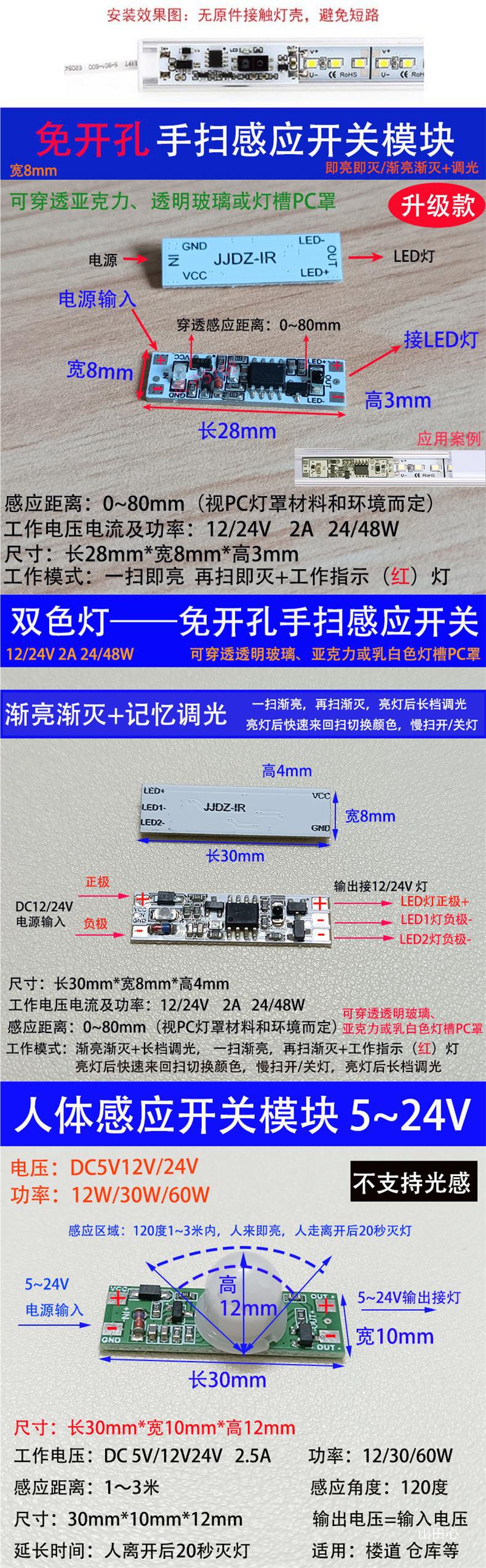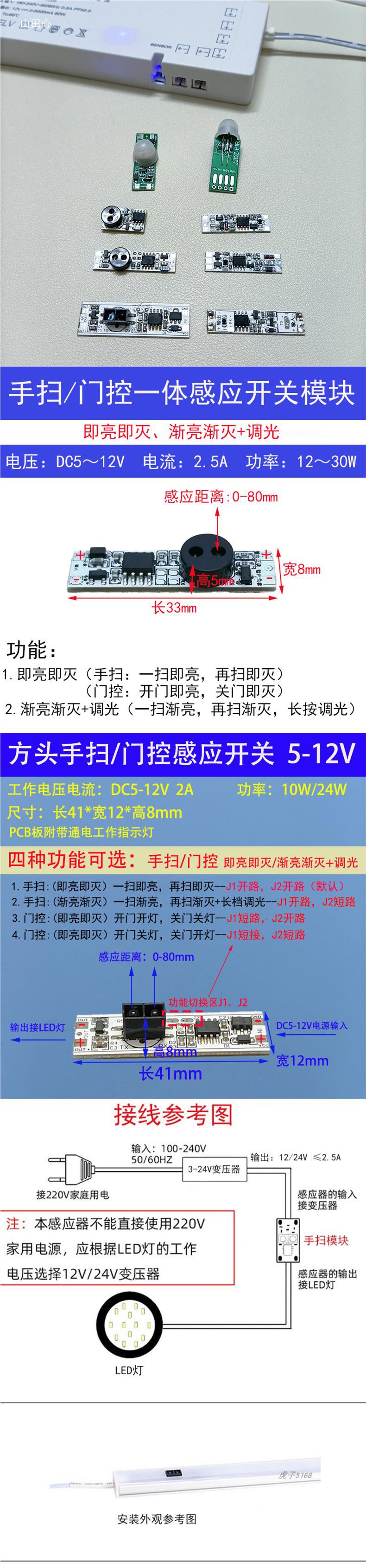 General control hand scan sensor switch gradually light gradually off + dimming 12/24V light rear long gear dimming