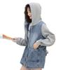 Chamarra de mezclilla con capucha empalmada para mujer Primavera y Otoño 2025 Nueva Moda Holgada Talla Grande Largo Medio Top Pequeño Trendy