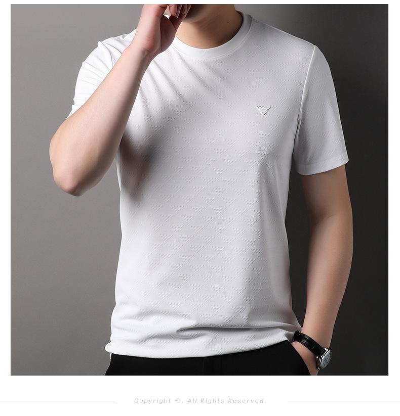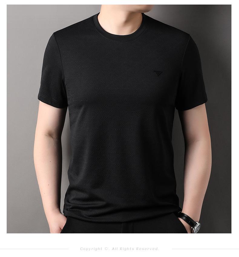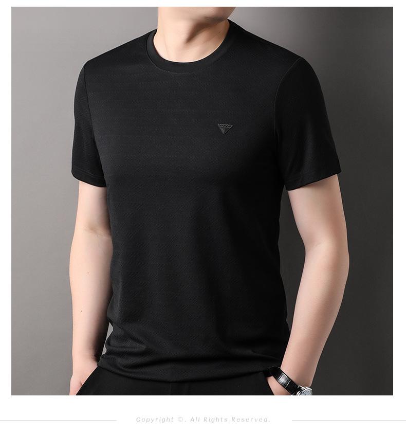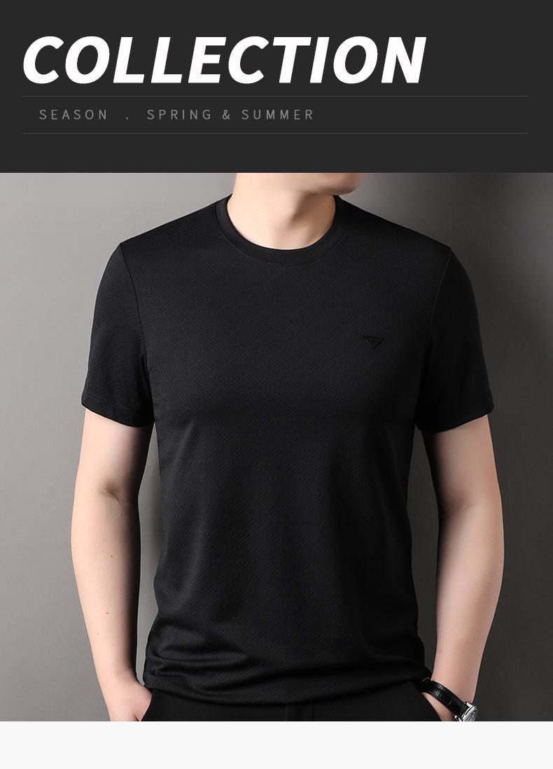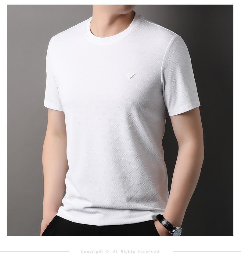 Camiseta de manga corta de jacquard para hombre, cuello redondo, color liso, verano, nueva, combinable, informal, para jóvenes y mediana edad, modal, fina.