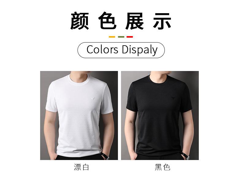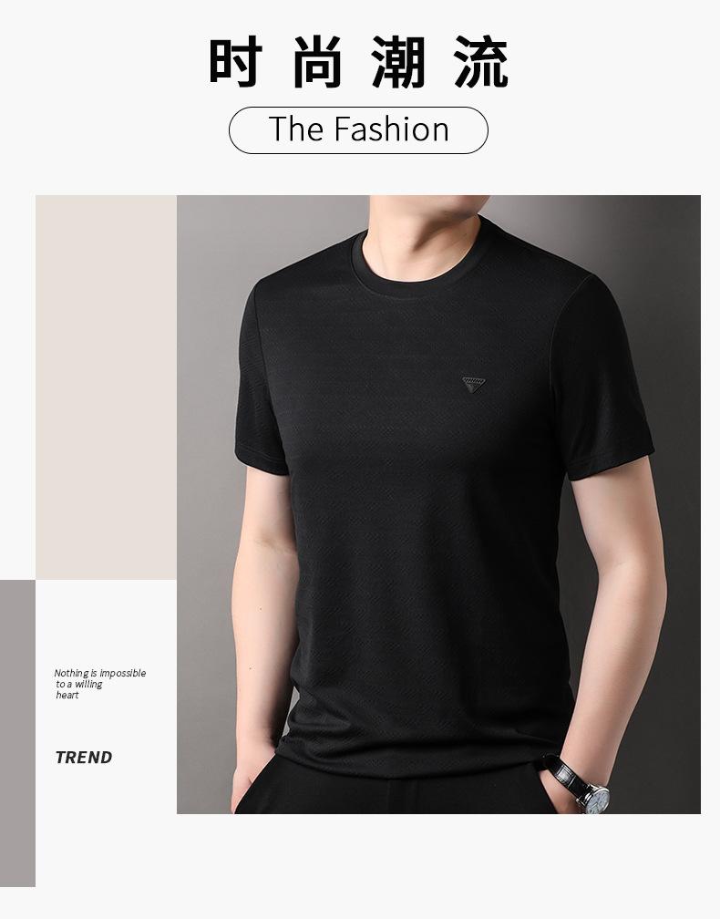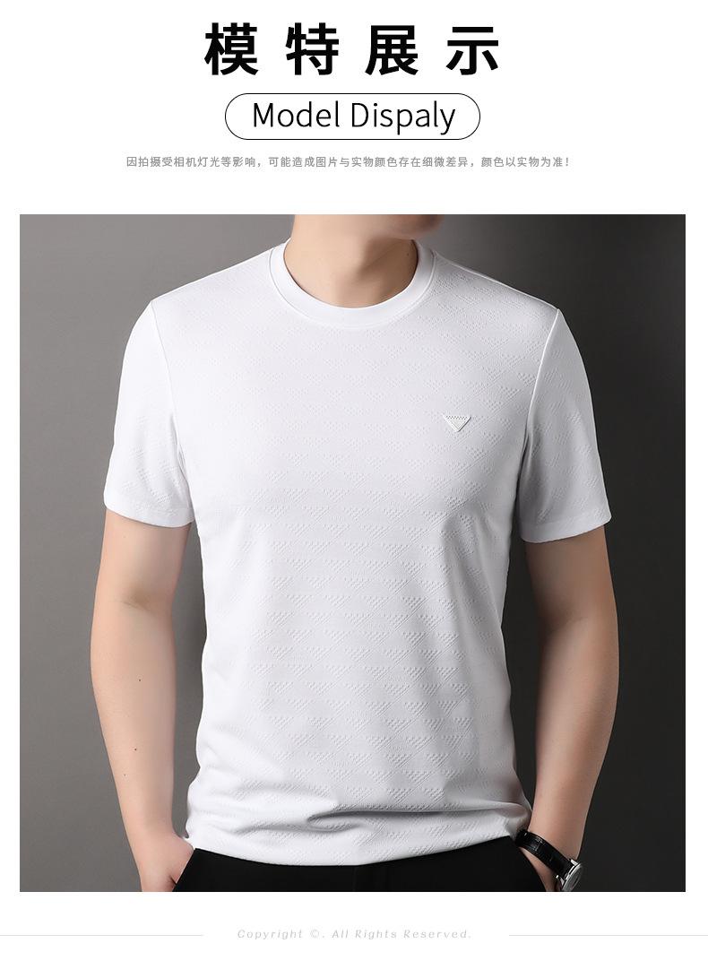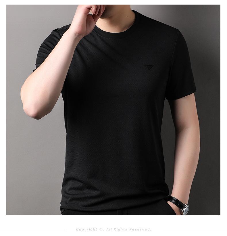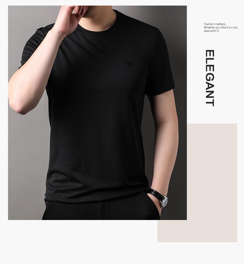 Camiseta de manga corta de jacquard para hombre, cuello redondo, color liso, verano, nueva, combinable, informal, para jóvenes y mediana edad, modal, fina.
