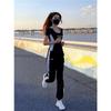 614 # Traje Deportivo Casual para Mujer Verano 2025 Nueva Moda Cremallera Suelto Manga Corta Traje para Correr Conjunto de Dos Piezas