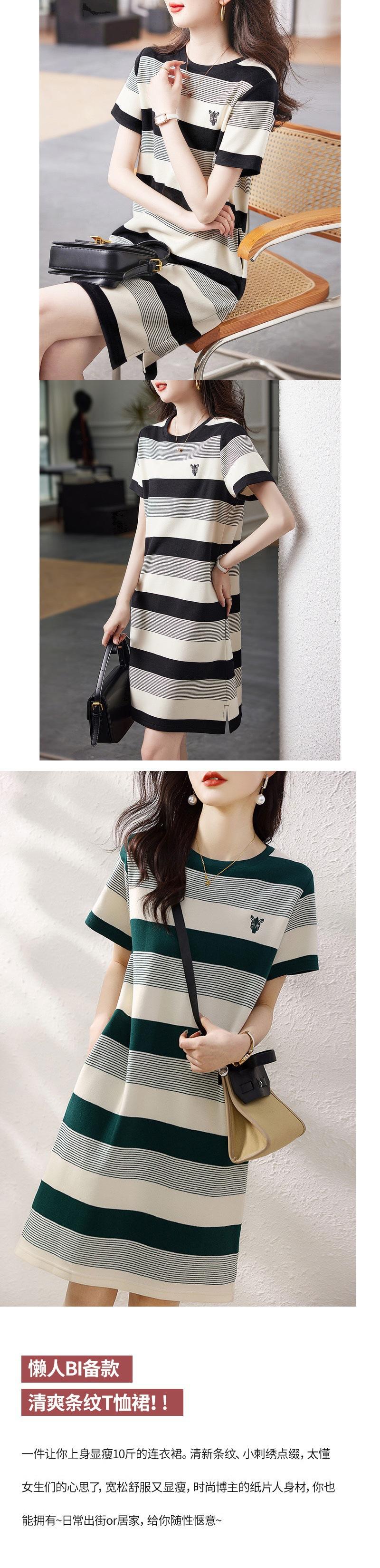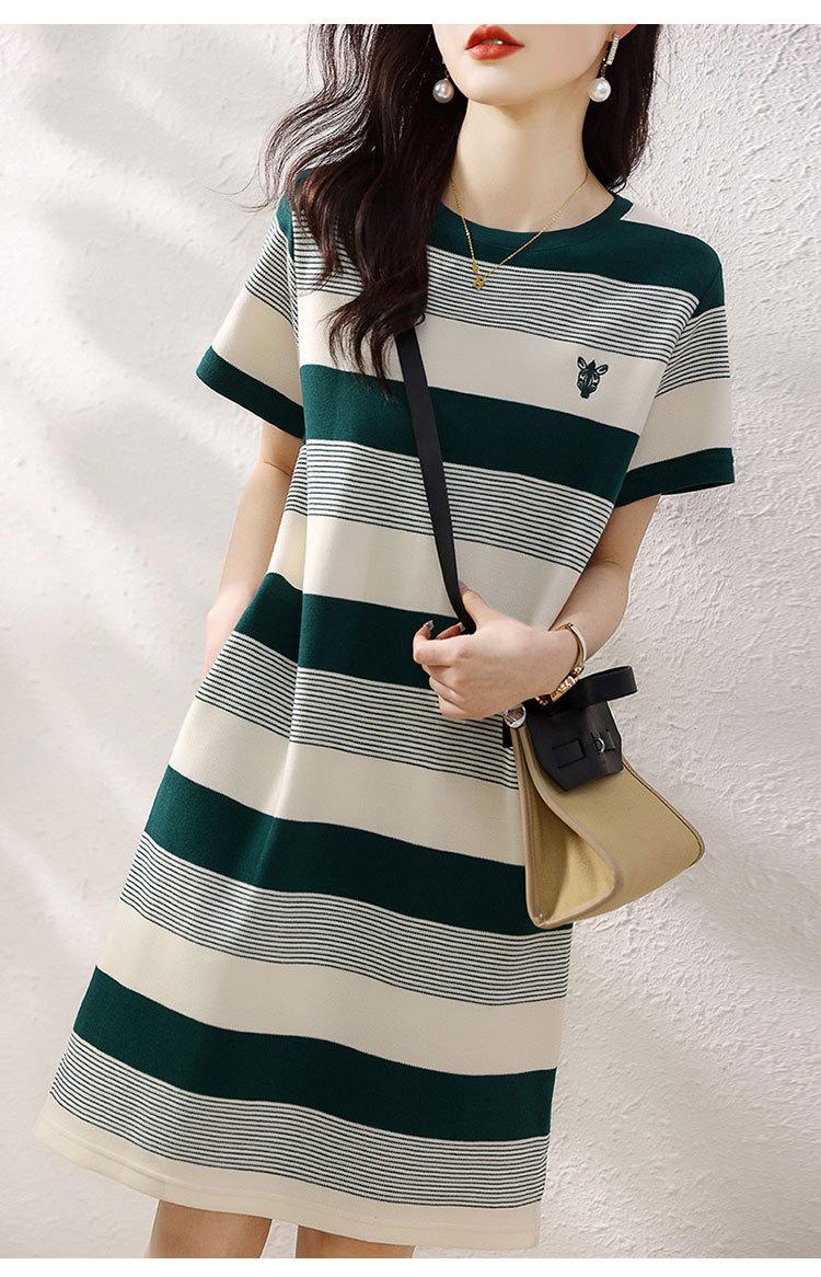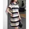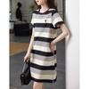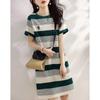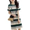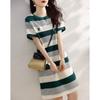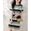 Vestido de rayas de colores de verano 2023, nuevo vestido coreano informal sencillo, ajustado y agradable para la piel para mujer