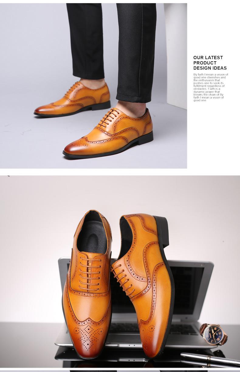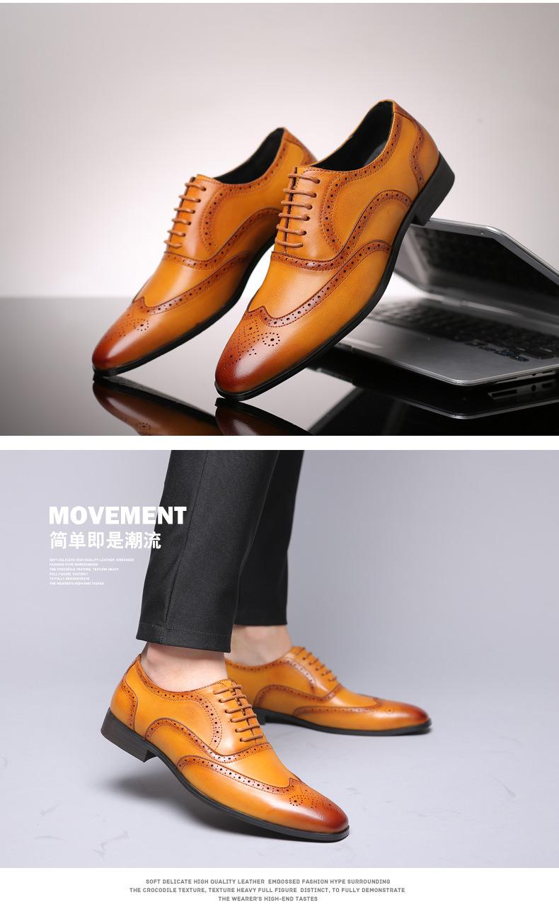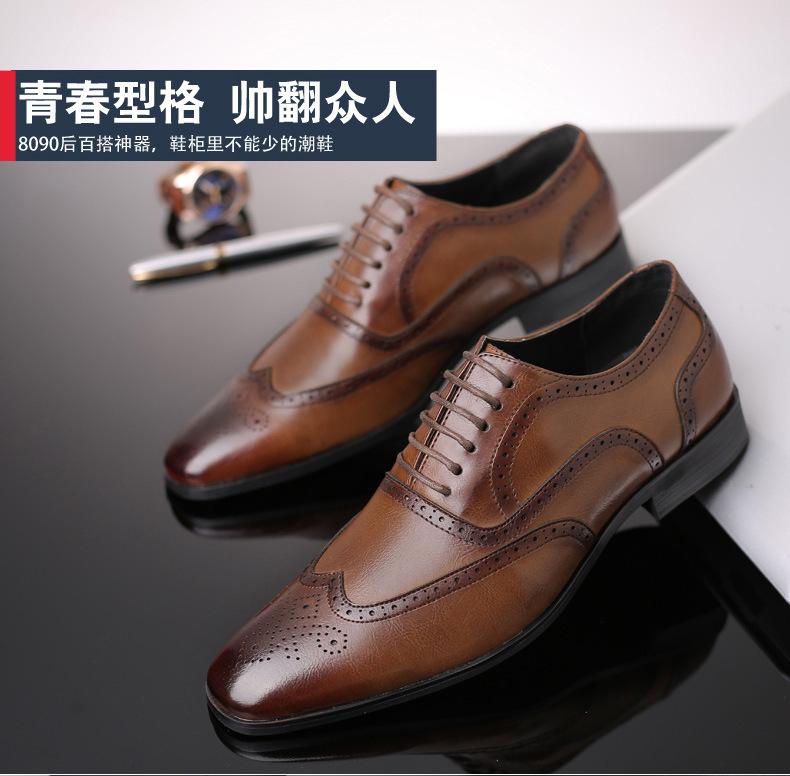 Zapatos de cuero formales de negocios retro para hombre de talla grande, zapatos casuales británicos Broo