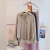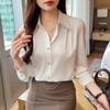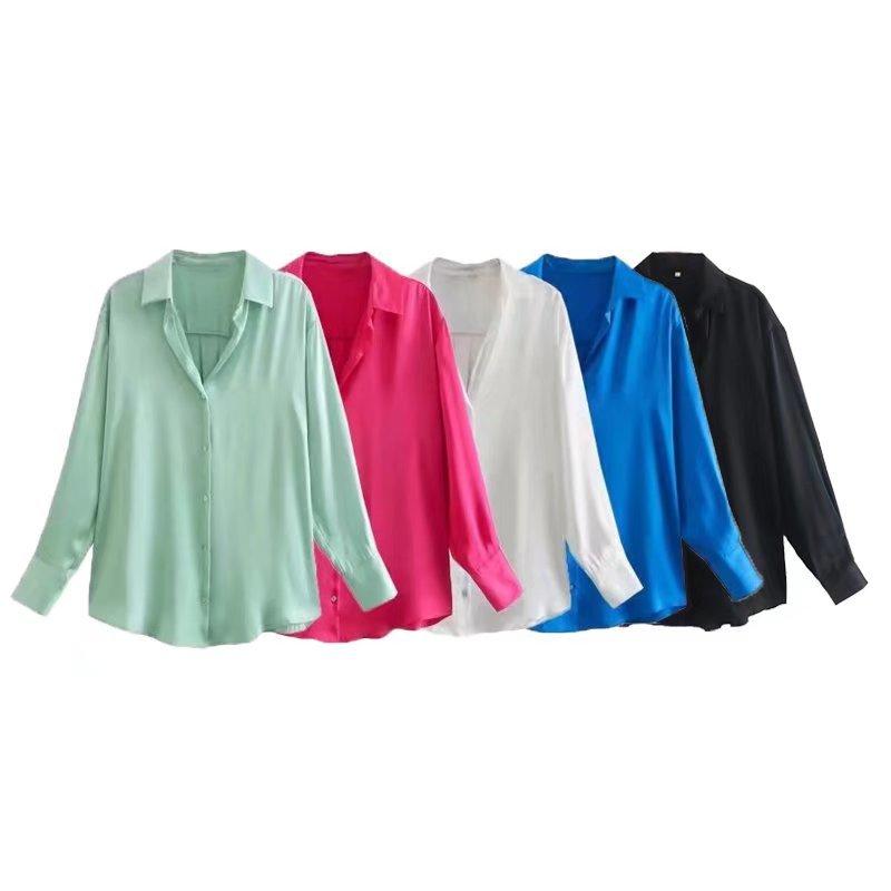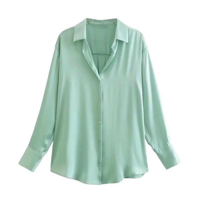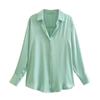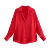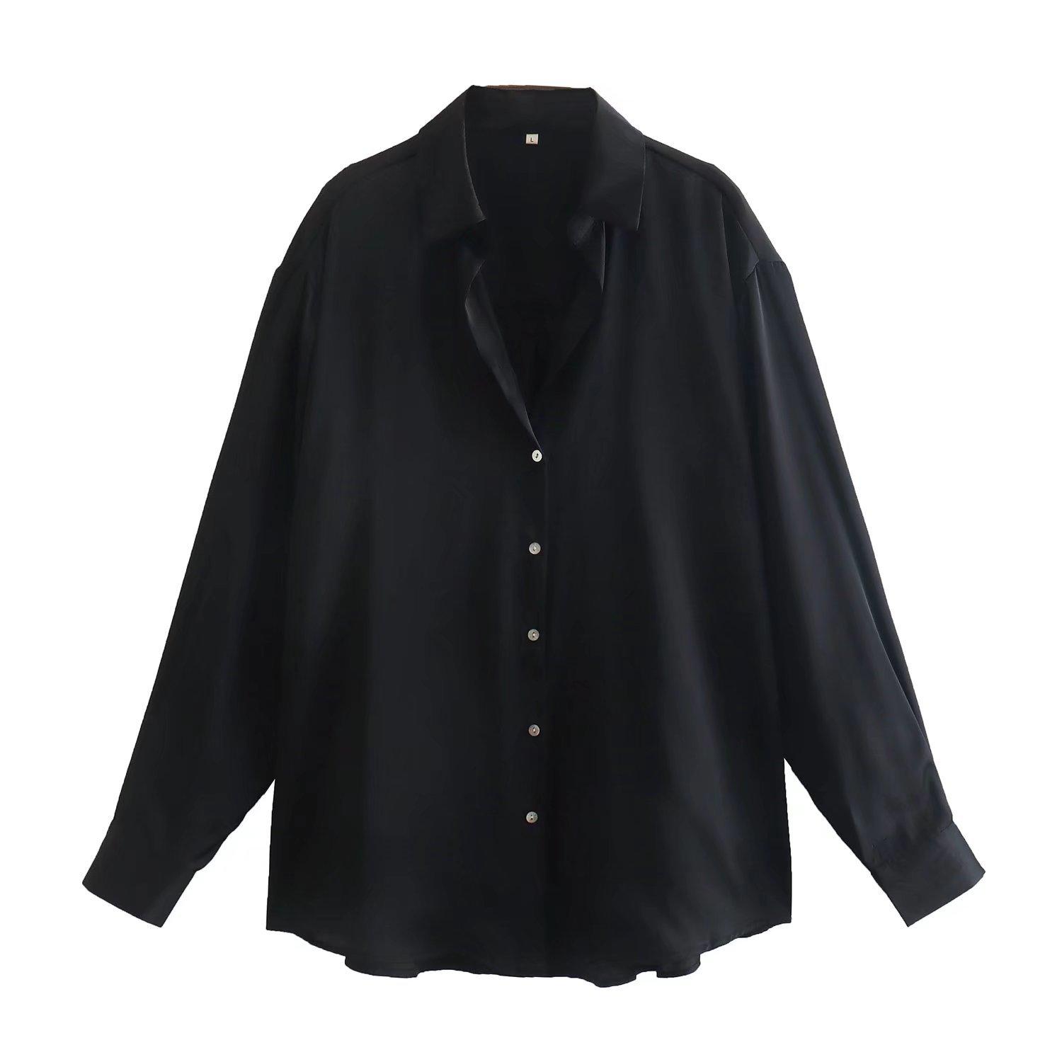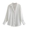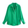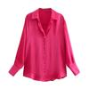 Cárdigan holgado de manga larga con solapa y textura de satén de seda clásica para mujer, abrigo que combina con todo, top de color liso para primavera y verano