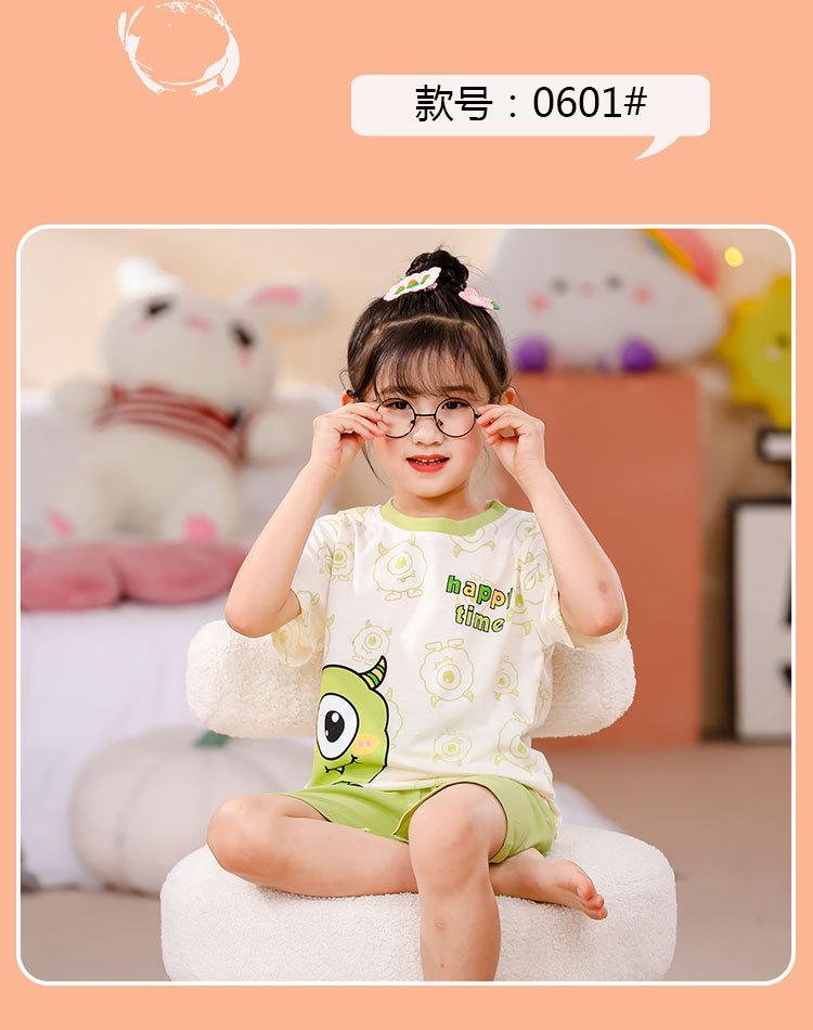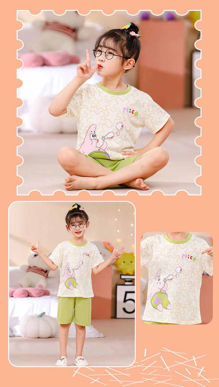 Pijamas de verano 2023 para niños, de manga corta y dibujos animados, para niños de talla mediana y grande, con cuello redondo y dibujos animados, ropa de casa para niños.