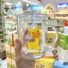 Vaso de Vidrio Grueso Graduado para Estudiantes, Taza con Popote Linda para Uso en Casa, Vaso de Desayuno Infantil, Doble Uso, Alto Valor Estético