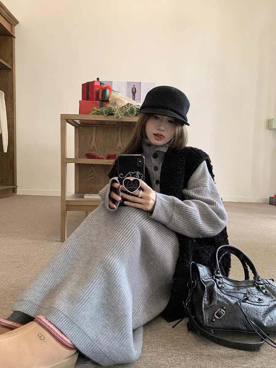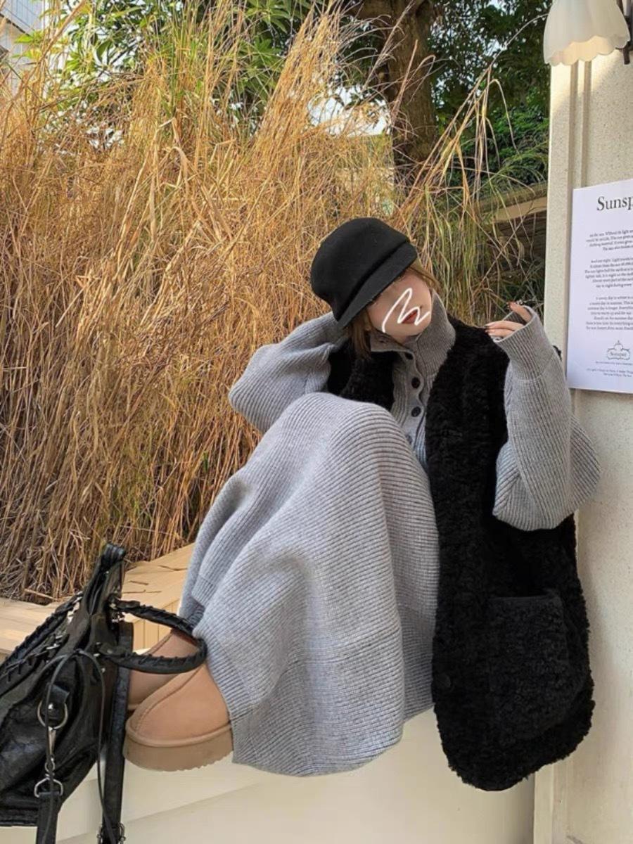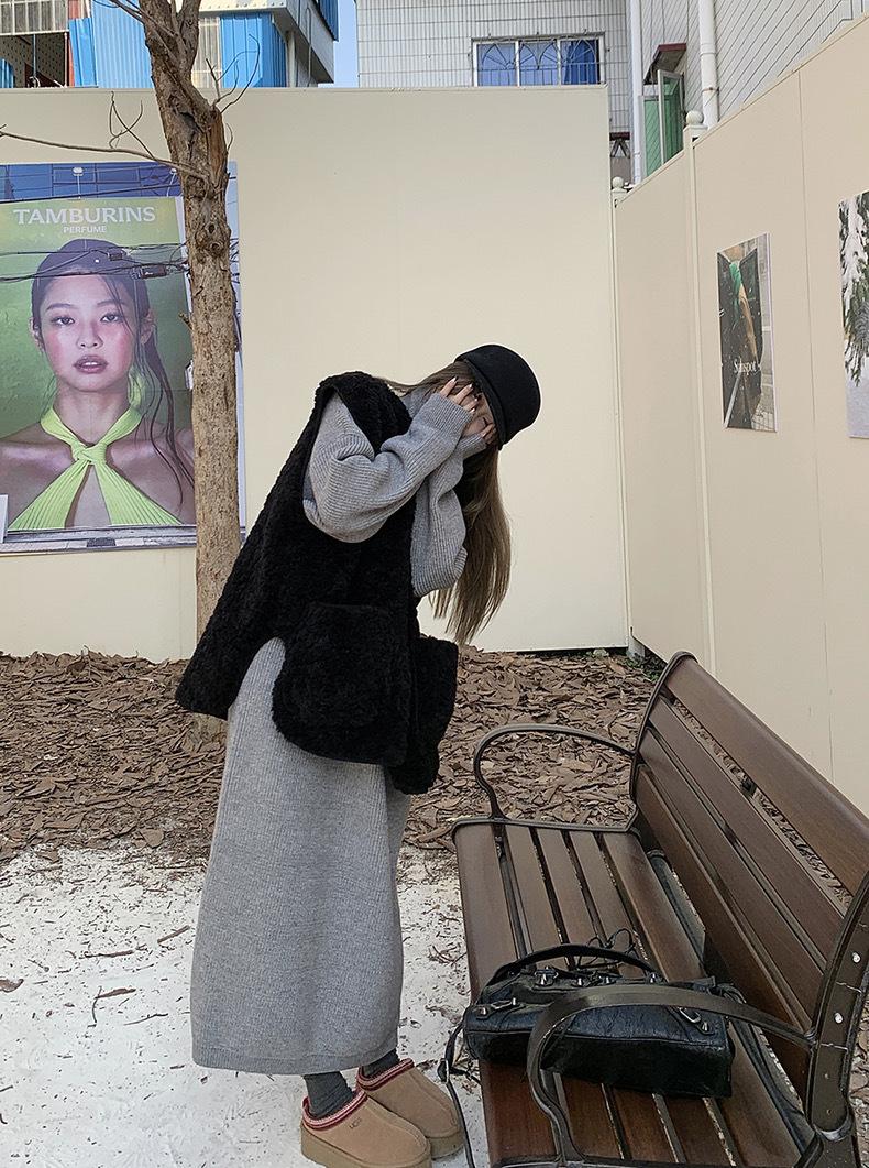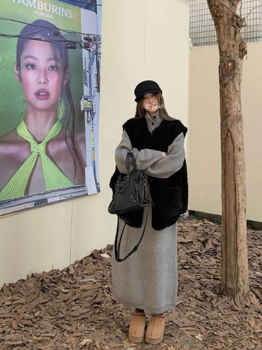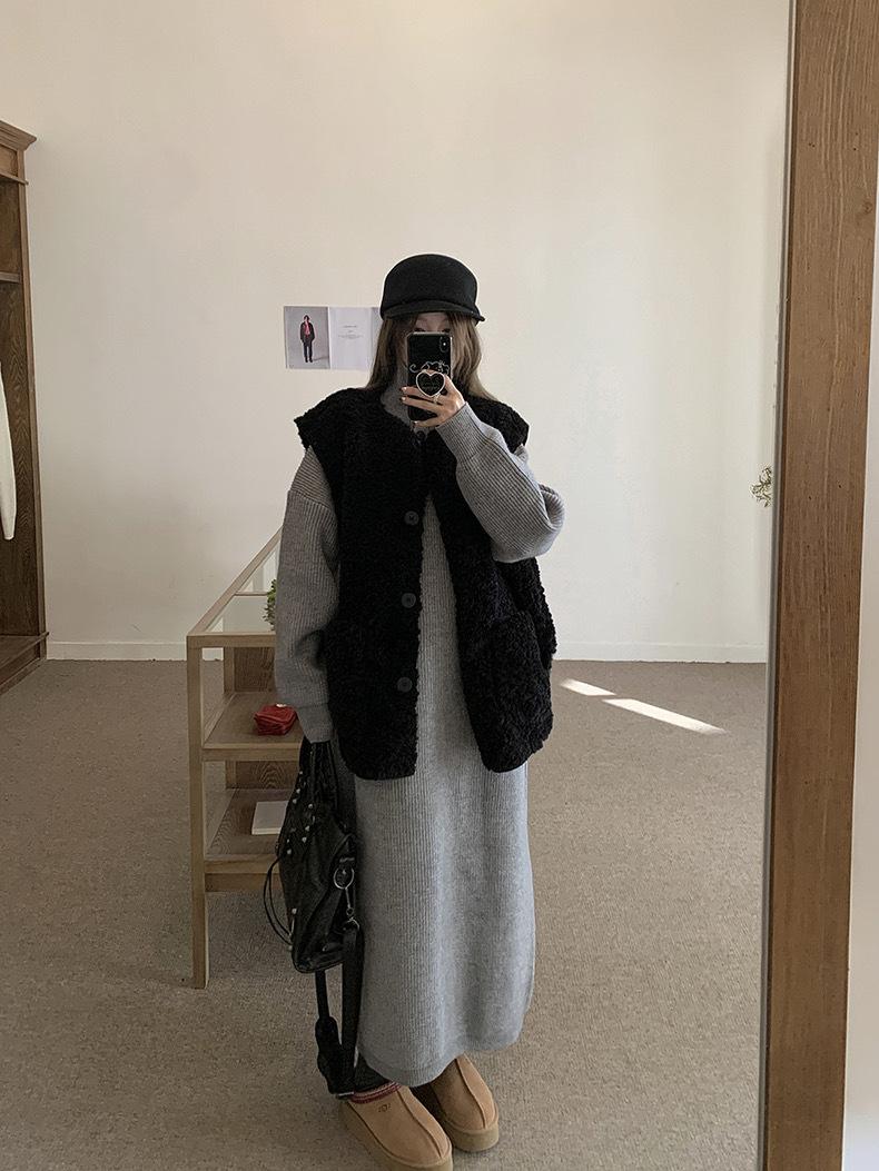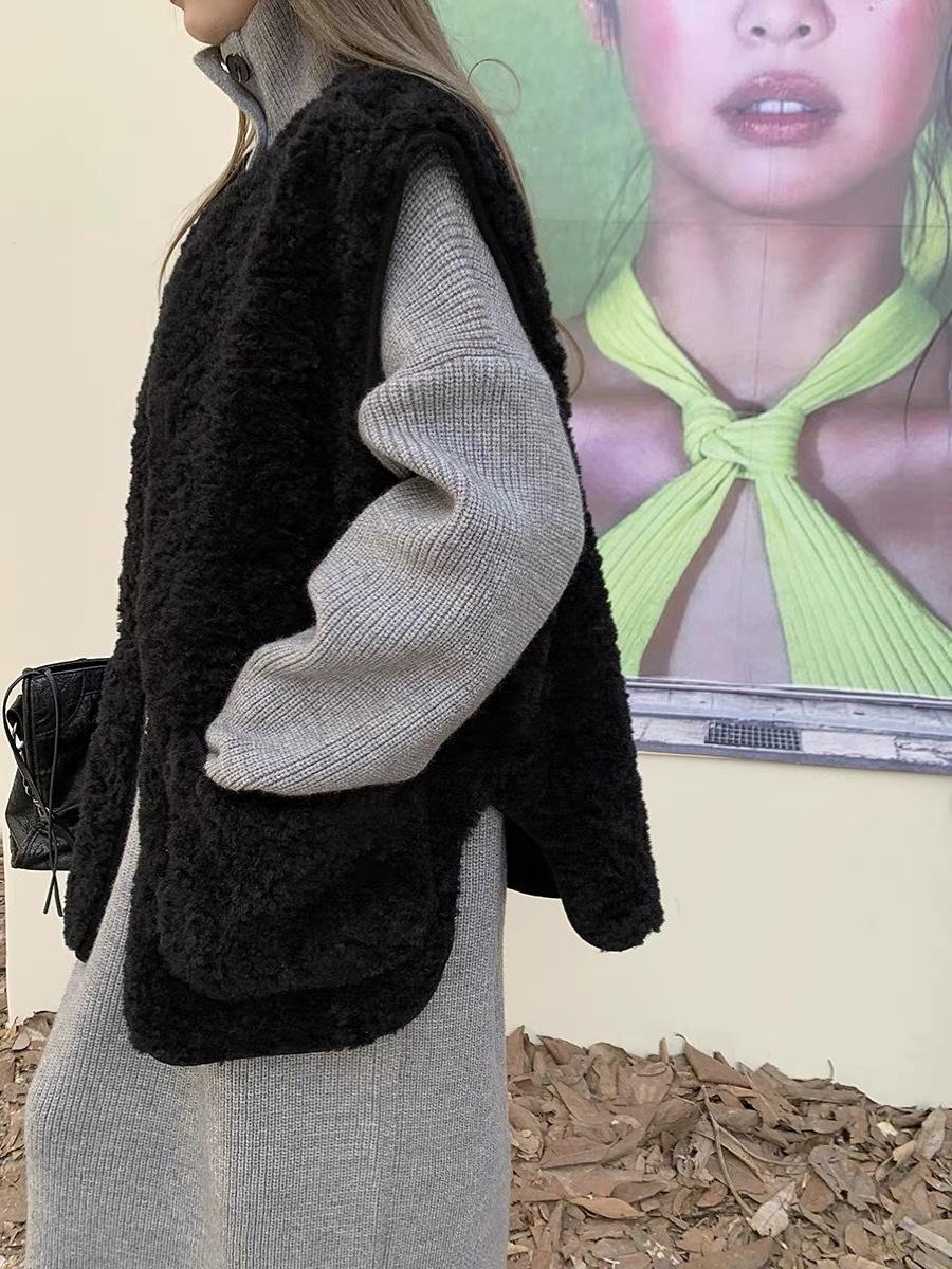Chaqueta Chaleco Cálido sin Mangas de Lana de Cordero Imitación para Mujer Primavera e Invierno 24 Nuevo Chaleco Exterior de Cintura Suelta de Largo Medio