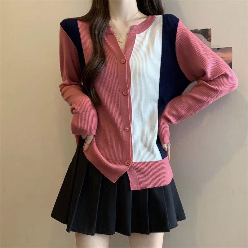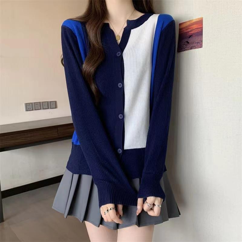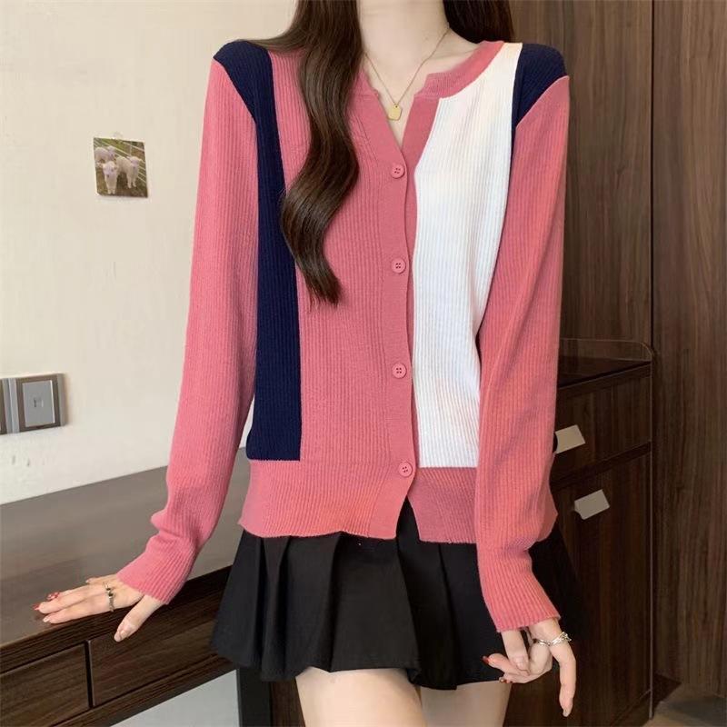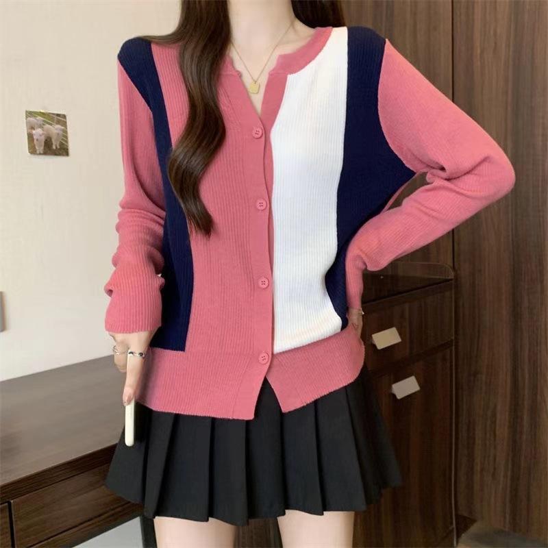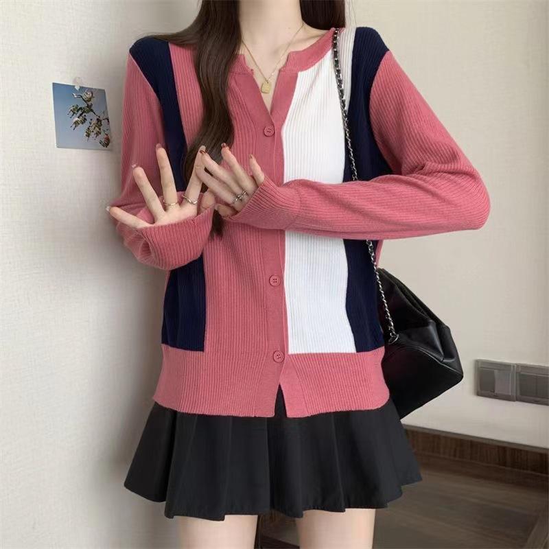 Cárdigan de punto con contraste de colores estilo Chanel para mujer, top de otoño, nuevo diseño, estilo occidental, suéter de moda, abrigo fino
