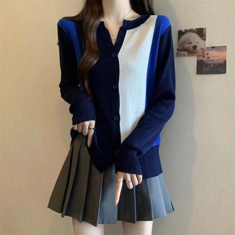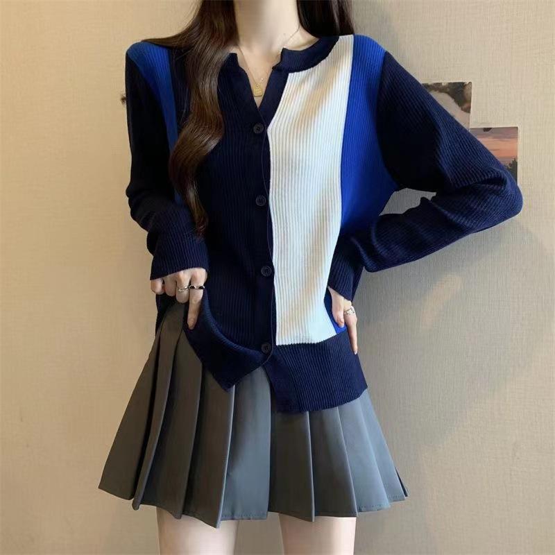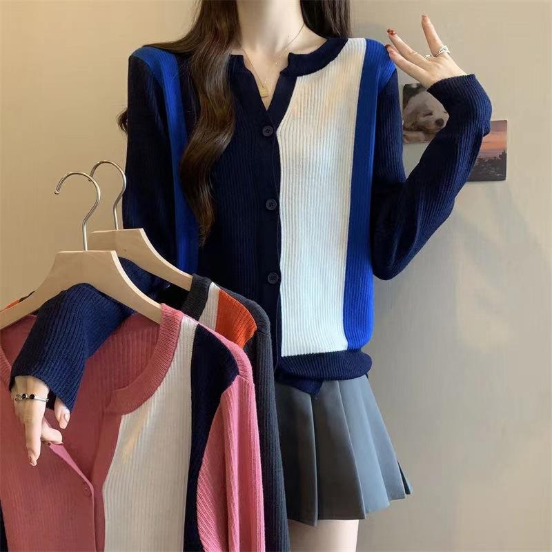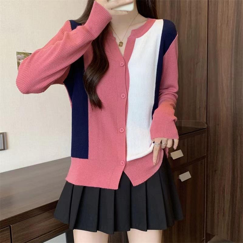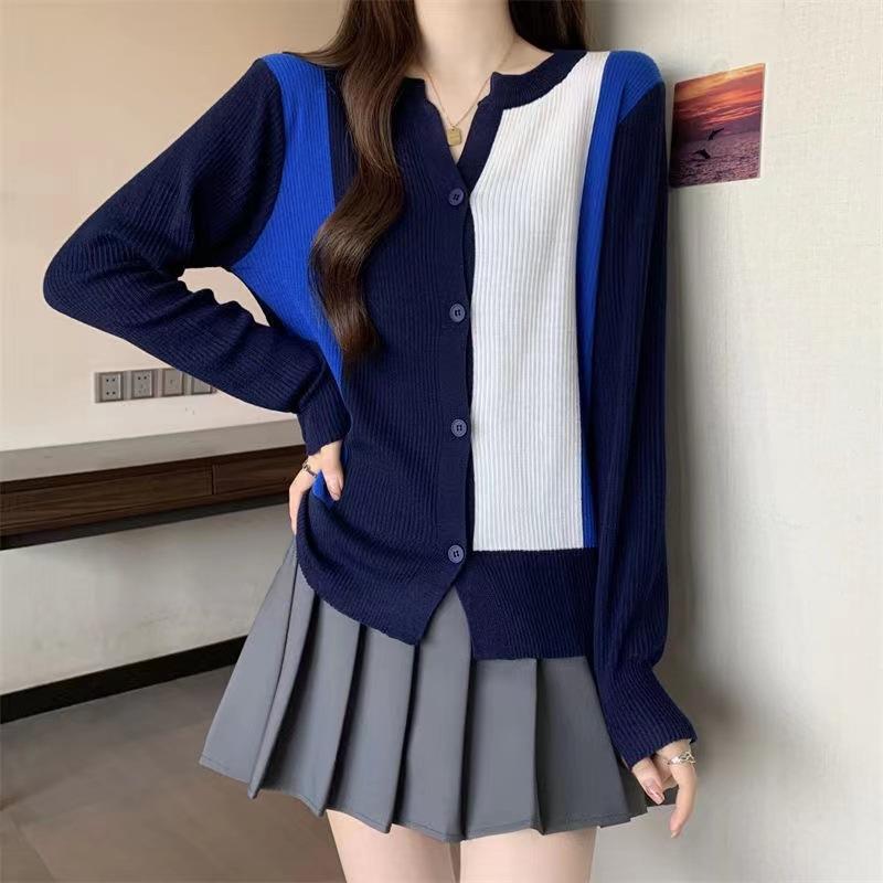 Cárdigan de punto con contraste de colores estilo Chanel para mujer, top de otoño, nuevo diseño, estilo occidental, suéter de moda, abrigo fino