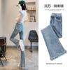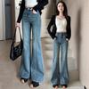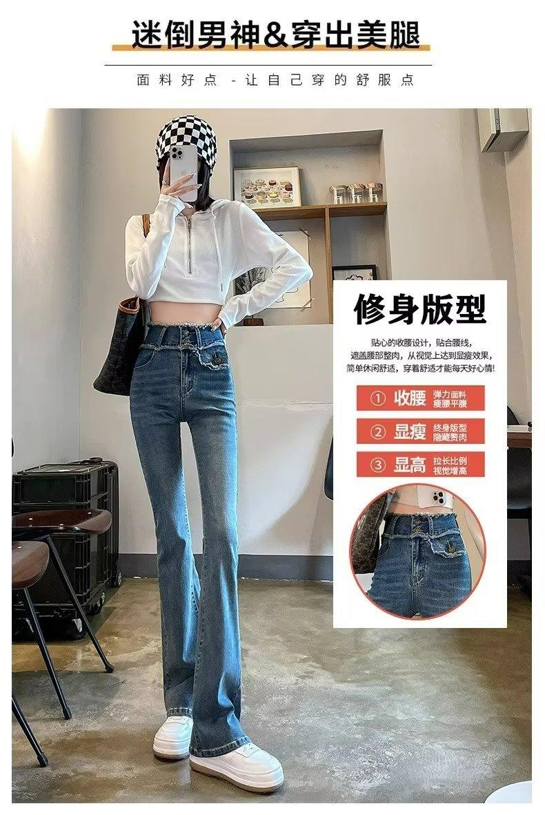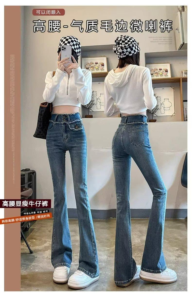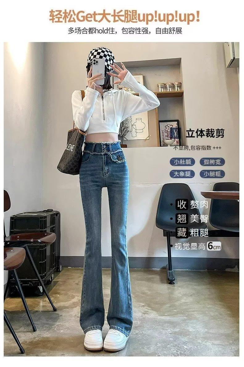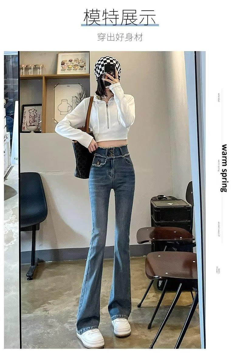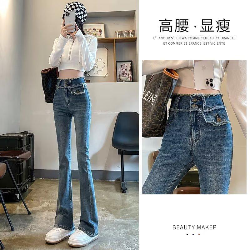 Jeans acampanados retro americanos para mujer otoño e invierno 2024 nuevos cintura alta corte ajustado herradura borde crudo pantalones acampanados