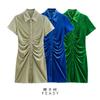Nueva ropa europea y americana de cuello redondo, cintura alta, manga larga, elegante, ajustada, estilo retro, de verano, ajustada, para mujer, europea y americana