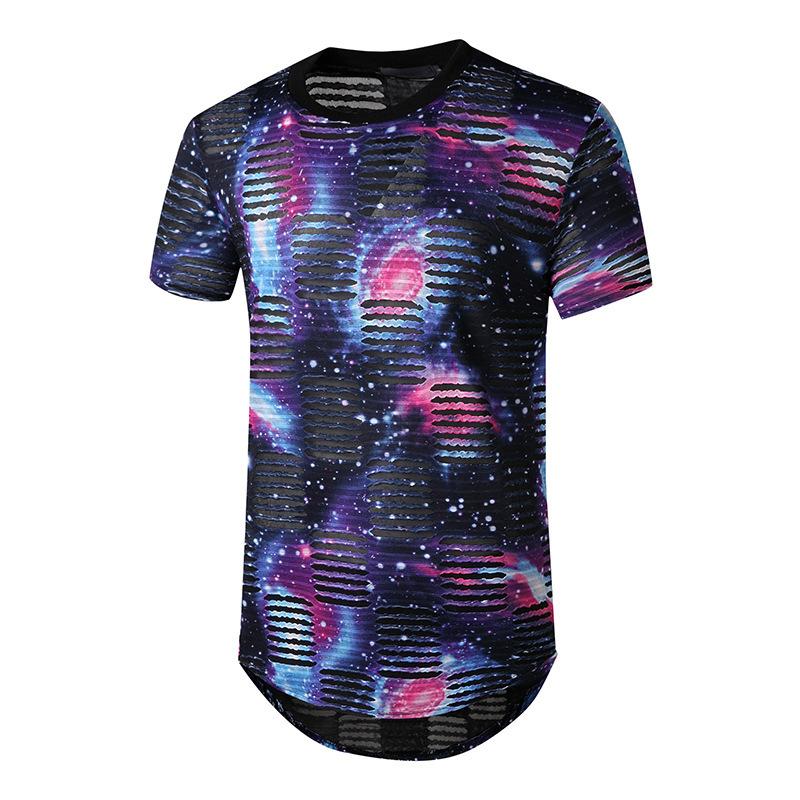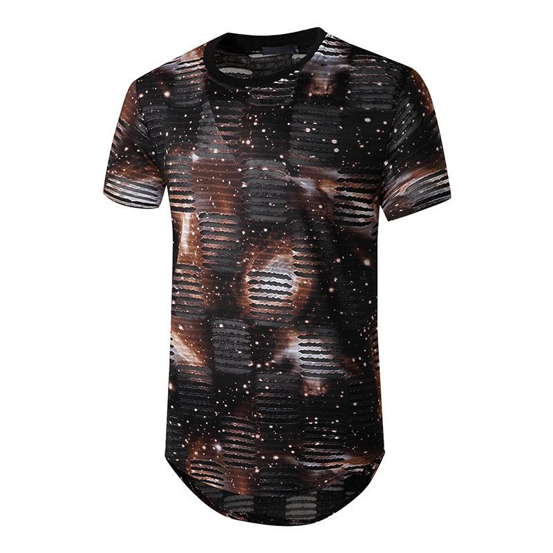 Comercio Exterior Verano Nuevo Hombre Talla Europea Agujero Sonriente de Boca Abierta Moderno Calle Hip-hop Camiseta de Manga Corta