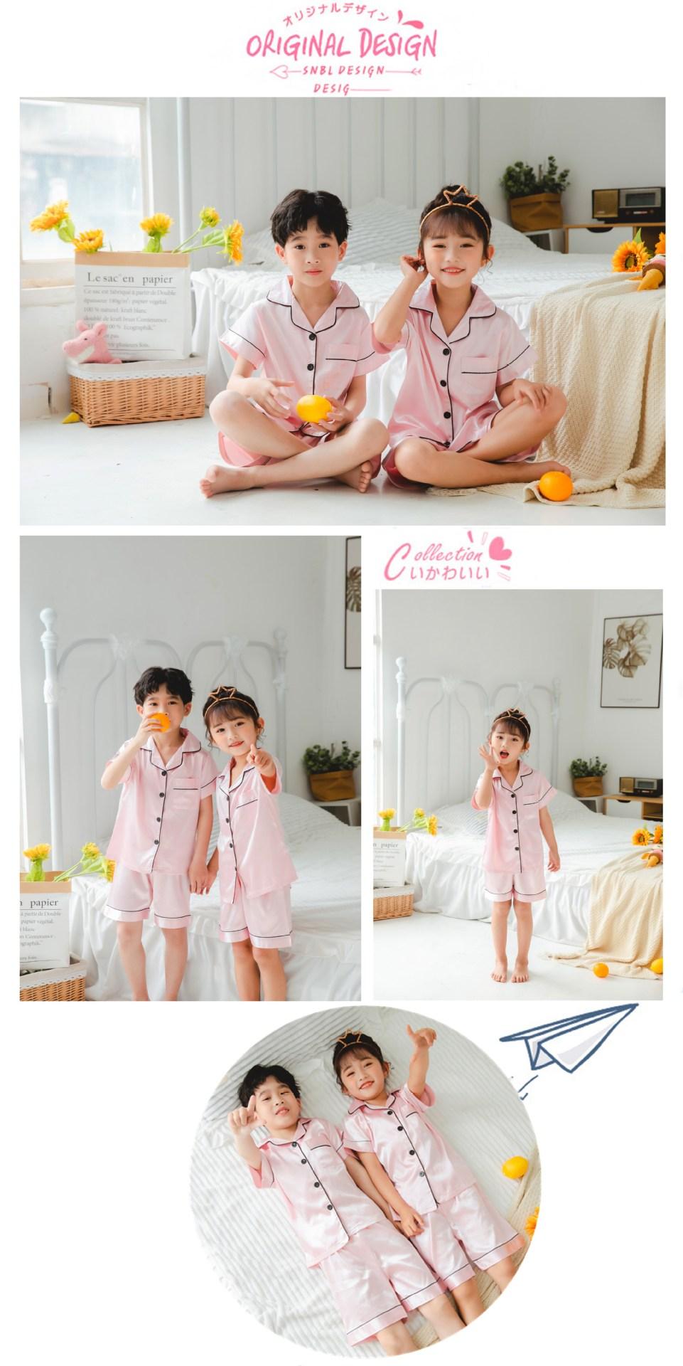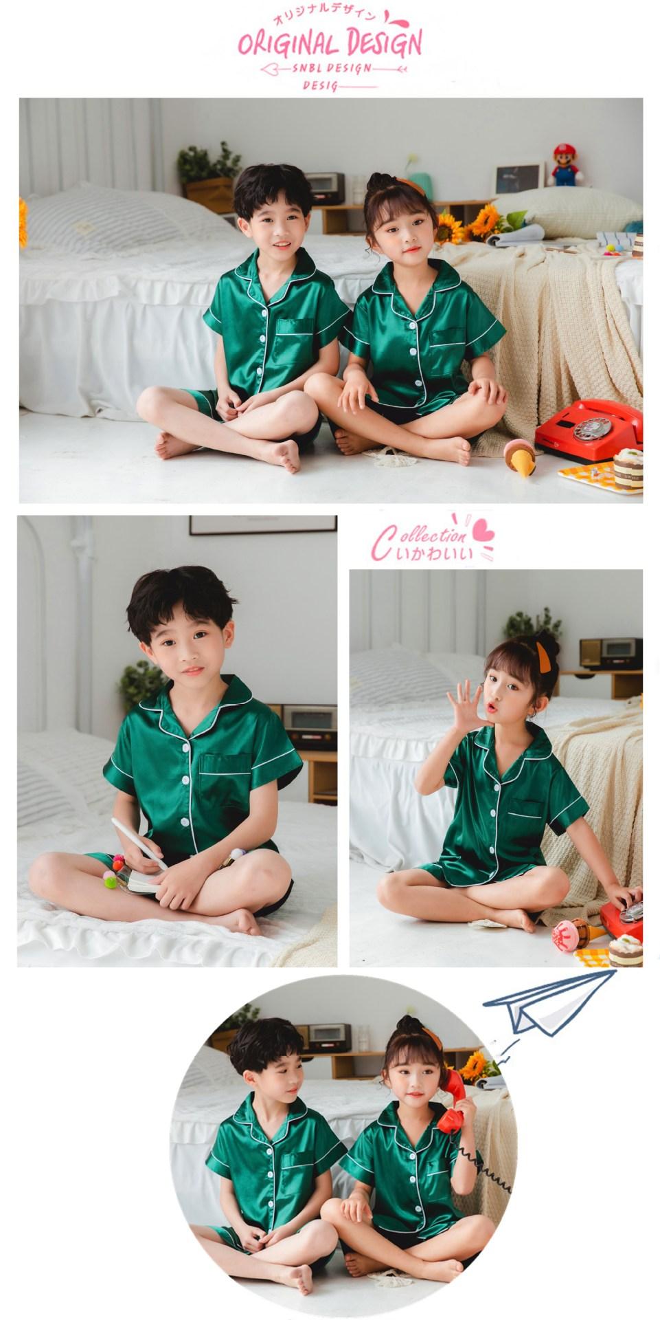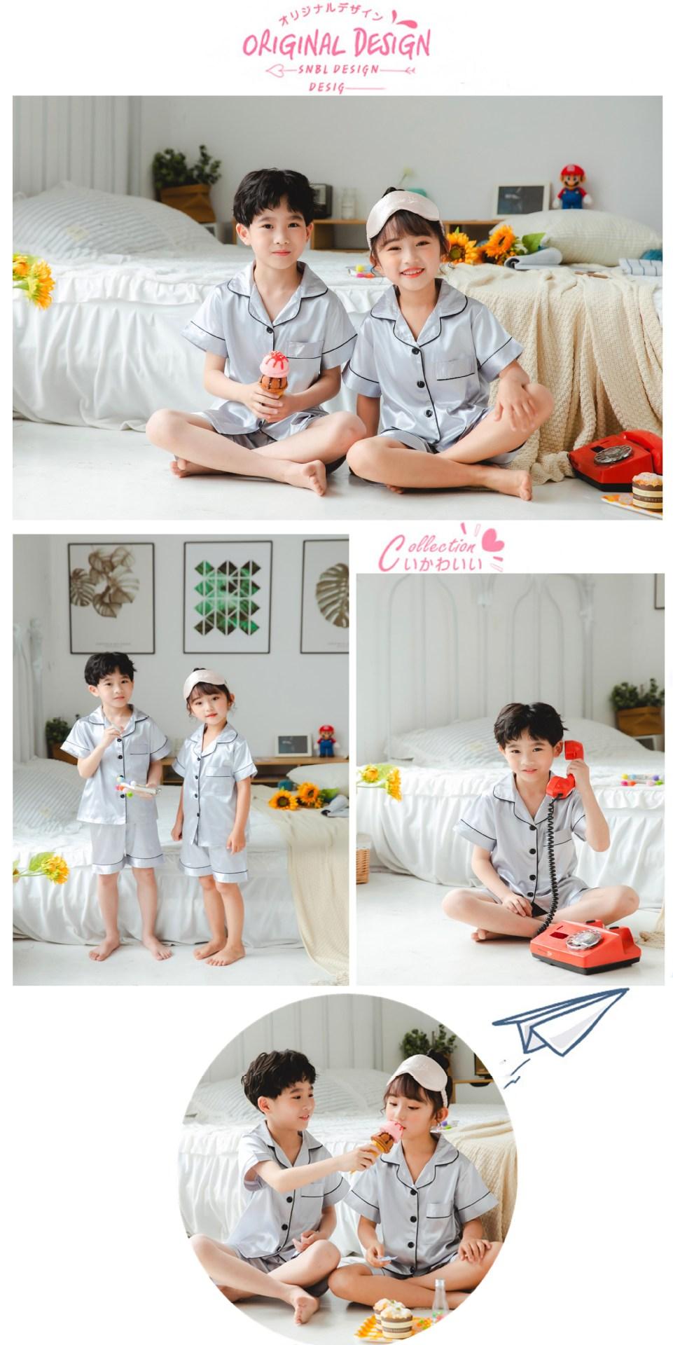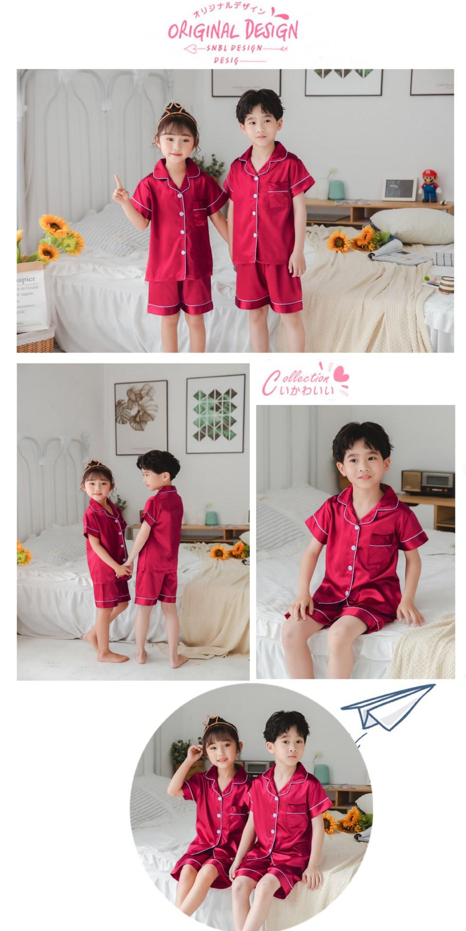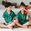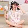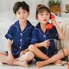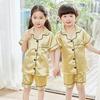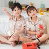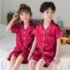 Pijamas de verano de seda de hielo de manga corta para niños y niñas, traje de estilo occidental para niñas pequeñas, ropa de casa linda para niños grandes