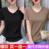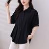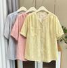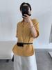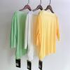 19068 Camiseta Estilo Plisado Manga Media Suelta Top Manga Corta Larga Verano Caramelo Sencillo Ropa de Mujer Celebridad de Internet