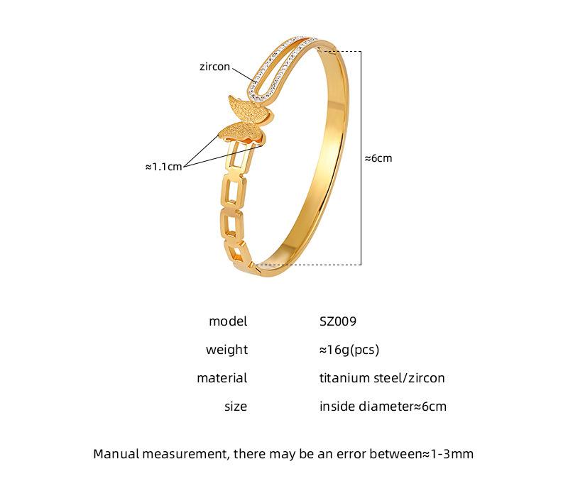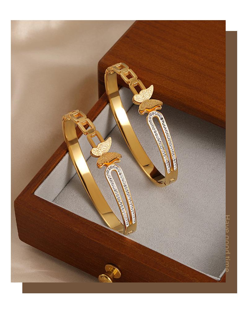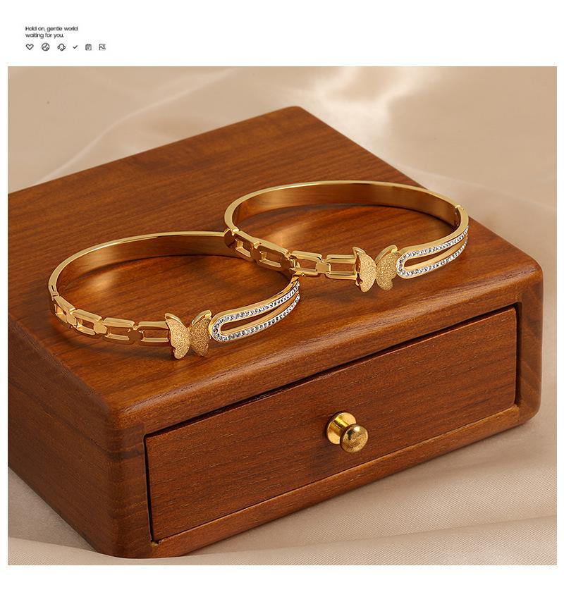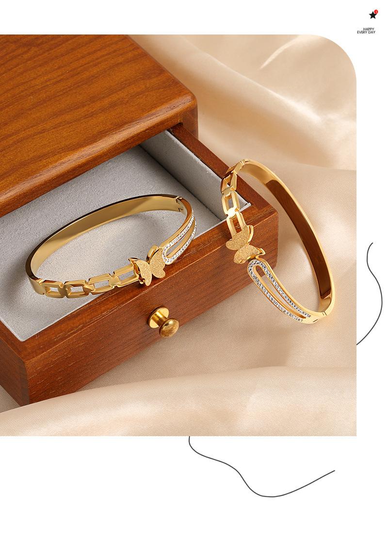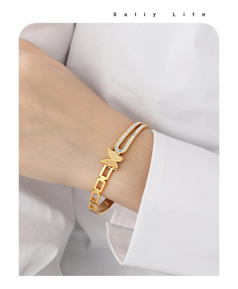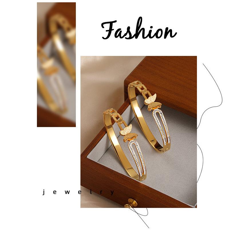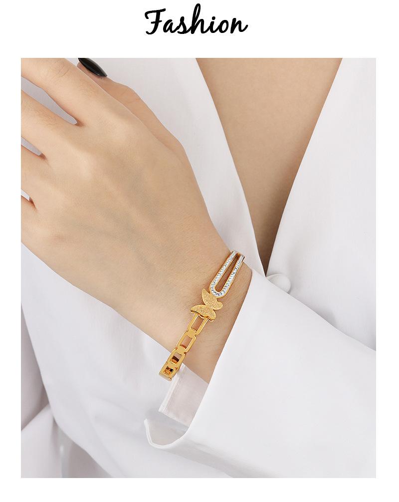 Pulsera de Acero de Titanio Estilo Coreano Lujo Accesible Nicho Ins Cadena Geométrica Mariposa Diamante Moda Elegante Versátil para Mujer