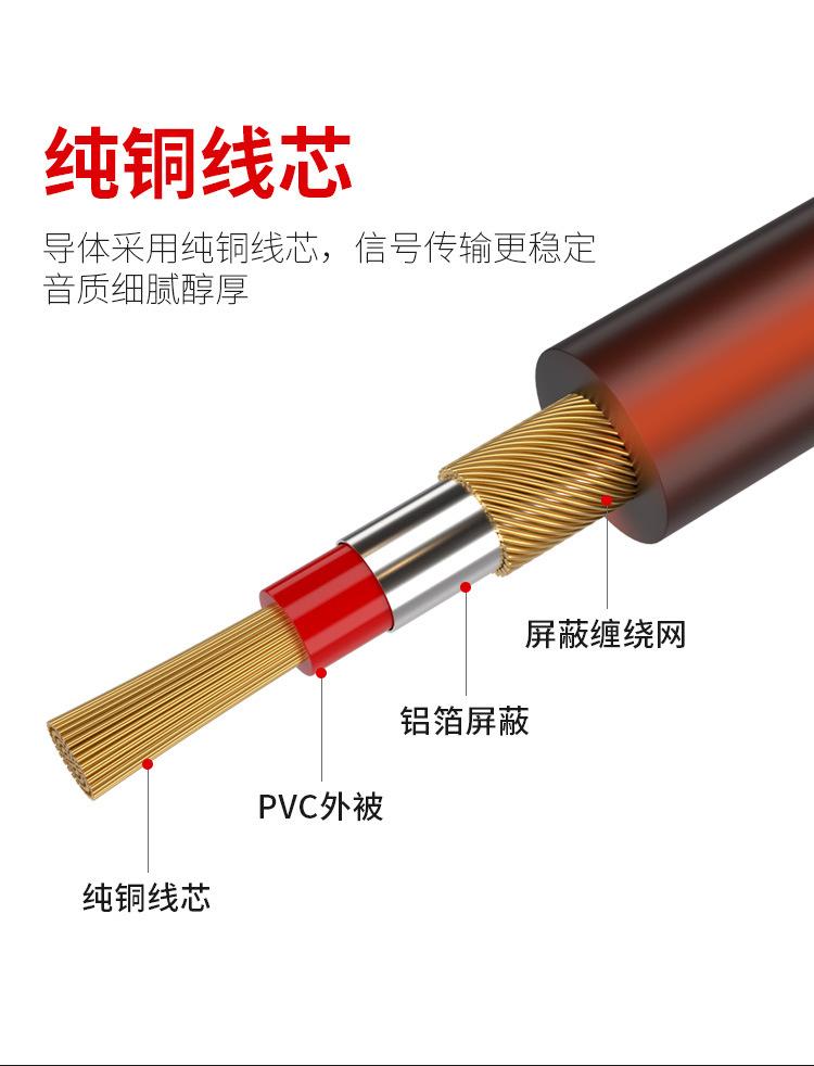 Especificaciones del producto: diámetro del cable OD6,0 mm.El blindaje es(Envoltura de malla 96 + 28 de cobre libre de oxígeno en el interior)Revestimiento de alambre de PVC blandoNúcleo de cobre libre de oxígeno de alta pureza.