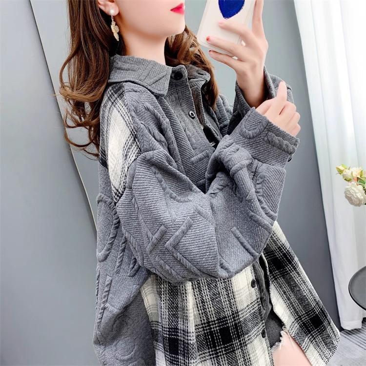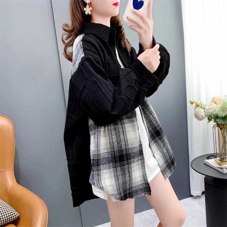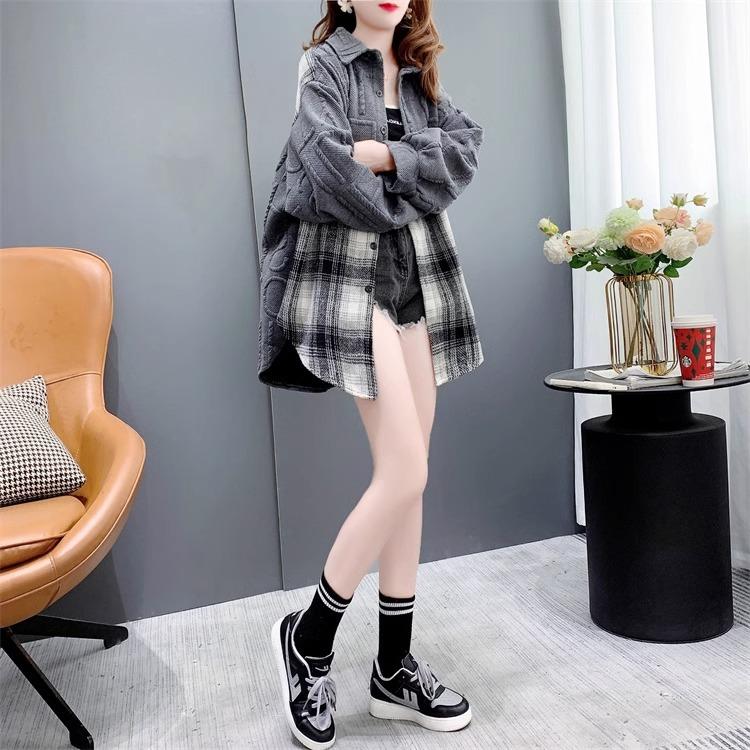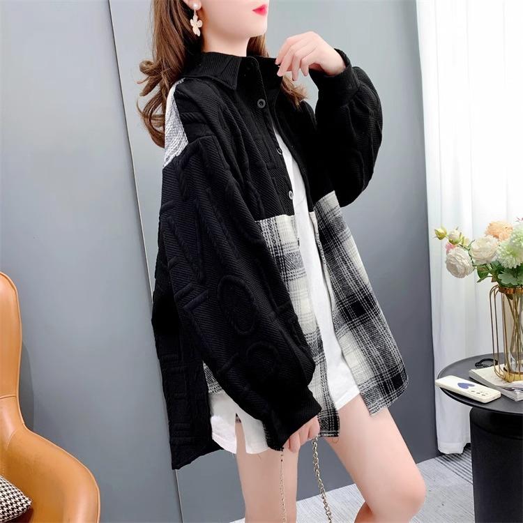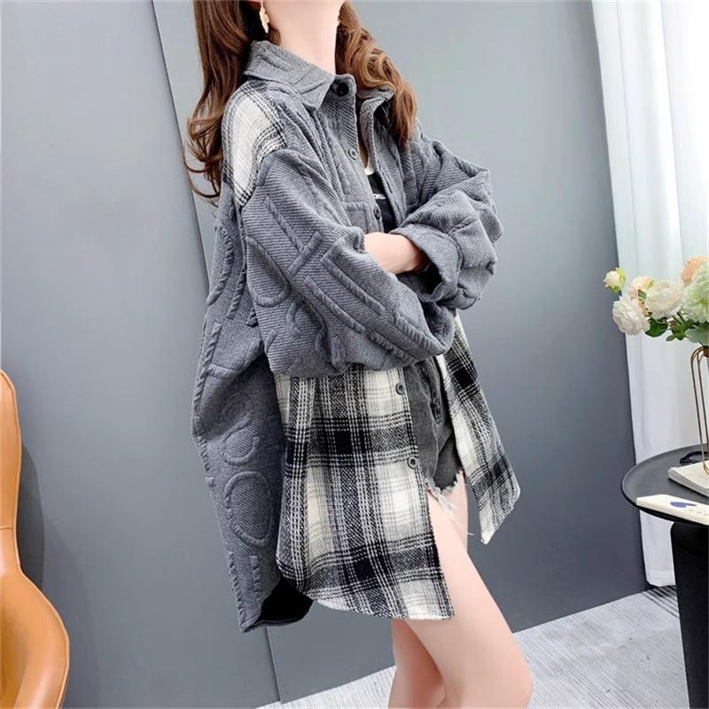 Chaqueta Camisera Empalmada para Mujer Primavera y Otoño 2025 Nuevo Estilo Coreano Holgada Largo Medio Estilo Retro Casual Top Versátil