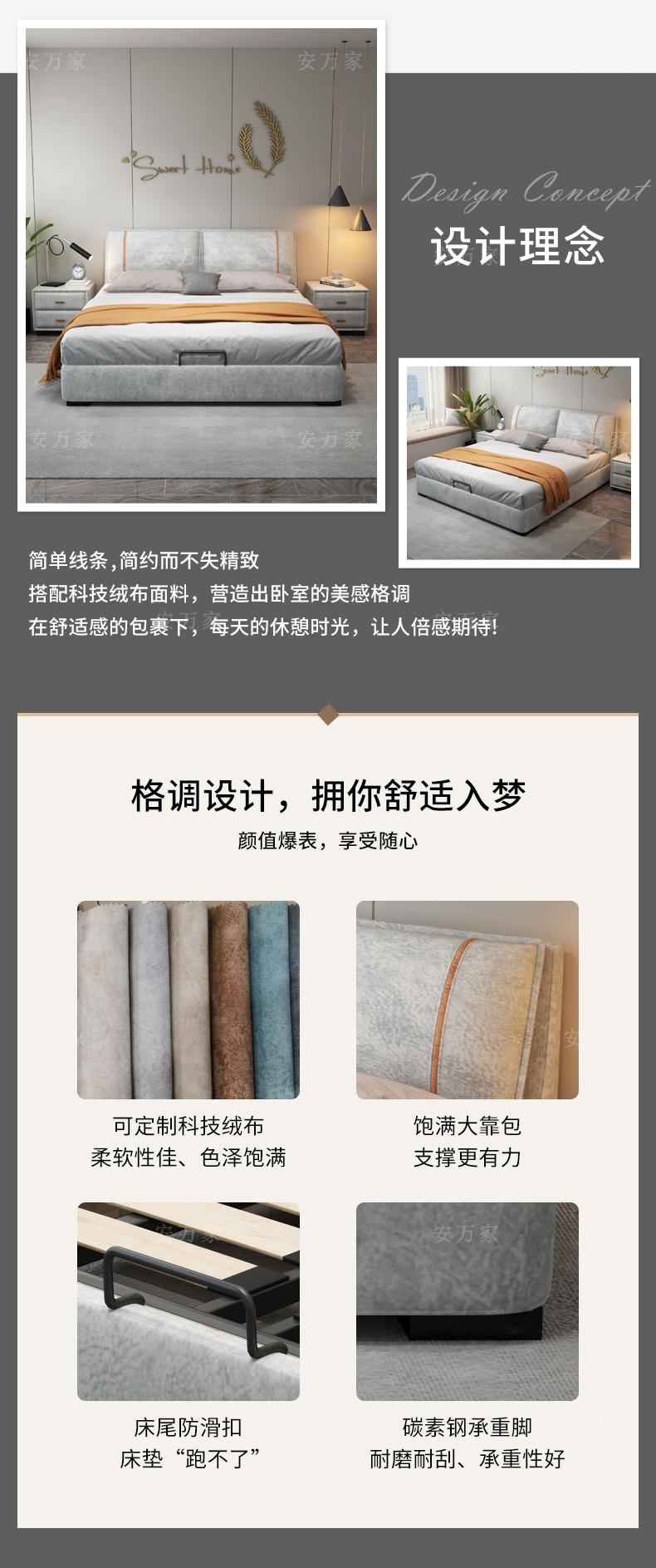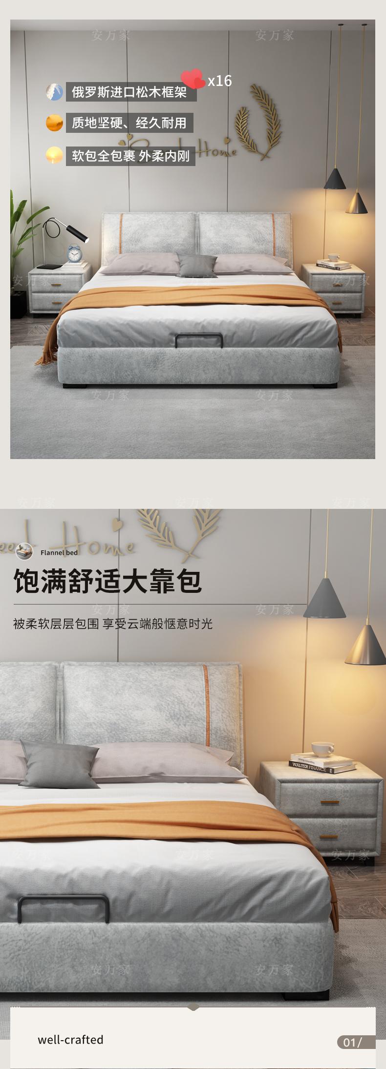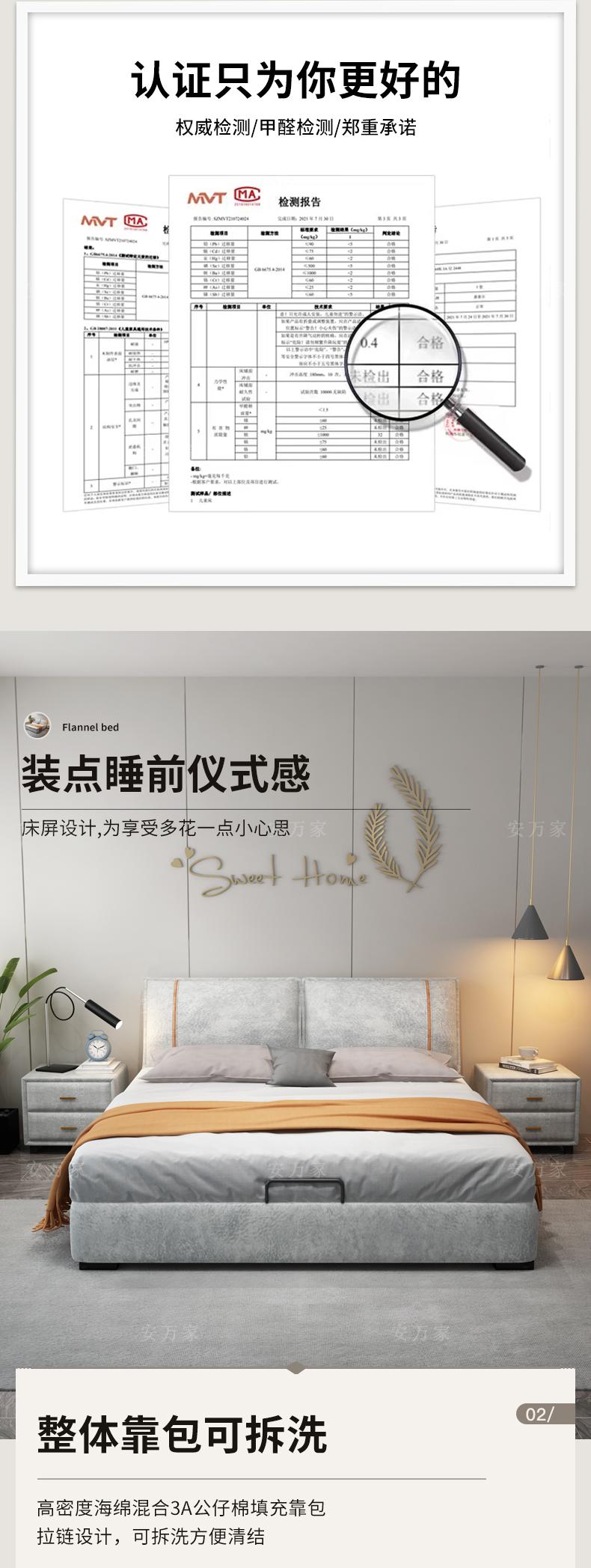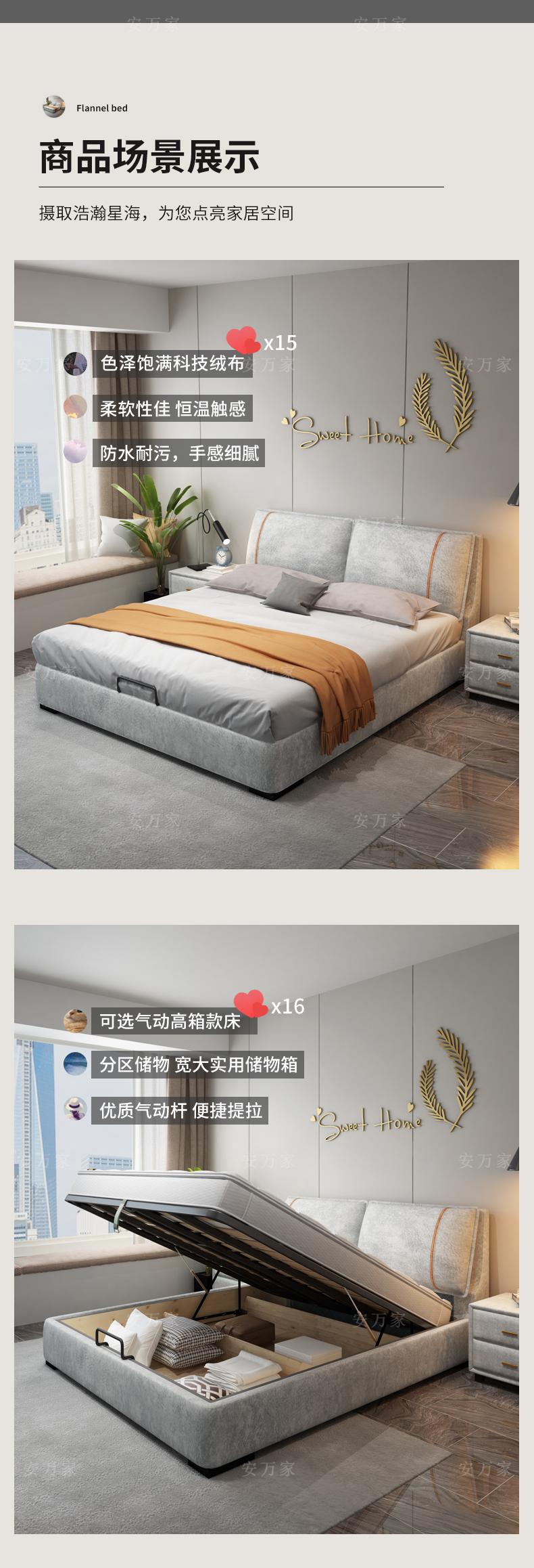 Steel Wood combined with technology flannel bed, Bed +1 bedside table, Bed +2 bedside table, Bed + 3E environm...