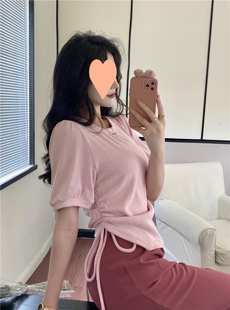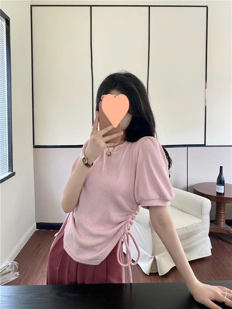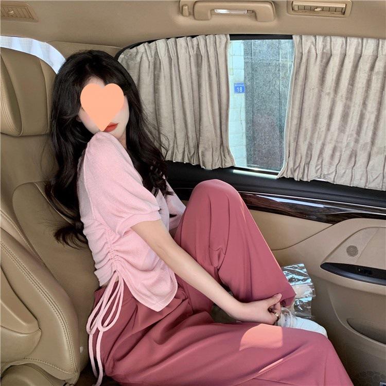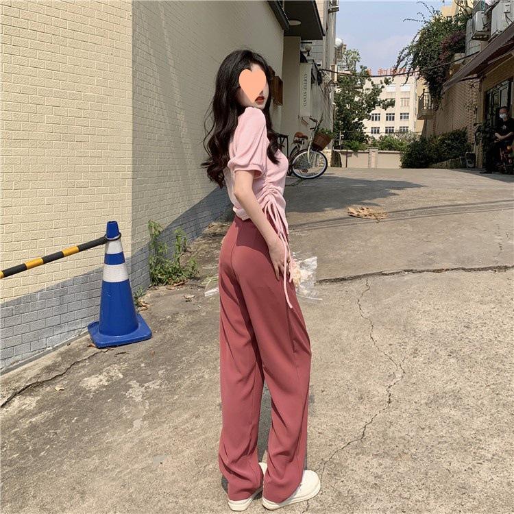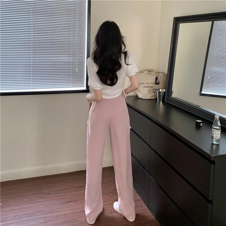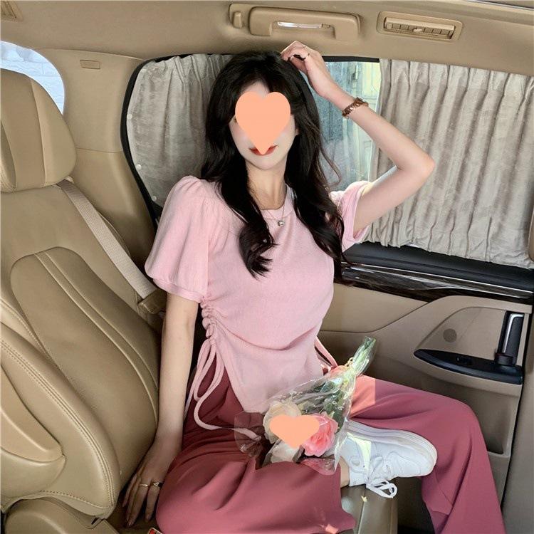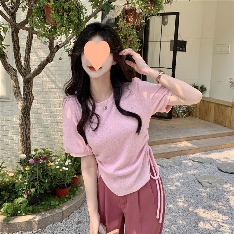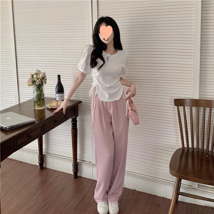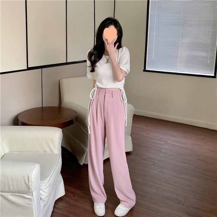 Playera de Manga Corta Abullonada con Diseño de Cordón Talla Grande para Mujer Top para Hombros + Pantalones de Traje Frambuesa