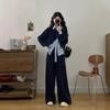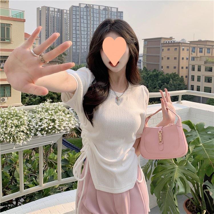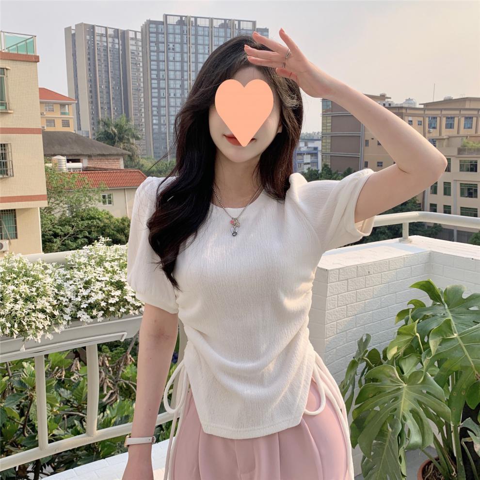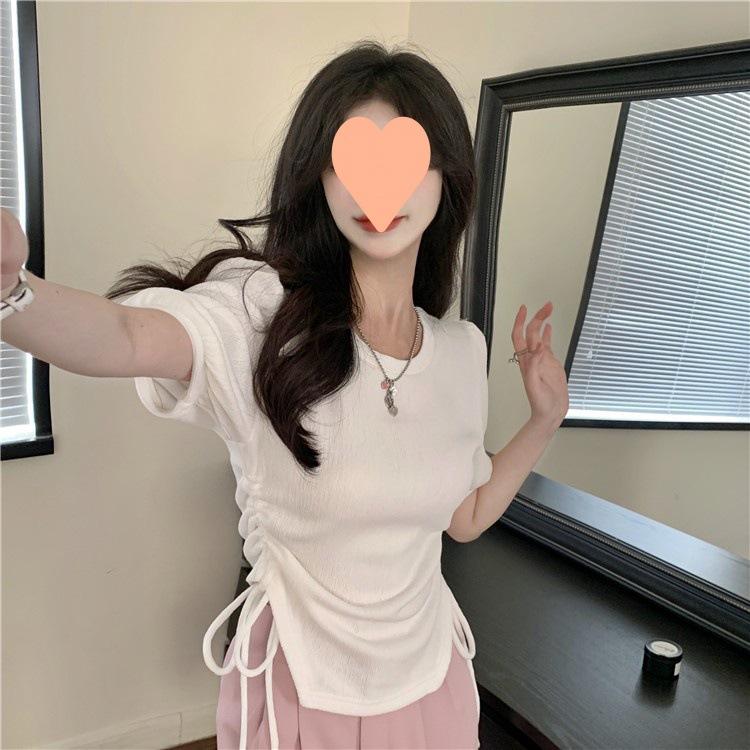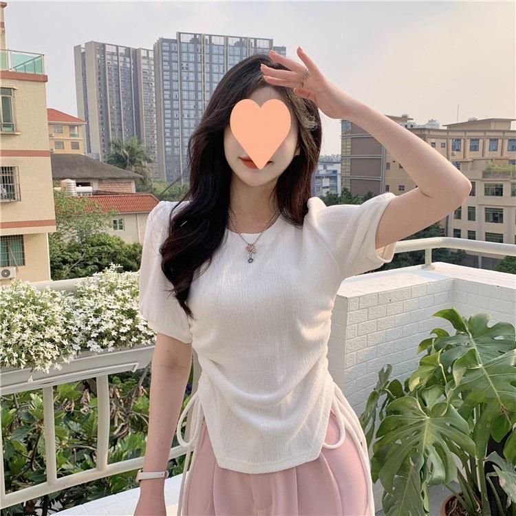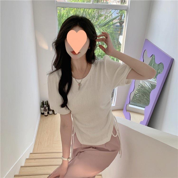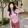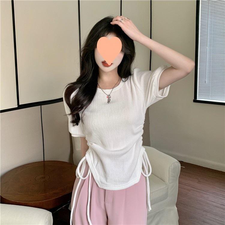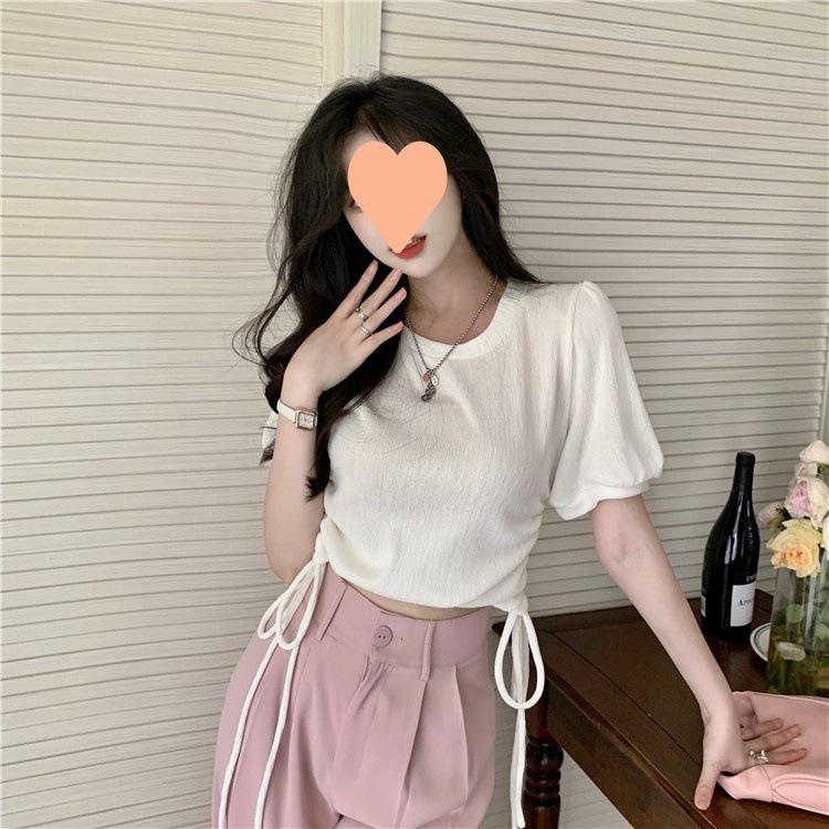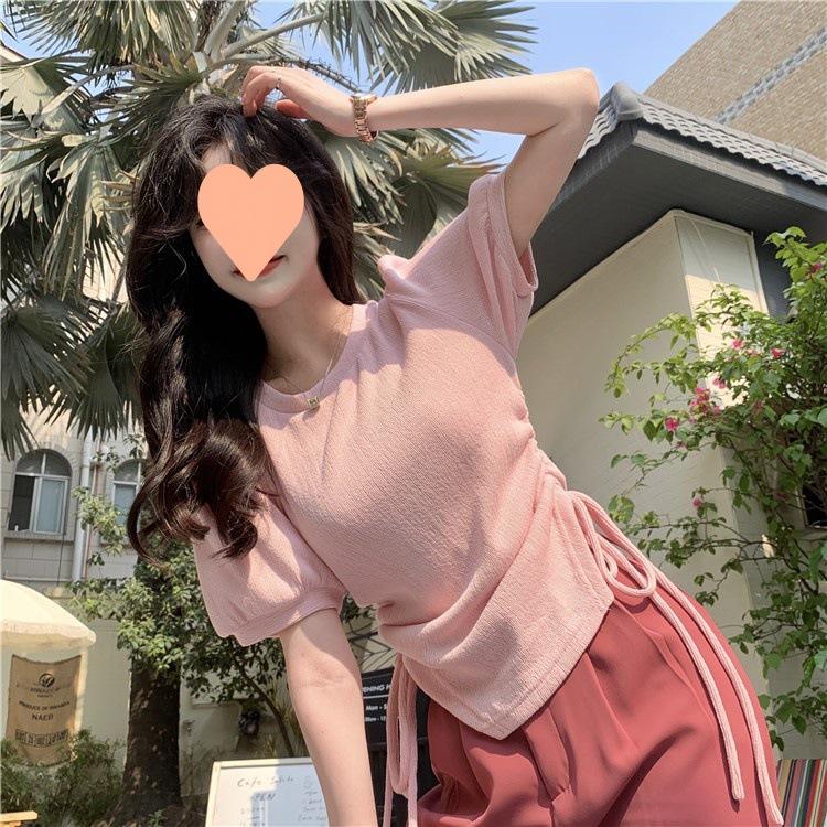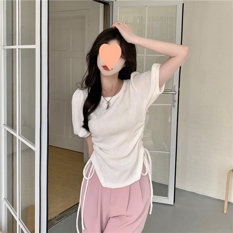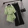 Playera de Manga Corta Abullonada con Diseño de Cordón Talla Grande para Mujer Top para Hombros + Pantalones de Traje Frambuesa