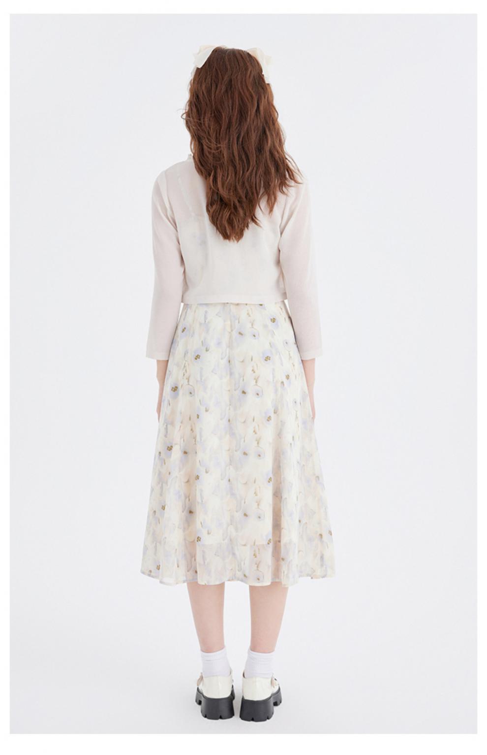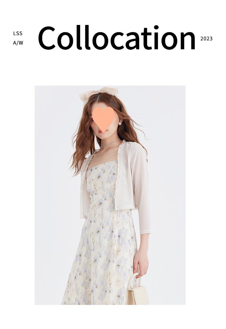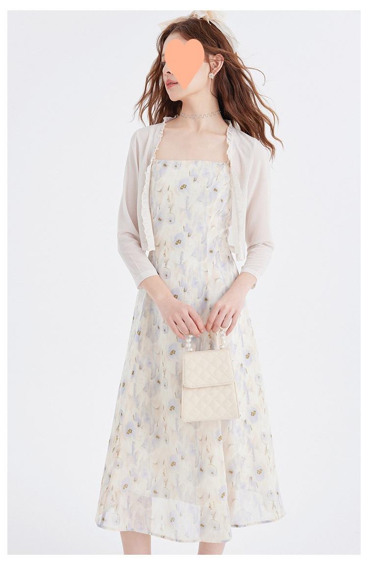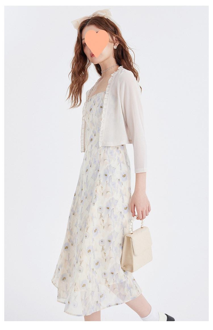 Conjunto de dos piezas de cárdigan y falda lencero para mujer, vestido floral sencillo francés de verano, vestido largo suave, traje de moda que combina con todo.